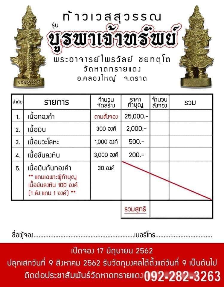 ท้าวเวสสุวรรณ รุ่นบูรพาเจ้าทรัพย์ พระอาจารย์ไพรวัลย์ วัดหาดทรายแดง
