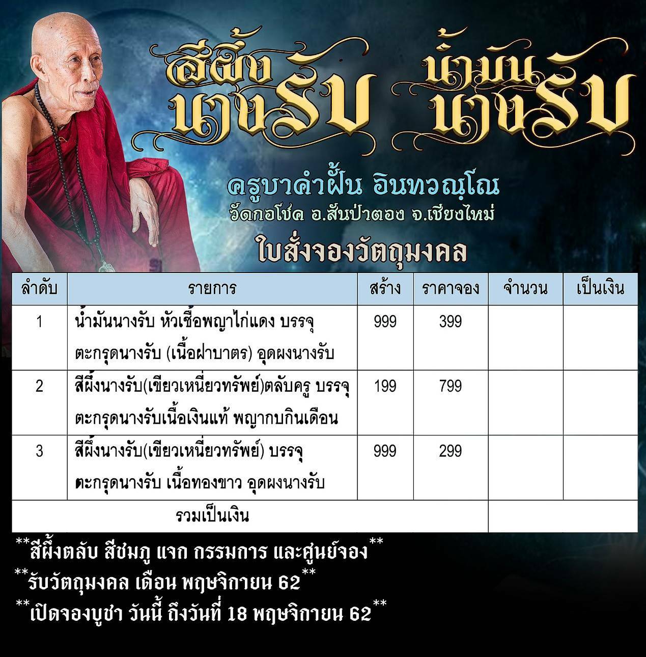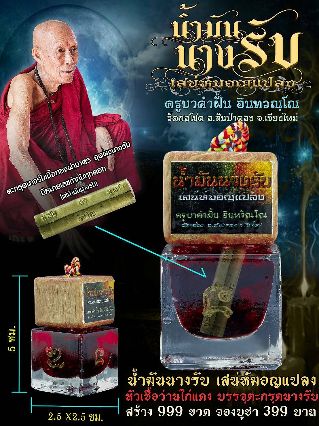 สีผึ้งนางรับ และ น้ำมันนางรับ ครูบาคำฝั้น วัดกอโชค