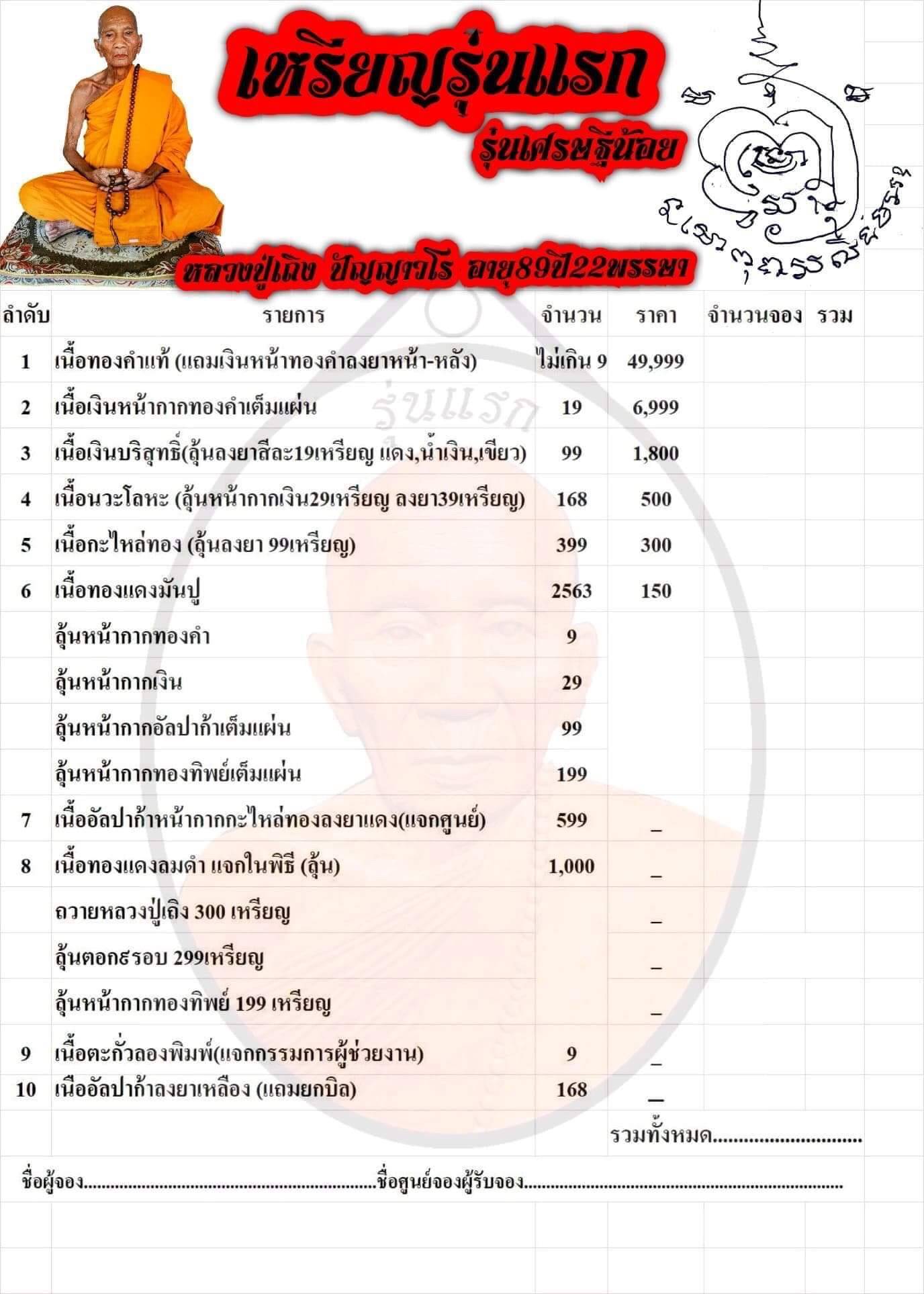 เหรียญรุ่นแรก หลวงปู่เถิง ปัญญาวโร อายุ89ปี22พรรษา วัดบ้านอาลัย จังหวัดศรีสะเกษ