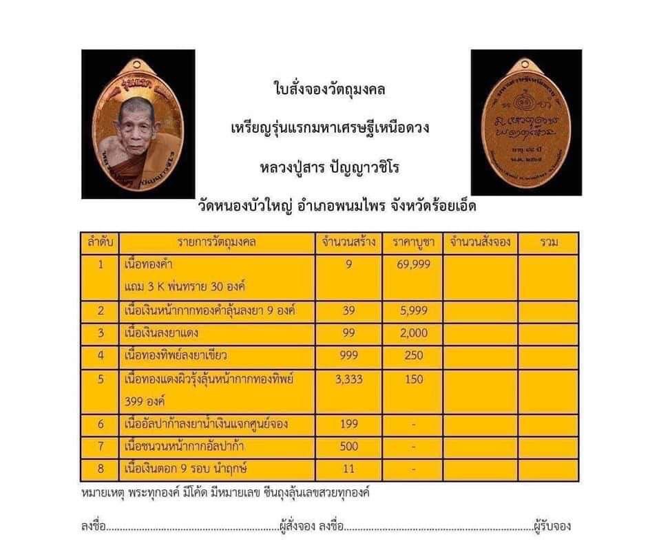 เหรียญรุ่นเเรก มหาเศรษฐีเหนือดวง หลวงปู่สาร ปัญญาวชิโร วัดหนองบัวใหญ่ จังหวัดร้อยเอ็ด