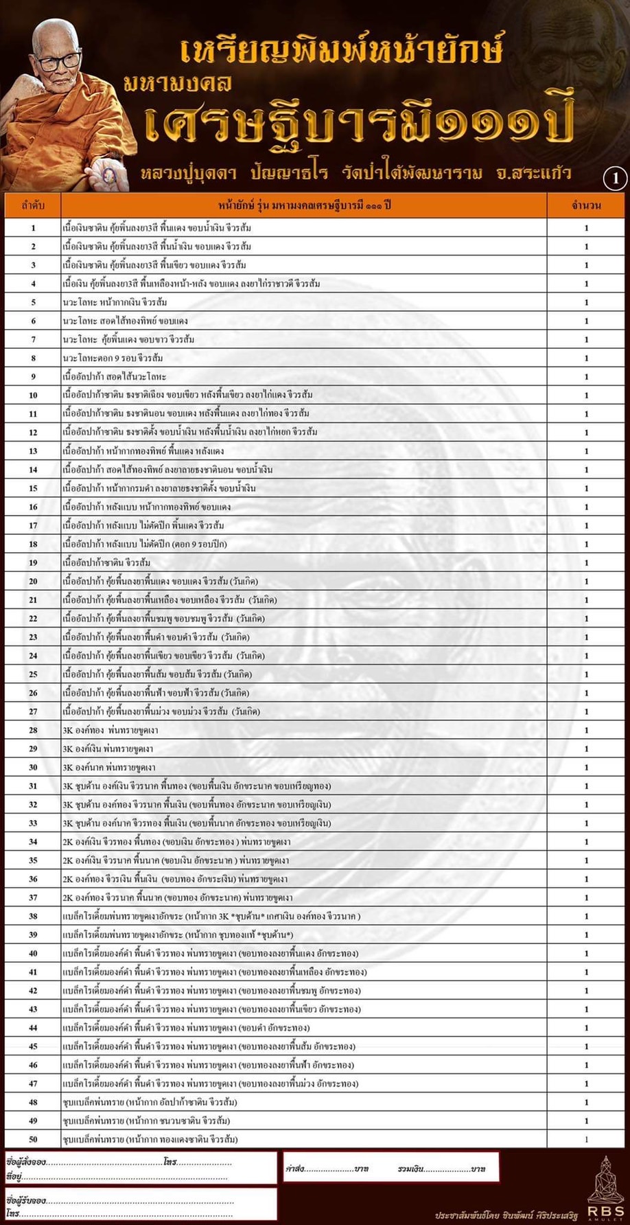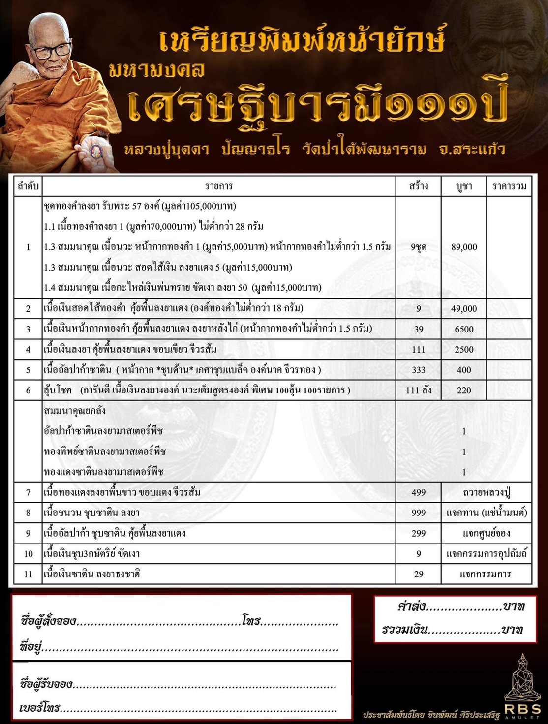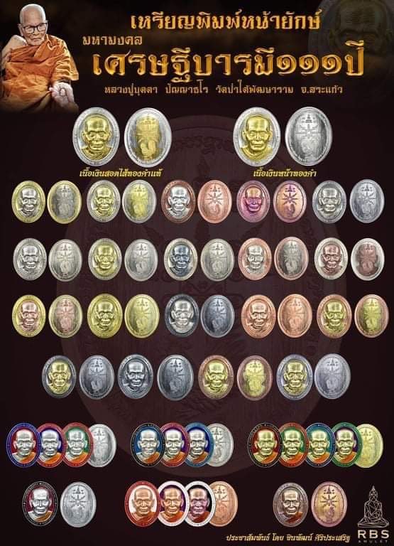 เหรียญหน้ายักษ์มหามงคล เศรษฐีบารมี ๑๑๑ ปี หลวงปู่บุดดา ปัญญาธโร วัดป่าใต้พัฒนาราม จ.สระแก้ว
