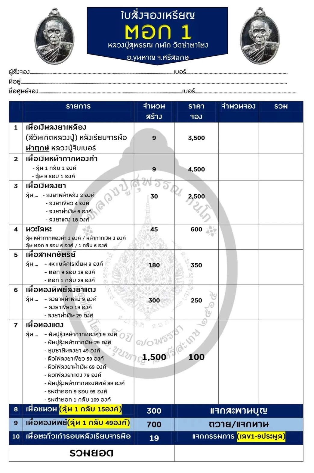 วัตถุมงคลทั้งหมด