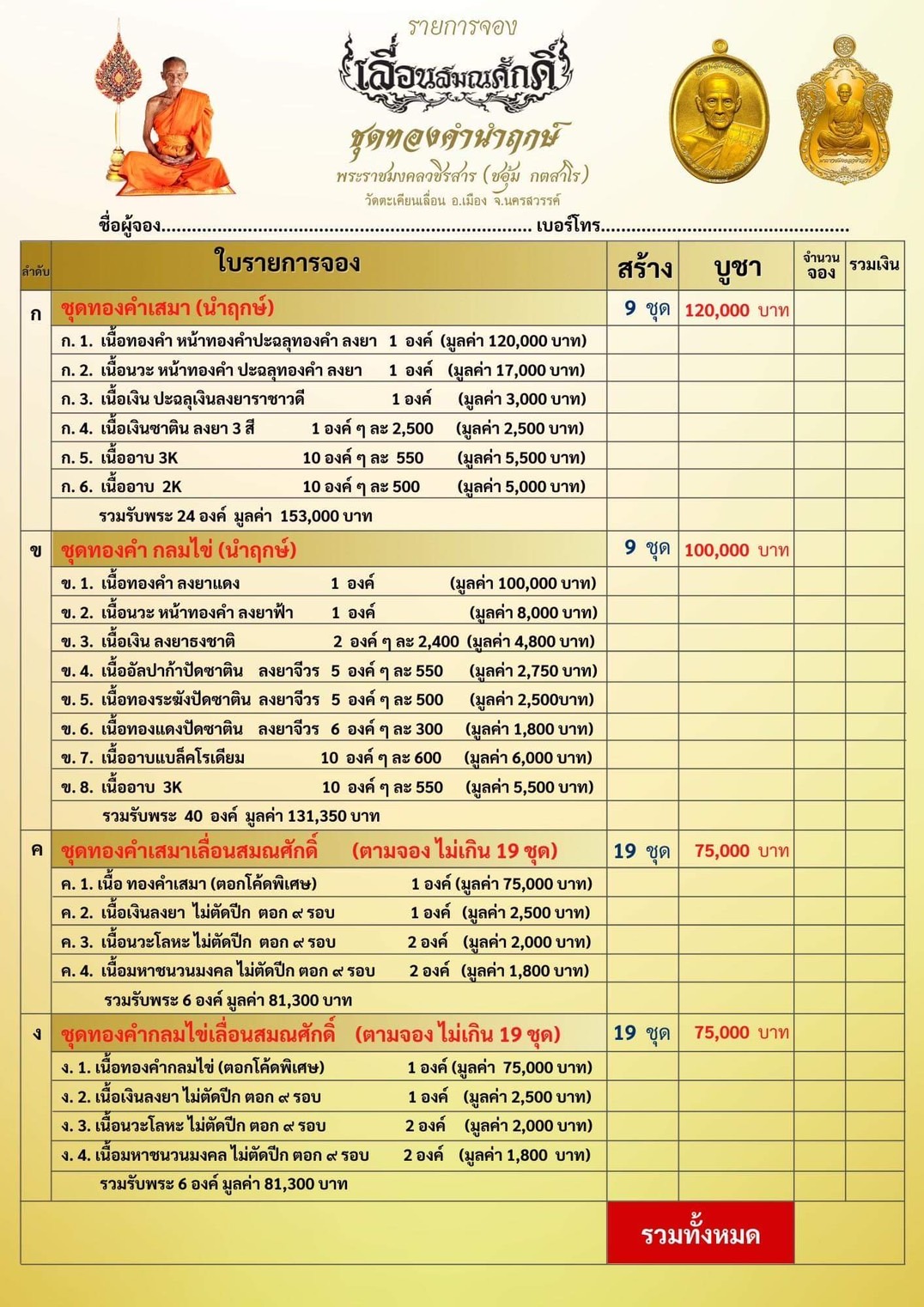 พระลักษณ์หน้าทอง ทุกวัด