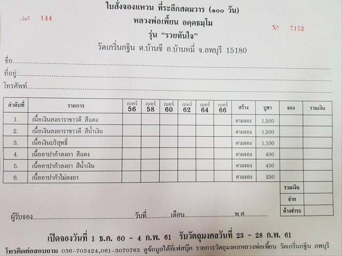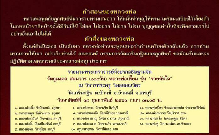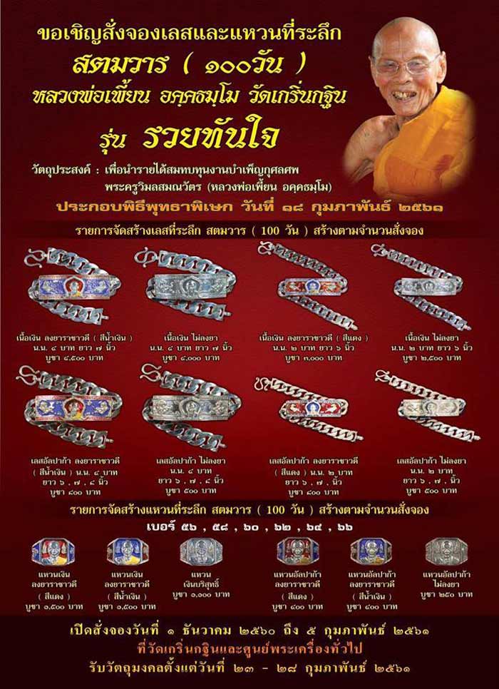 เลสข้อมือ - แหวน รุ่น รวยทันใจ หลวงพ่อเพี้ยน วัดเกริ่นกฐิน (สตมวาร 100 วัน)