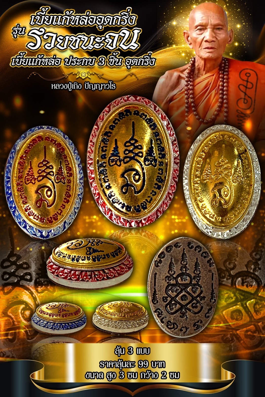 เบี้ยแก้หล่ออุดกริ่ง หลวงปู่เถิง ปัญญาวโร วัดบ้านอาลัย เนื้อเงินยวงชุบ เงิน ทอง นาค 2999 ชิ้น เนื้อเงินยวงชุบ เงินทองนาค ลงยาแดง 1000 ชิ้น เนื้อเงินยวง ชุบ เงินทองนาค ลงยา น้ำเงิน 1000 ชิ้น รายการลุ้น ลุ้นละ 99 บาท สร้าง 4999 ชิ้น ยกลัง แถม เนื้อเงินยวงปัดเงา 10 ชิ้น 👉สีทองสร้าง118ลูก 👉สีดำสร้าง121ลูก เสกแน่นๆ3วาระ 🙏"เบี้ยปัญญาวโร" ‼️เปิดจองรวม 200 ลูก‼️ ✅✅✅✅ที่เหลือถวายหลวงปู่✅✅✅✅ #ขวัญพระเครื่อง #ขวัญธานันท์พระเครื่อง