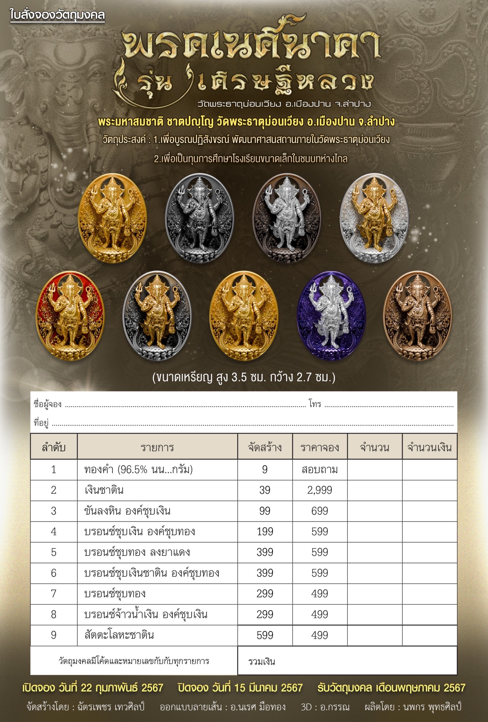 ประทานพร อุดมสมบูรณ์ ขจัดอุปสรรค พระพิฆเนศ เทพเจ้าแห่งความสำเร็จ เปิดจอง เหรียญพระพิฆเนศ✨ พรคเนศนาคา รุ่น เศรษฐีหลวง 🙏🏻วัดพระธาตุม่อนเวียง อ.เมืองปาน จ.ลำปาง #ขวัญพระเครื่อง #ขวัญธานันท์พระเครื่อง
