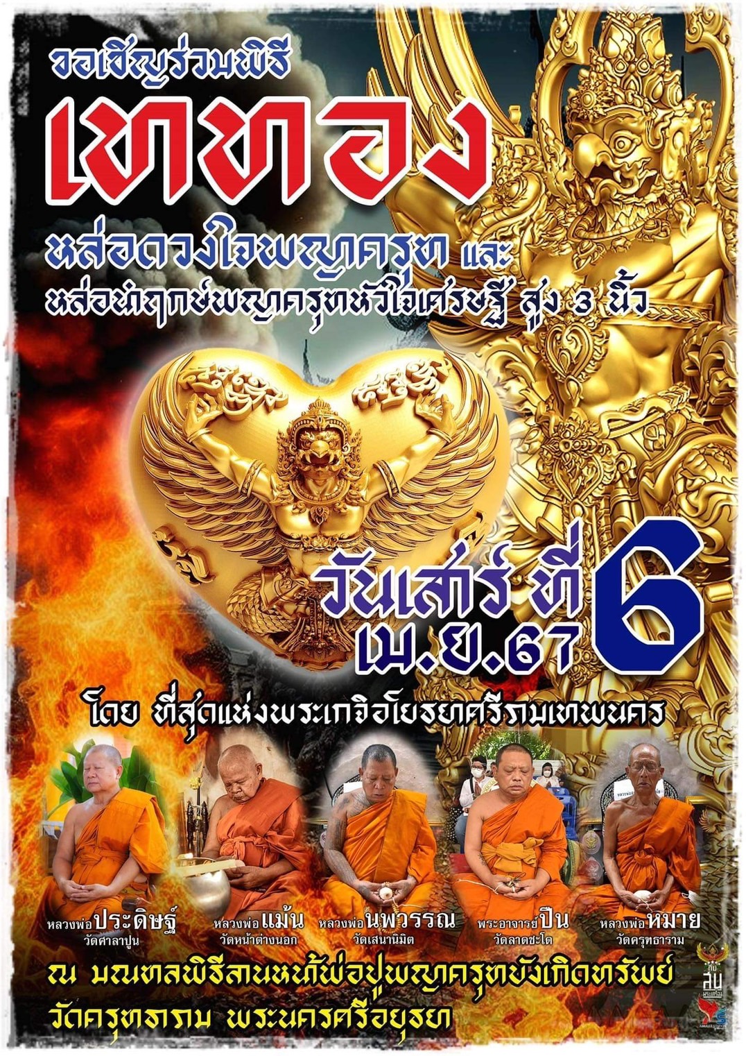 🙏🏼🩷ขอเชิญร่วมสร้างประวัติศาสตร์ครั้งแรกบนแผ่นดินอโยธยาศรีรามเทพ พิธีเททองหล่อดวงใจพญาครุฑ และพิธีพุทธาภิเษกดวงใจพญาครุฑ รุ่นแรก ณ วัดครุฑธาราม พระนครศรีอยุธยา วันเสาร์ ที่ 6 เมษายน 2567 เวลา 13.09 น. ❤️❤️ร่วมสั่งจองบูชาวัตถุมงคลที่ระลึกดวงใจอภิมหาเศรษฐี (ดวงใจพญาครุฑ รุ่นแรก) วาระที่ระลึกเททองหล่อดวงใจพญาครุฑบังเกิดทรัพย์ และเททองหล่อนำฤกษ์พญาครุฑอุอากะสะหัวใจเศรษฐี ขนาดบูชา 3 นิ้ว 📌📌📌รับวัตถุมงคลหลังพิธี📌📌📌 #ขวัญพระเครื่อง #ขวัญธานันท์พระเครื่อง