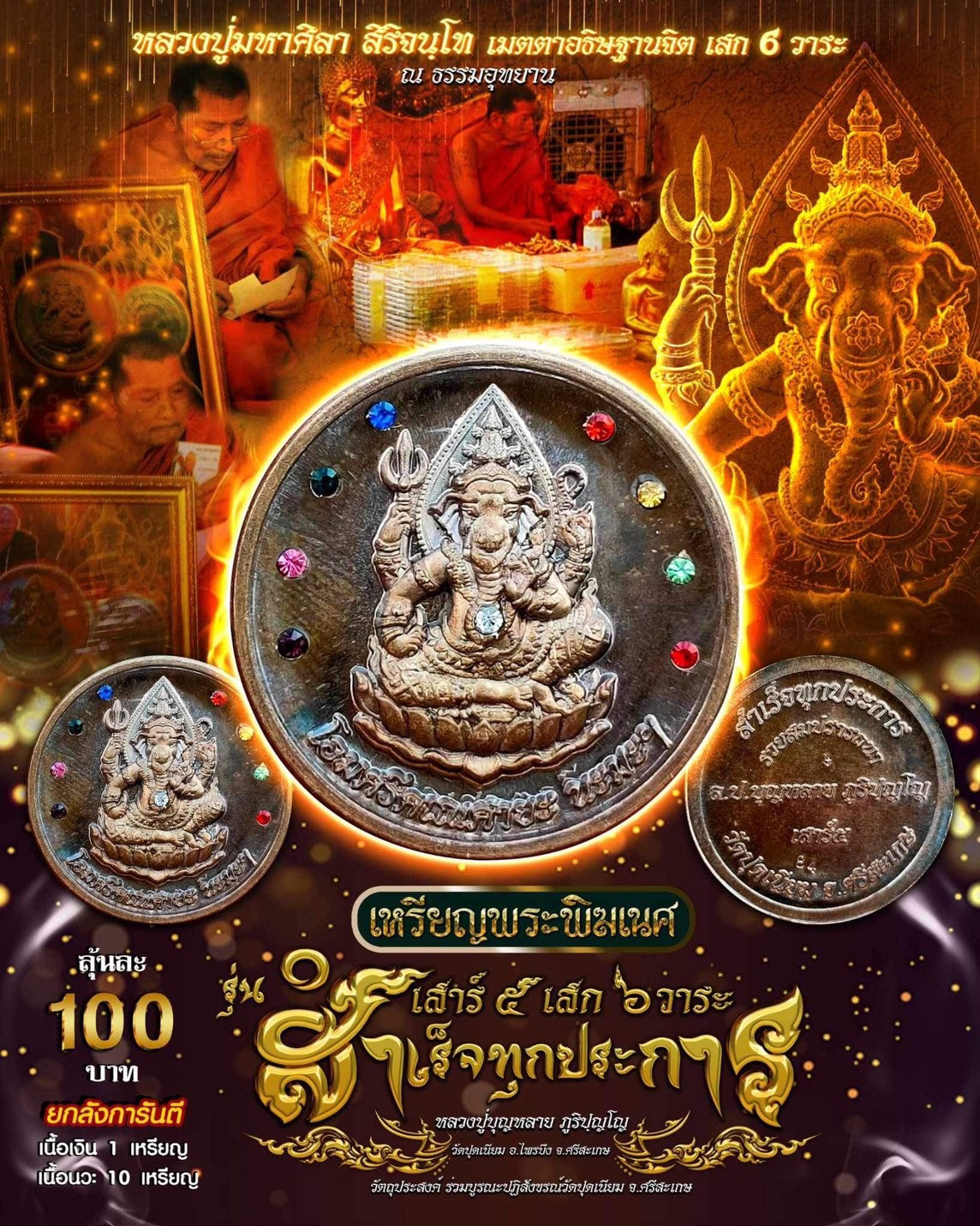 ✨✨เหรียญพระพิฆเนศ รุ่น สำเร็จทุกประการ✨✨หลวงปู่บุญหลาย วัดปุดเนียม จังหวัดศรีสะเกษ หลวงปู่มหาศิลา สิริจันโท เมตตาอธิษฐานจิต วาระที่ 6 ณ ธรรมอุทยาน เช้าวันที่ 15 พฤษภาคม 2567 ปลุกเสกฤกษ์เสาร์๕ ขึ้น ๕ ค่ำเดือน๕ ปีมะโรง เมื่อ13 เมษายน 2567 1วัน ลุ้นละ 100 บาท ลังละ 10,000 บาท ยกลังการันตีเนื้อเงิน 1 นวะ 10 เหรียญพระพิฆเนศ รุ่น สำเร็จทุกประการ หลวงปู่มหาศิลาเมตตาเสกวาระที่6 อีก 5 วาระก็จัดเต็ม วาระที่1 หลวงพ่อชิต เตชะธัมโม วัดบ้านสนวน อ.ปรางค์กู่ จ.ศรีสะเกษ วาระที่2 หลวงปู่อุดมทรัพย์ สิริคุตโต วัดเวฬุวันธรรมาราม อ.พยุห์ จ.ศรีสะเกษ วาระที่ 3 หลวงปู่วิเชียร วิมโร วัดเสมอใจ อ.พยุห์ จ.ศรีสะเกษ วาระที่ 4 หลวงปู่เถิง ปัญญาวโร วัดบ้านฮาลัย ต.จาน อ.กันทรารมย์ จ.ศรีสะเกษ วาระที่5 หลวงปู่บุญหลาย ภูริปฺญโญ วัดปุดเนียม อ.ไพรบึง จ.ศรีสะเกษ พระพิฆเนศ เป็นเทพเจ้าผู้ทรงภูมิปัญญาอันยิ่งใหญ่ผู้ขจัดอุปสรรคและอำนวยความสำเร็จในทุกสิ่ง พระองค์ทรงเป็นเทพเจ้าแห่งสากลที่มีผู้นับถือมากที่สุดองค์หนึ่งโดยเฉพาะในทวีปเอเชีย พระพิฆเนศ เป็นองค์เทพเจ้าแห่งศิลปศาสตร์ทั้งปวง พระองค์ทรงเป็นเทพแห่งดาบ และความรอบรู้ต่างๆเป็นเทพเจ้าแห่งการขจัดอุปสรรคความขัดข้อง ดังนั้นหากผู้ใดเป็นผู้รู้ และประสบความสำเร็จต่อกิจการทั้งปวงมักจะบูชาพระพิฆเนศ #ขวัญพระเครื่อง #ขวัญธานันท์พระเครื่อง
