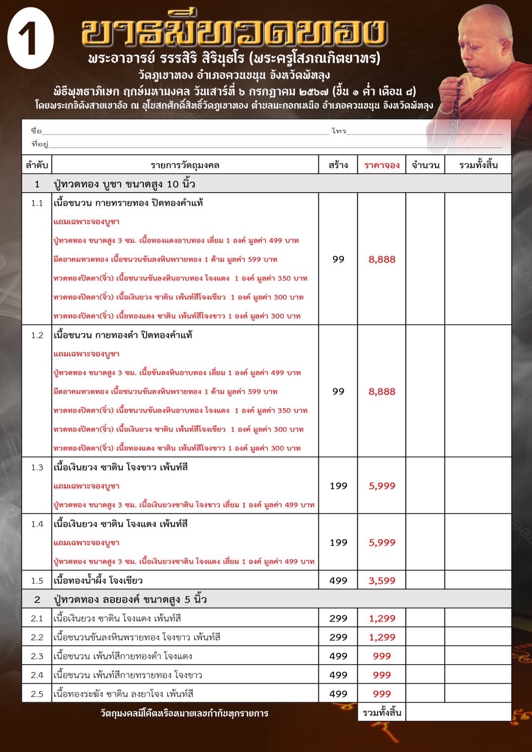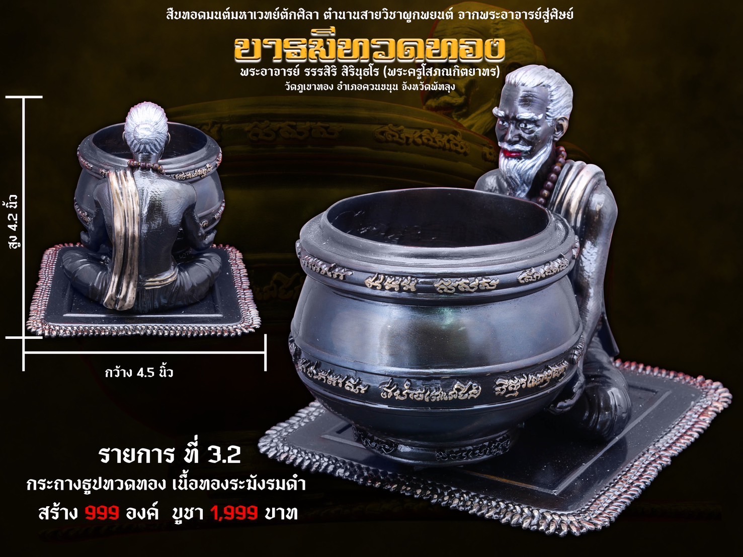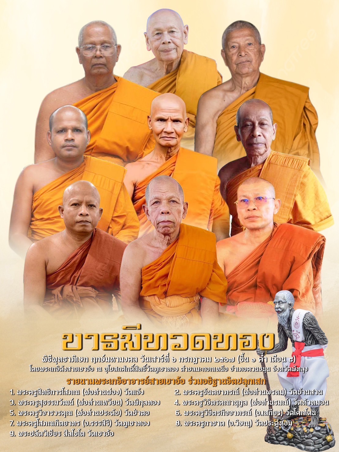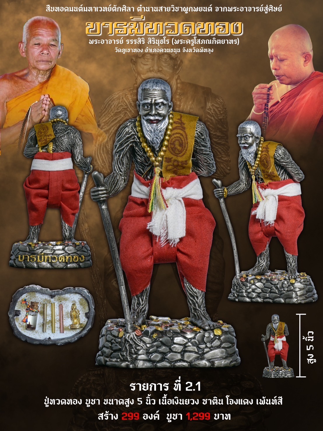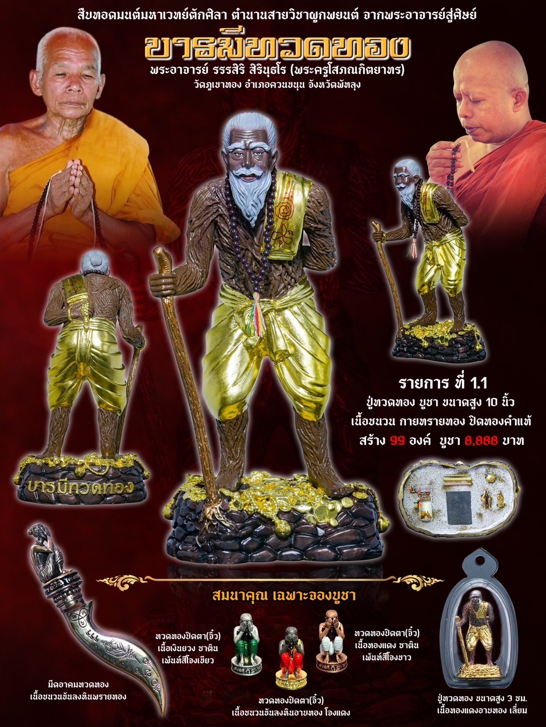 บารมีทวดทอง หุ่นพยนต์สายเขาอัอ ตาปะขาววัดภูเขาทอง มีดหมอวัดภูเขาทอง กระถางธูปวัดภูเขาทอง พระอาจารย์ รรรสิริ เจ้าอาวาสวัดภูเขาทอง 🙏ต้นตำหรับสายตรง หนึ่งเดียวแห่งสำนักตักศิลา เขาอัอ ในการผูกจิต มัดใจ ใส่คาถาอาคม ที่ได้รับการถ่ายทอดความรู้จากพ่อท่านคลัอย เกจิที่มีทั้งศิษย์คนไทยและต่างประเทศ มากราบไหว้ขอพรกันไม่ขาดสาย จนถึงท่านละสังขาร จนถึงปัจจุบัน พระอาจารย์รรรสิริ เจ้าอาวาสองค์ปัจจุบัน ได้เข้ามาดูแล และ ทำนุบำรุง วัดภูเขาทอง จึงจัดสร้างวัตถุมงคล เพืีอนำรายได้มา ซ่อมแซม ปรับปรุงภายในวัดต่อไป รายนามพระเกจิอาจารย์ ที่อธิฐานจิตปลุกเสกวัตถุมงคล ในรุ่น“บารมีทวดทอง” 1. พระครูสิทธิการโสภณ (พ่อท่านผ่อง) วัดแจ้ง 2. พระครูขันตยาภรณ์ (พ่อท่านพรหม) วัดบ้านสวน 3. พระครูสุธรรมวัฒน์ (พ่อท่านเหวียน) วัดพิกุลทอง 4. พระครูวิจิตรคณานุกูล (พ่อท่านรมณ์) วัดหัวหมอน 5. พระครูวิจารวรคุณ (พ่อท่านประดับ) วัดป่าตอ 6. พระครูวิจิตรกิจจาภรณ์ (อ.เสถียร) วัดโคกโดน 7. พระครูโสภณกิตยาทร (อ.รรรสิริ) วัดภูเขาทอง 8. พระครูกาชาด (อ.วิษณุ) วัดประดู่หอม 9. พระปลัดวิเชียร สีลโชโต วัดเขาอ้อ #ขวัญพระเครื่อง #ขวัญธานันท์พระเครื่อง