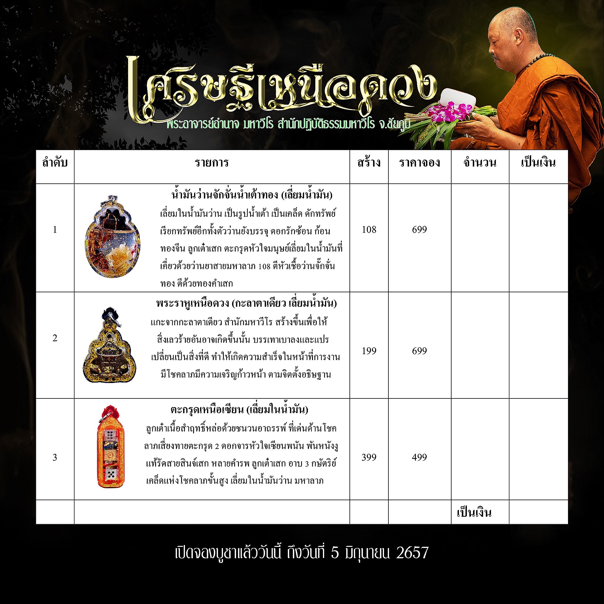 🎊เปิดจองบูชา 🧧รายการ1.น้ำมันว่านจั๊กจั่นน้ำเต้าทอง 🙏เมตตาอธิษฐานจิต พระอาจารย์อำนาจ มหาวีโร สำนักปฏิบัติธรรมมหาวีโร จ.ชัยภูมิ 📍รายละเอียดในภาพ น้ำมันจั๊กจั่น ราหูเหนือดวง ตะกรุดเหนือดวง มูเตลู มหาวีโร 🎊เปิดจองแล้ววันนี้ #ขวัญพระเครื่อง #ขวัญธานันท์พระเครื่อง