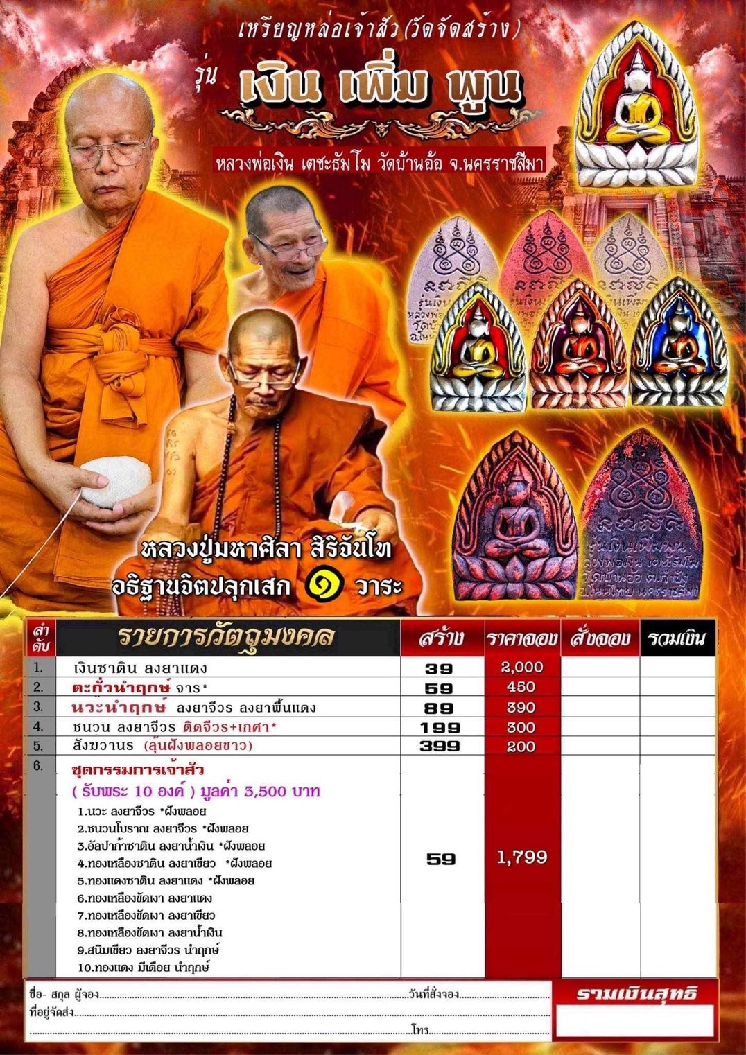 🚩🚩🚩เปิดจอง🚩🚩🚩 ‼️‼️‼️งานวัดสร้าง‼️‼️‼️ 🙏🙏หลวงปู่มหาศิลา ร่วมปลุกเสกเดี่ยว วาระแรก🙏🙏 🙏🙏🙏หลวงพ่อเงิน เตชะธัมโม🙏🙏🙏 ⭐⭐⭐เจ้าสัวหล่อรุ่นเงินเพิ่มพูน⭐⭐⭐ 💥💥💥รายการนำฤกษ์💥💥💥 1.เงินซาติน ลงยาแดง 2000บาท 2.ตะกั่ว นำฤกษ์(จาร)450บาท 3.นวะ นำฤกษ์ ลงยาจีวร พื้นแดง 390บาท 4.ชนวนลงยาจีวร ติดจีวร+เกศา 300บาท 5.สังฆวานร(ลุ้นฝั่งพลอยขาว)200บาท 6.ชุดกรรมการ(รับพระ10องค์)1799บาท 📌📌ปิดจอง19มิถุนายน📌📌 #ขวัญพระเครื่อง #ขวัญธานันท์พระเครื่อง