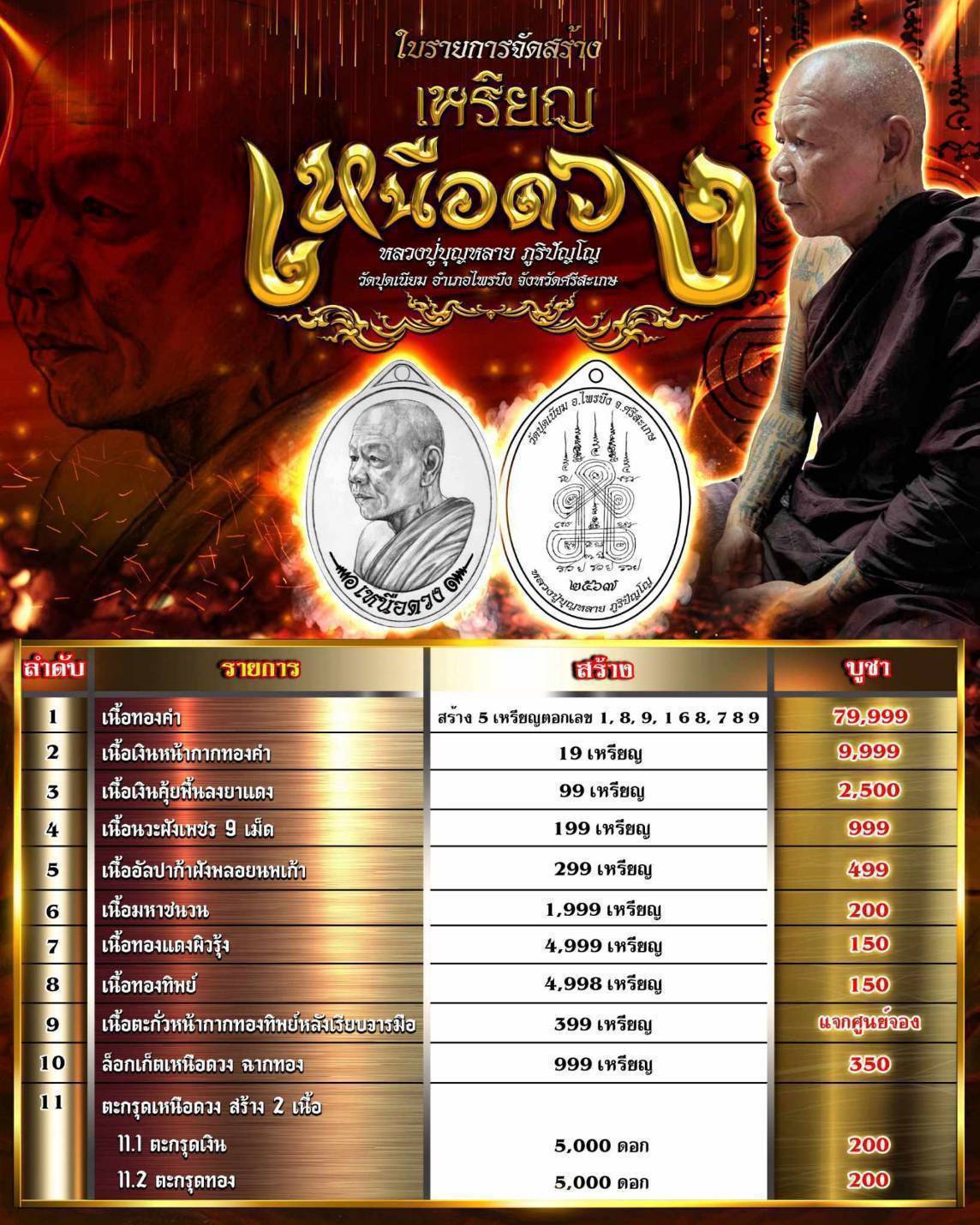 เหรียญเหนือดวง หลวงปู่บุญหลาย ภูริปัญโญ วัดปุดเนียม ศรีสะเกษ