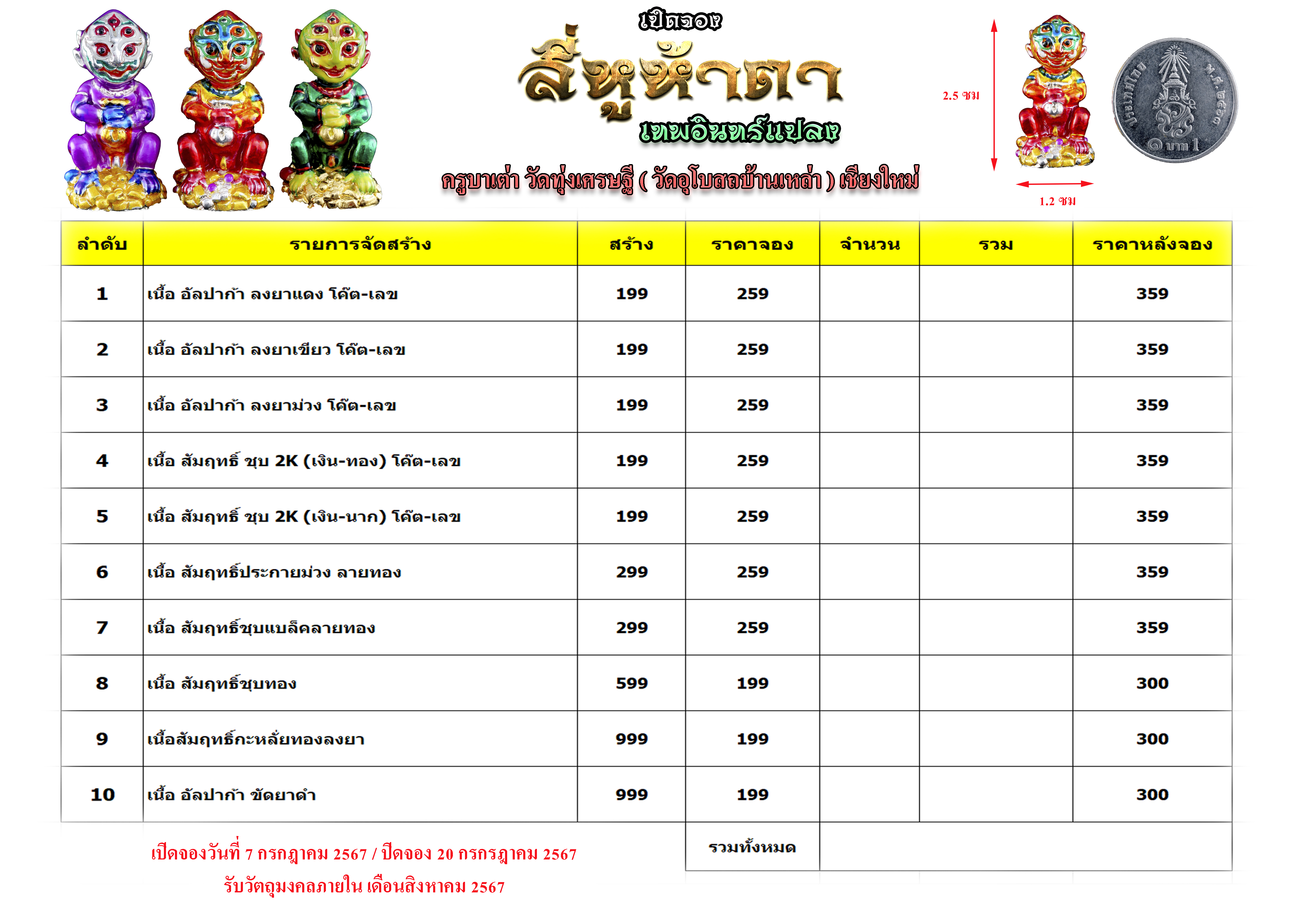 💥เปิดรับจอง 💥 สี่หูห้าตา เทพอินทร์แปลง ครูบาเต่า วัดทุ่งเศรษฐี (วัดอุโบสถบ้านเหล่า) จ.เชียงใหม่ สี่หูห้าตา เทพอินทร์แลง #ขวัญพระเครื่อง #ขวัญธานันท์พระเครื่อง