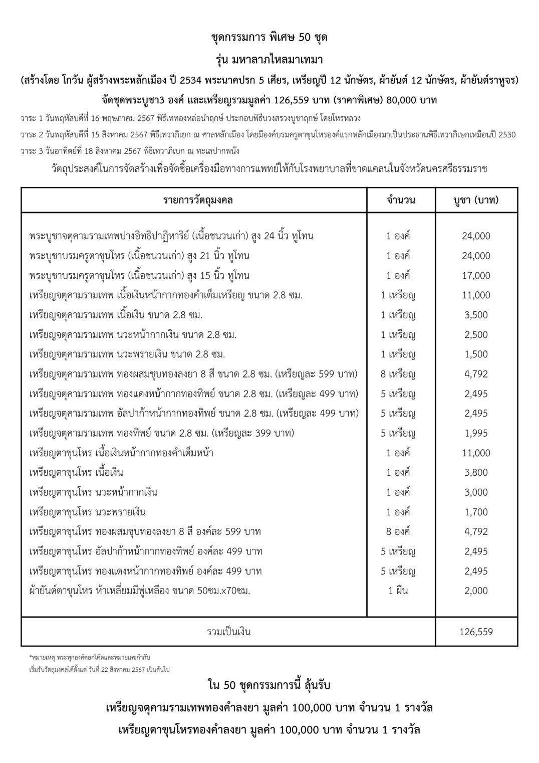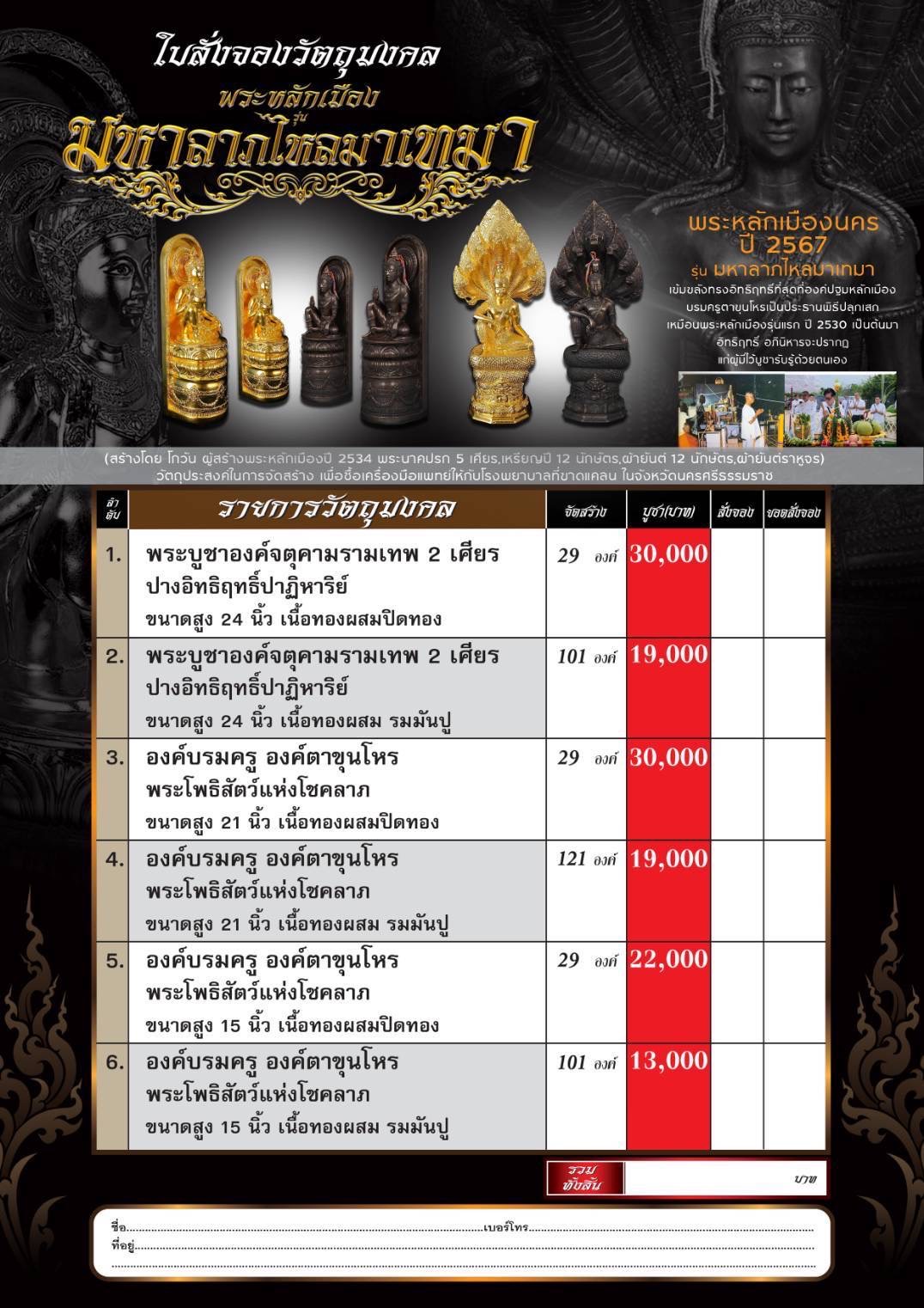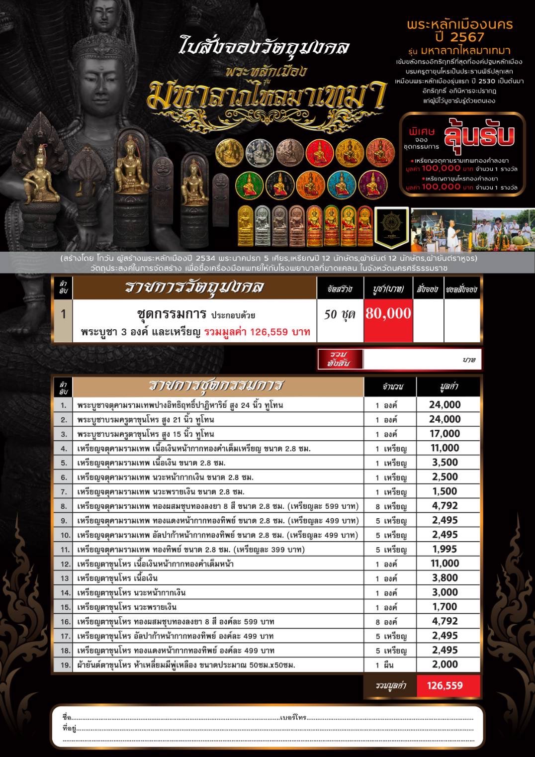 พระหลักเมืองนคร รุ่น มหาลาภเงินไหลมา ปี 2567 ศาลหลักเมือง
