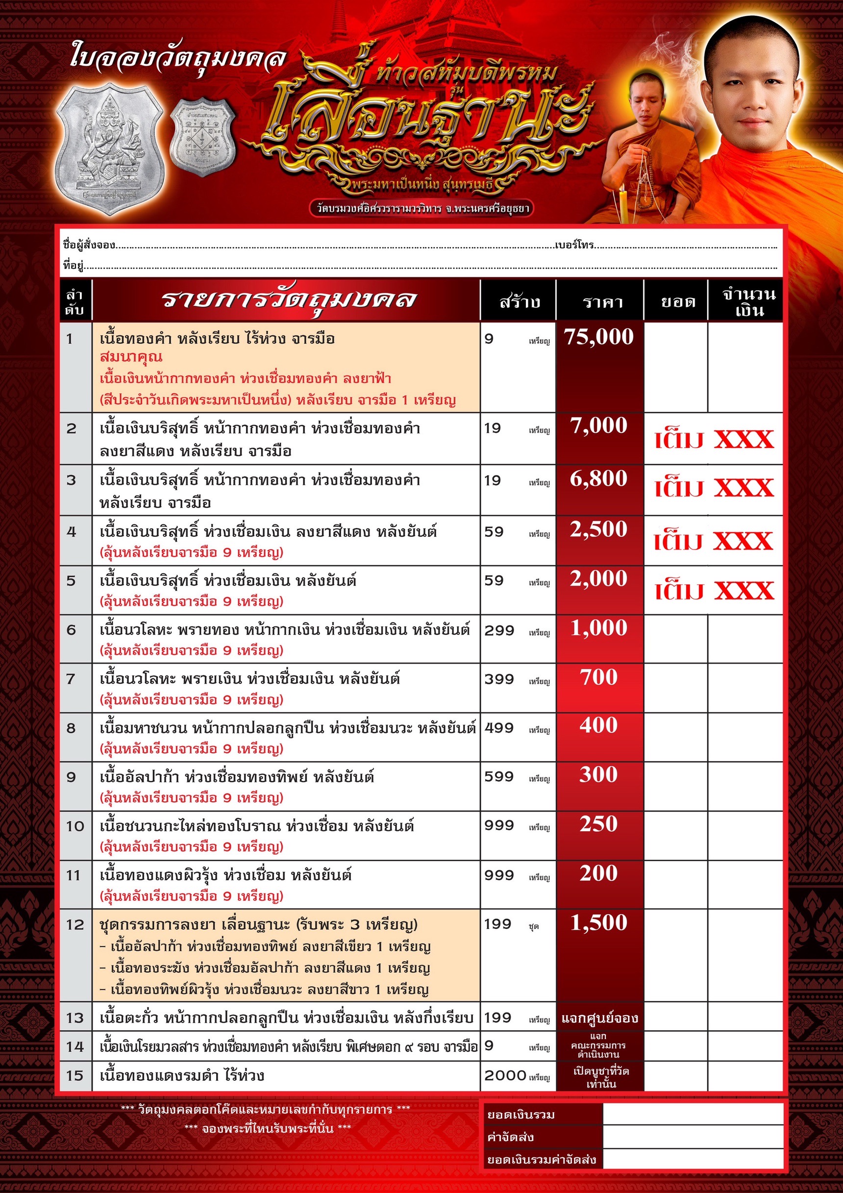 วัตถุมงคลทั้งหมด
