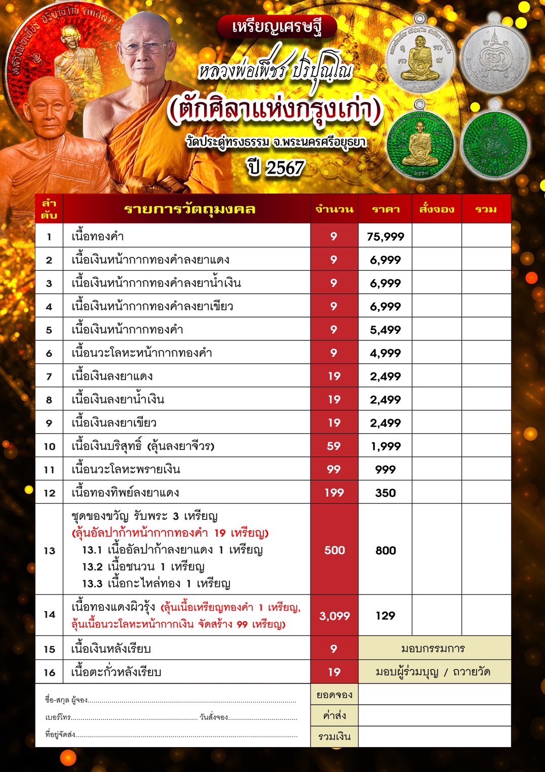 ใบรายการจัดสร้าง เหรียญเศรษฐี หลวงพ่อเพ็ชร ปริปุณฺโณ วัดประดูทรงธรรรม จ.พระนครศรีอยุธยา มาร่วมขบวนด้วยกันจ้า เหรียญเศรษฐี หลวงพ่อเพ็ชรปริปุณฺโณ วัดประดู่ทรงธรรม #ขวัญพระเครื่อง #ขวัญธานันท์พระเครื่อง