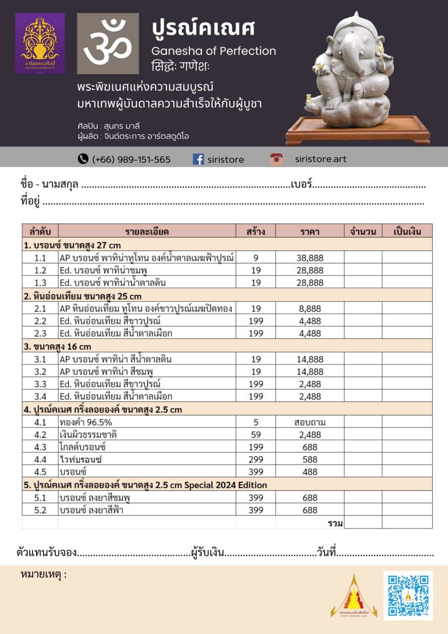 ต้อนรับวันแรกของเดือนสิงหาคม 2567 กับสีขาว "ปูรณ์" ซึ่งหมายถึง "สีขาวแห่งความอุดมสมบูรณ์" 🕉️ปูรณ์คเณศ सिद्धेः गणेशः ปางพระพิฆเนศใน “วัยเด็ก” วัยแห่งการเริ่มต้น ที่พร้อมจะก้าวไปสู่ความสำเร็จ . ประดิษฐานบนเมฆสวรรค์ บันดาลโชค ขจัดอุปสรรค และปัญหาต่างๆ เสริมสร้างความสำเร็จ มั่งคั่ง ร่ำรวย ให้ความรู้สึกขลัง แต่แฝงด้วยความน่ารัก . 🙌 ผลงานปั้นมือ 🙌 ศิลปิน : อาจารย์สุนทร มาลี Studio : จินต์ตระการ อาร์ตสตูดิโอ สีขาวปูรณ์ (หินอ่อนเทียม) มี 2 ขนาด 👉สูง 25cm สั่งจอง 4,488 บาท 👉สูง 16cm สั่งจอง 2,488 บาท #ขวัญพระเครื่อง #ขวัญธานันท์พระเครื่อง