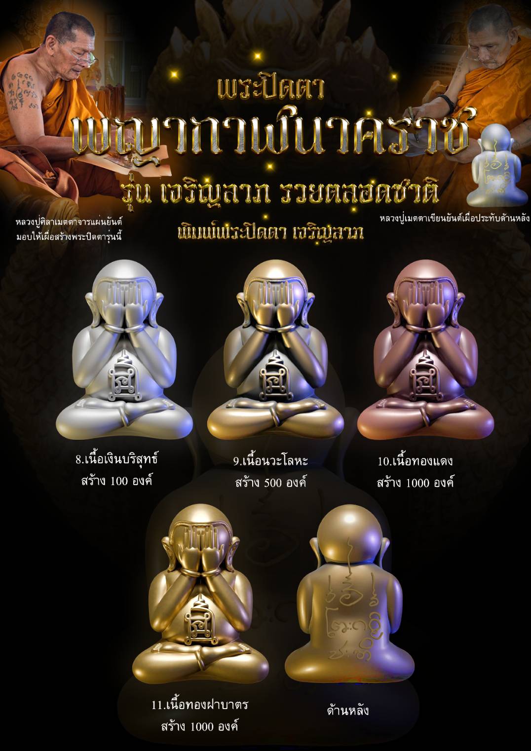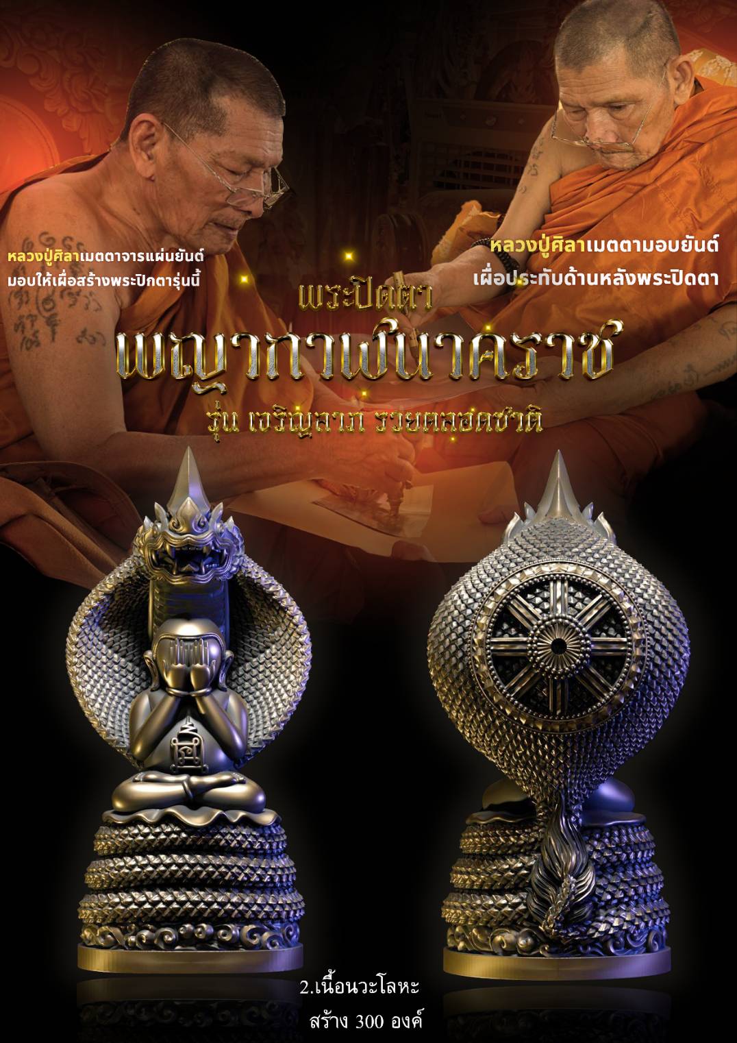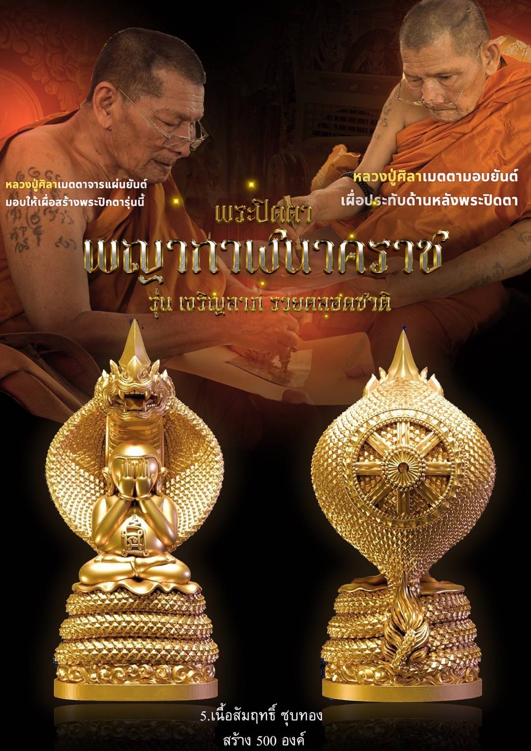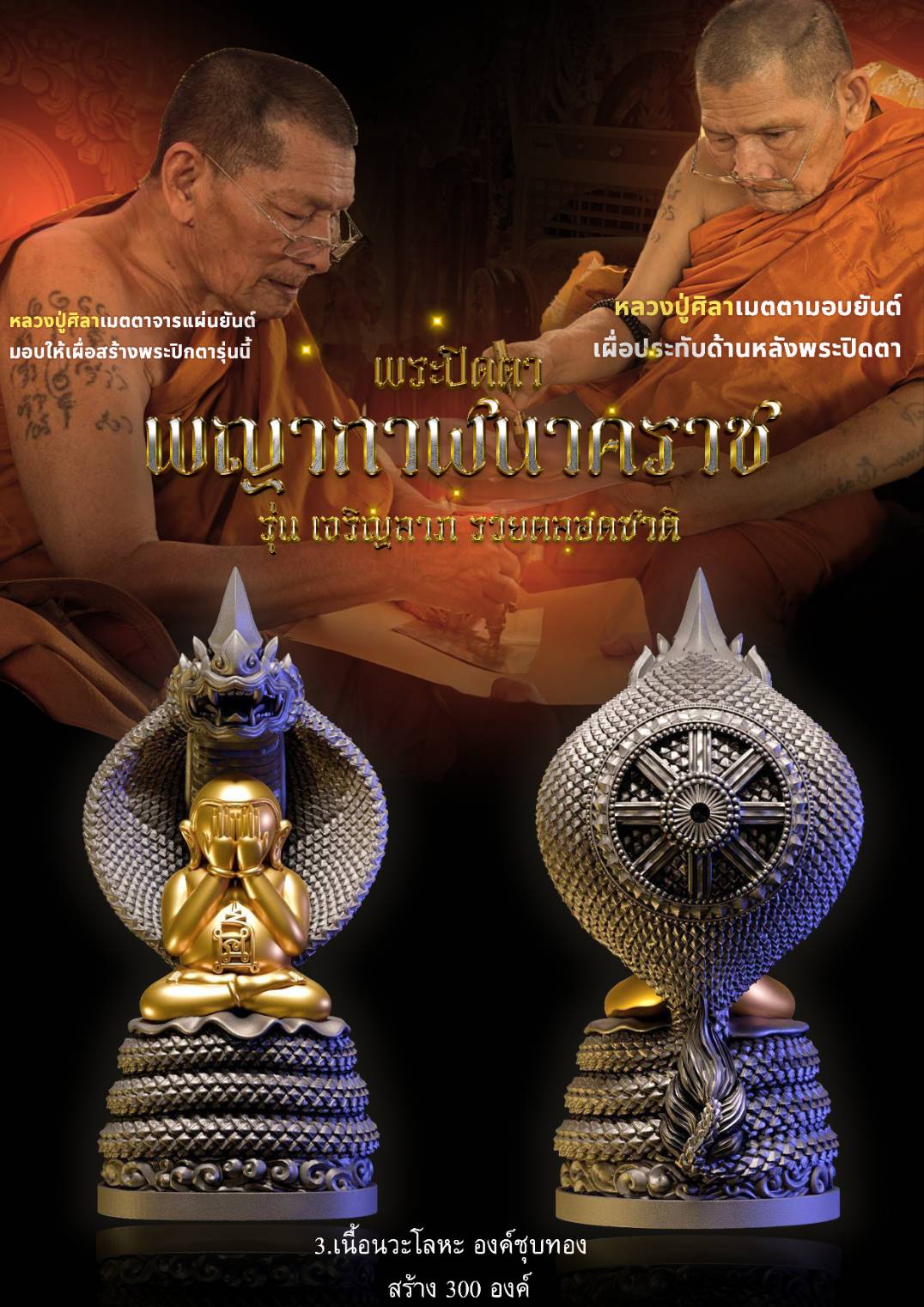 พระปิดตาพญากาฬนาคราช ปลุกเสกตามตำราวิชาโบราณพญากาฬนาคราชนอนกิน มีพุทธคุณและ อิทธิฤทธิ์โดดเด่นด้านเสริมดวงชะตา โชคลาภ การงาน การค้า นำมาซึ่งความเจริญรุ่งเรือง มีพุทธคุณ 108 ประการ พระปิดตารุ่นนี้หลวงปู่ศิลา ท่านเมตตา จารพระยันต์ลงในแผ่นโลหะเพื่อใช้ในการหล่อหลอม และได้เมตตาเขียนยันต์เพื่อใช้ประทับด้านหลังพระปิดตารุ่นนี้อีกด้วย พร้อมพิธีพุทธาภิเษกอย่างครบถ้วนสมบูรณ์ หลวงปู่ศิลา พระเกจิ พระปิดตาพญานาค โรงหล่อ บ. นพกร พุทธศิลป์ จำกัด #ขวัญพระเครื่อง #ขวัญธานันท์พระเครื่อง