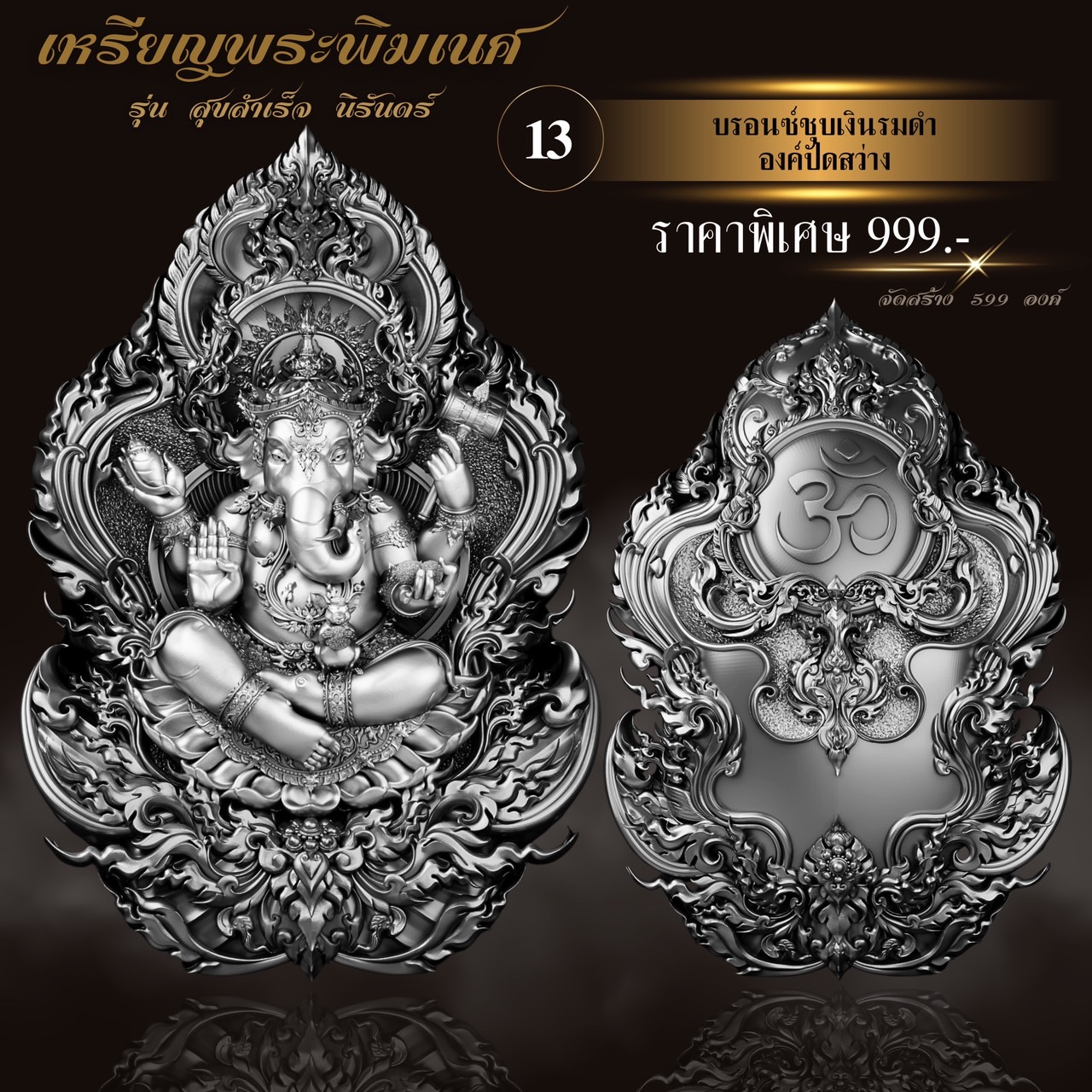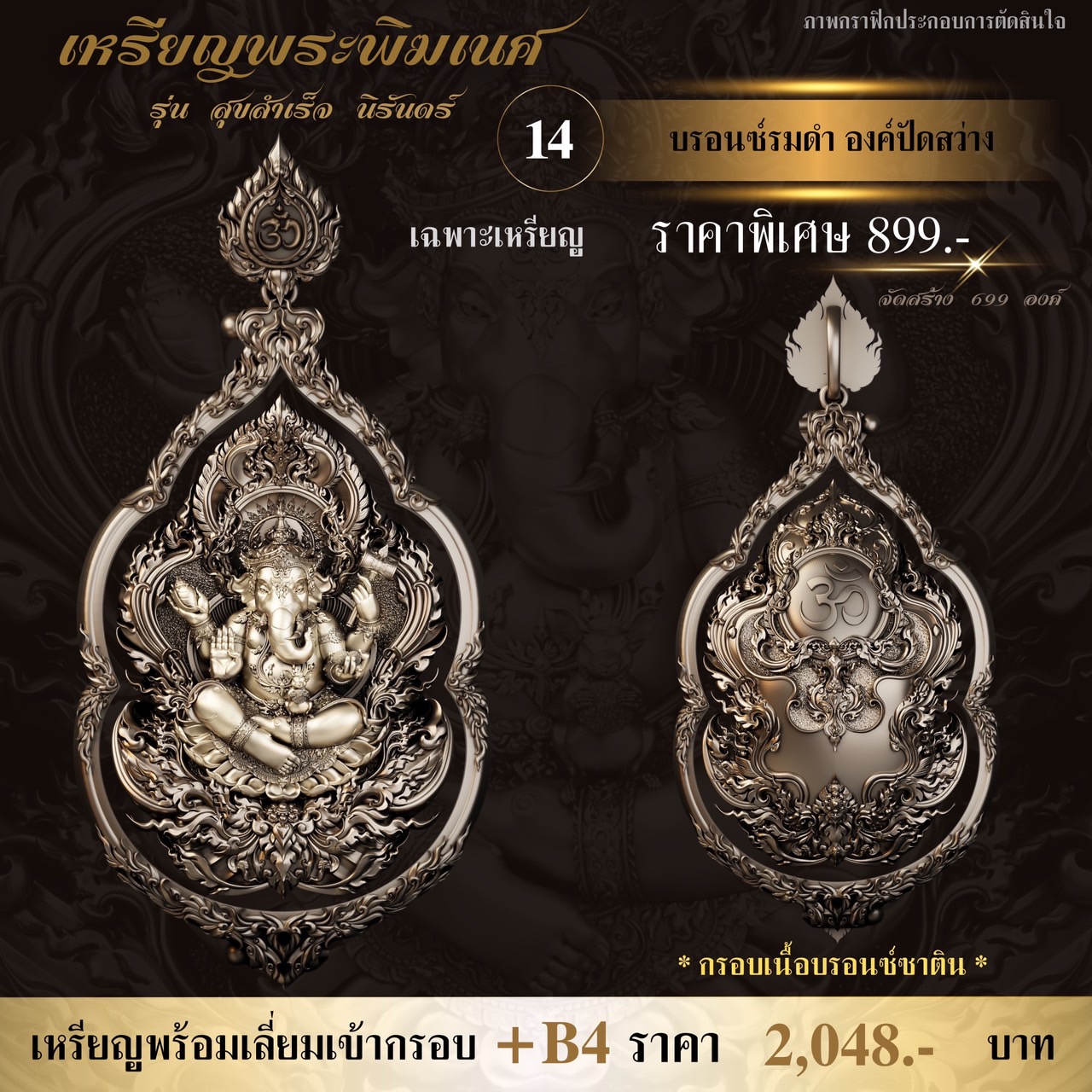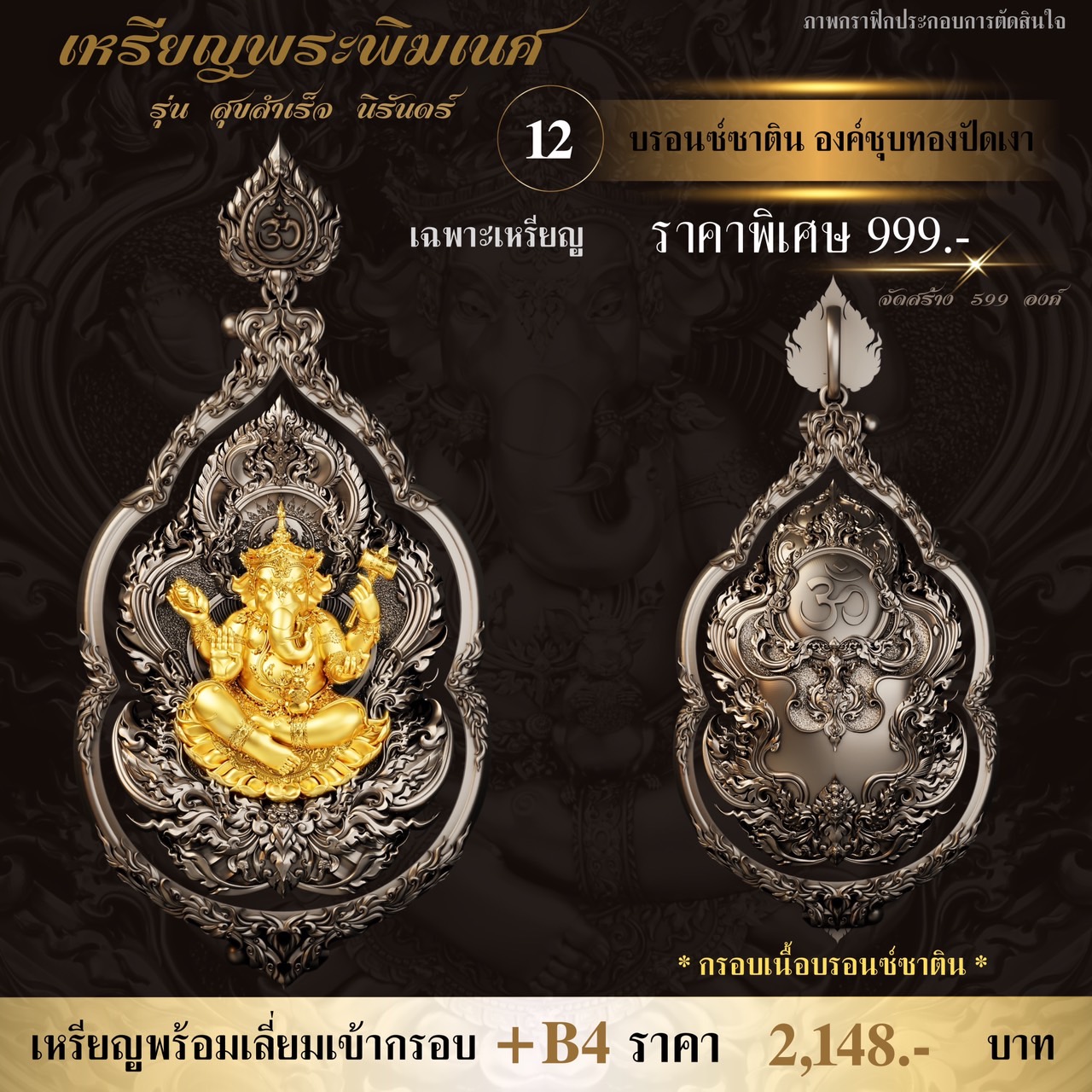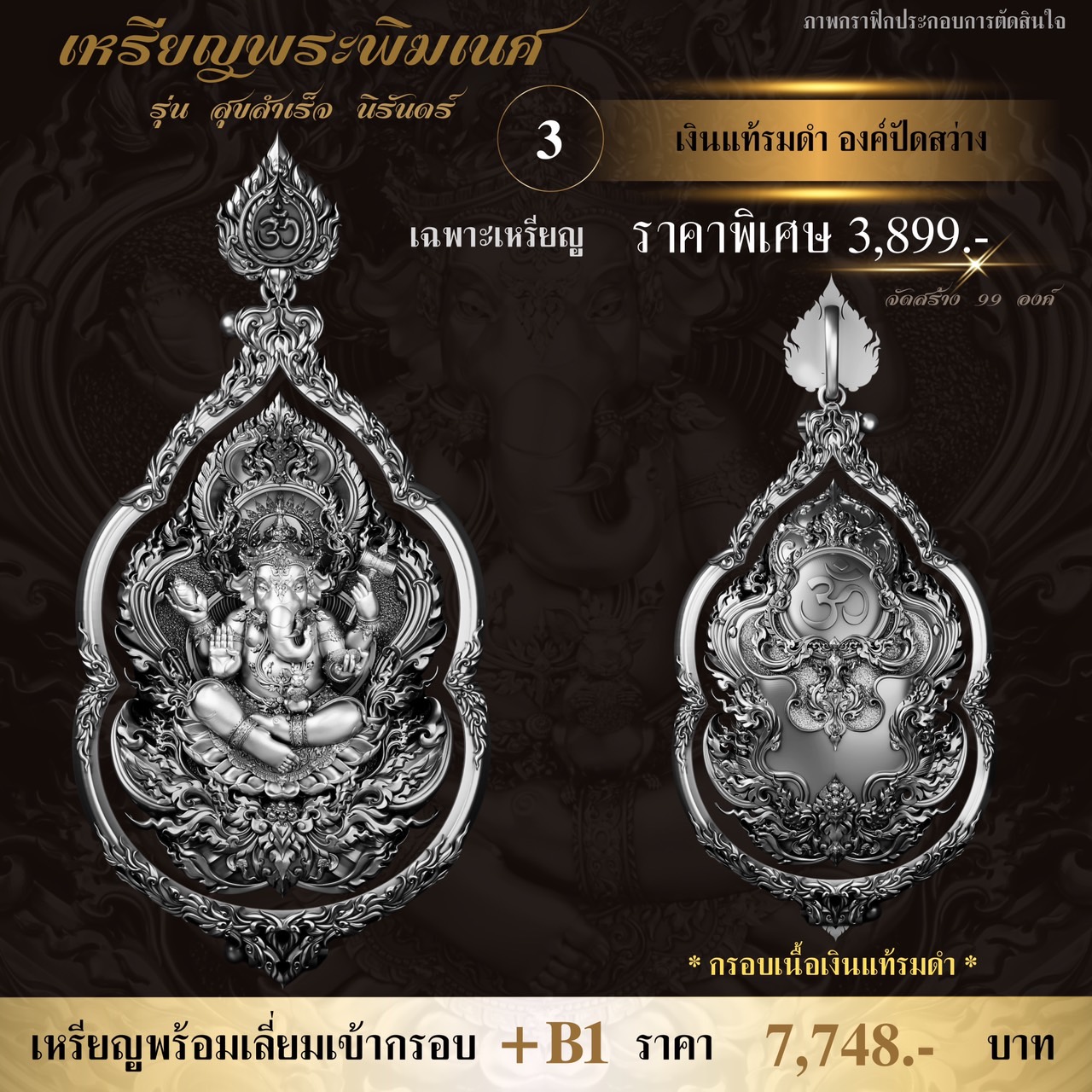 ภาพตัวอย่างเหรียญพระพิฆเนศ รุ่น สุขสำเร็จ นิรันดร์ พร้อมกรอบสุดพรีเมี่ยม ออกแบบพิเศษโดยเฉพาะเลยจ้า กำหนดรับผลงานเดือนธันวาคม-มกราคม ⭐️ออกแบบลายเส้น : อาจารย์Chatchai Phanpha ⭐️ประติมากรรม 3D : Heno mockupman ⚜️โรงหล่อ : พระรามห้า (พรีเมี่ยมคุณภาพสูง) ⚜️จัดสร้างโดย : The Gallery Art Amulet Center ขนาดสูง 4 เซนติเมตร กว้าง 2.7 เซนติเมตร ✅มีพิธีเทวาภิเษกโดยพราหมณ์ ✅มีโค้ดและหมายเลขกำกับทุกองค์ ✅มีกรอบให้เลือกจองพร้อมบริการเลี่ยมเข้ากรอบให้เรียบร้อย กำหนดรับผลงานเดือนธันวาคม-มกราคม 🔹ออกแบบลายเส้น : อาจารย์Chatchai Phanpha 🔹ประติมากรรม 3D : Heno mockupman 🔸โรงหล่อ : พระรามห้า (พรีเมี่ยมคุณภาพสูง) 🔸จัดสร้างโดย : The Gallery Art Amulet Center #ขวัญพระเครื่อง #ขวัญธานันท์พระเครื่อง