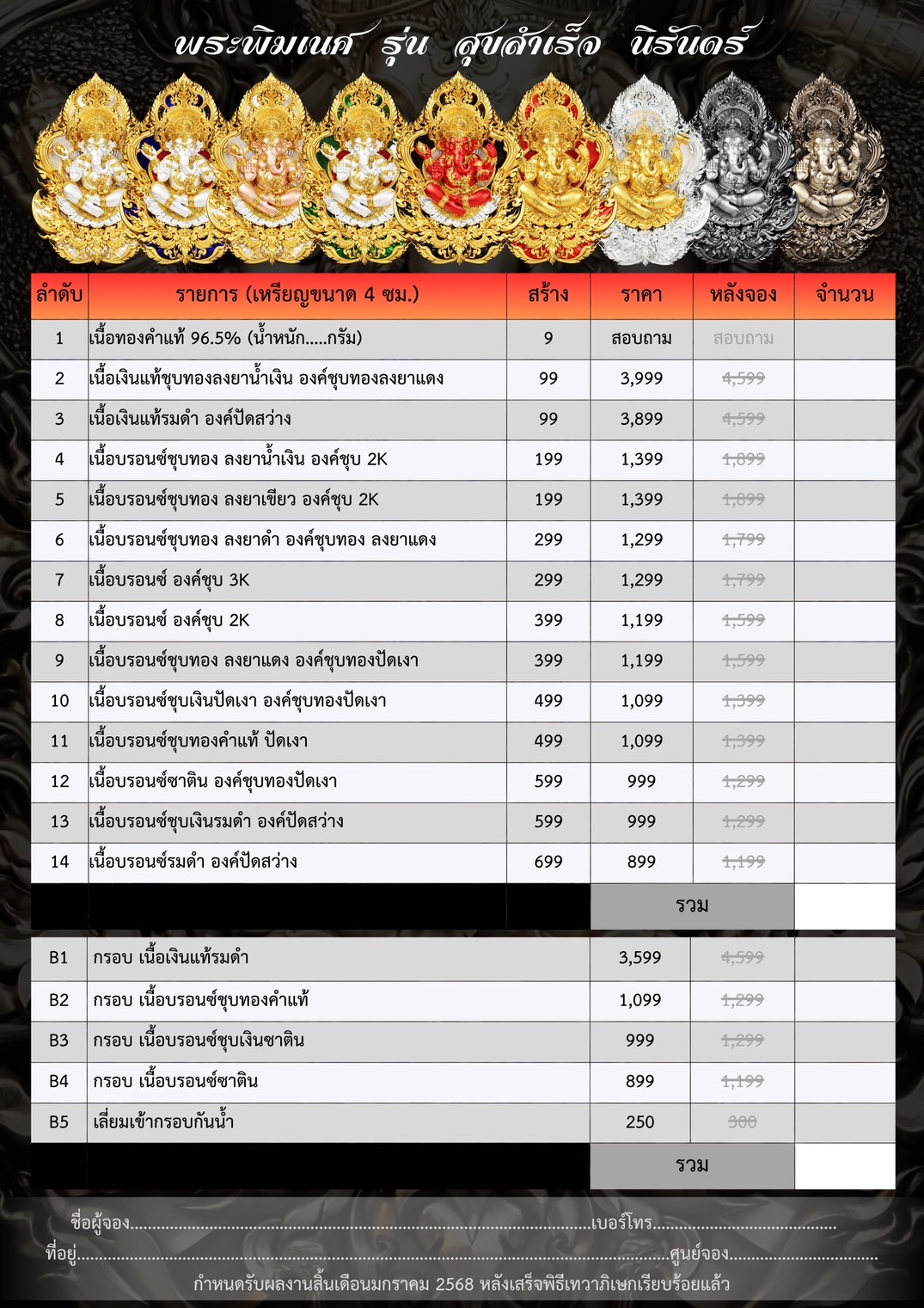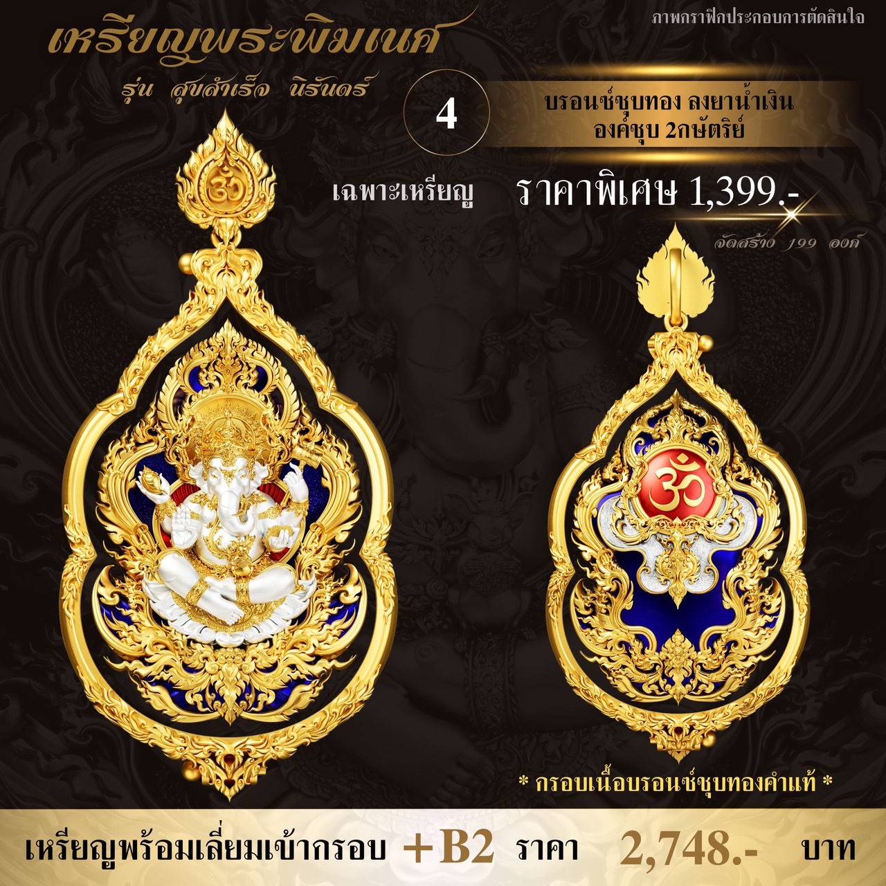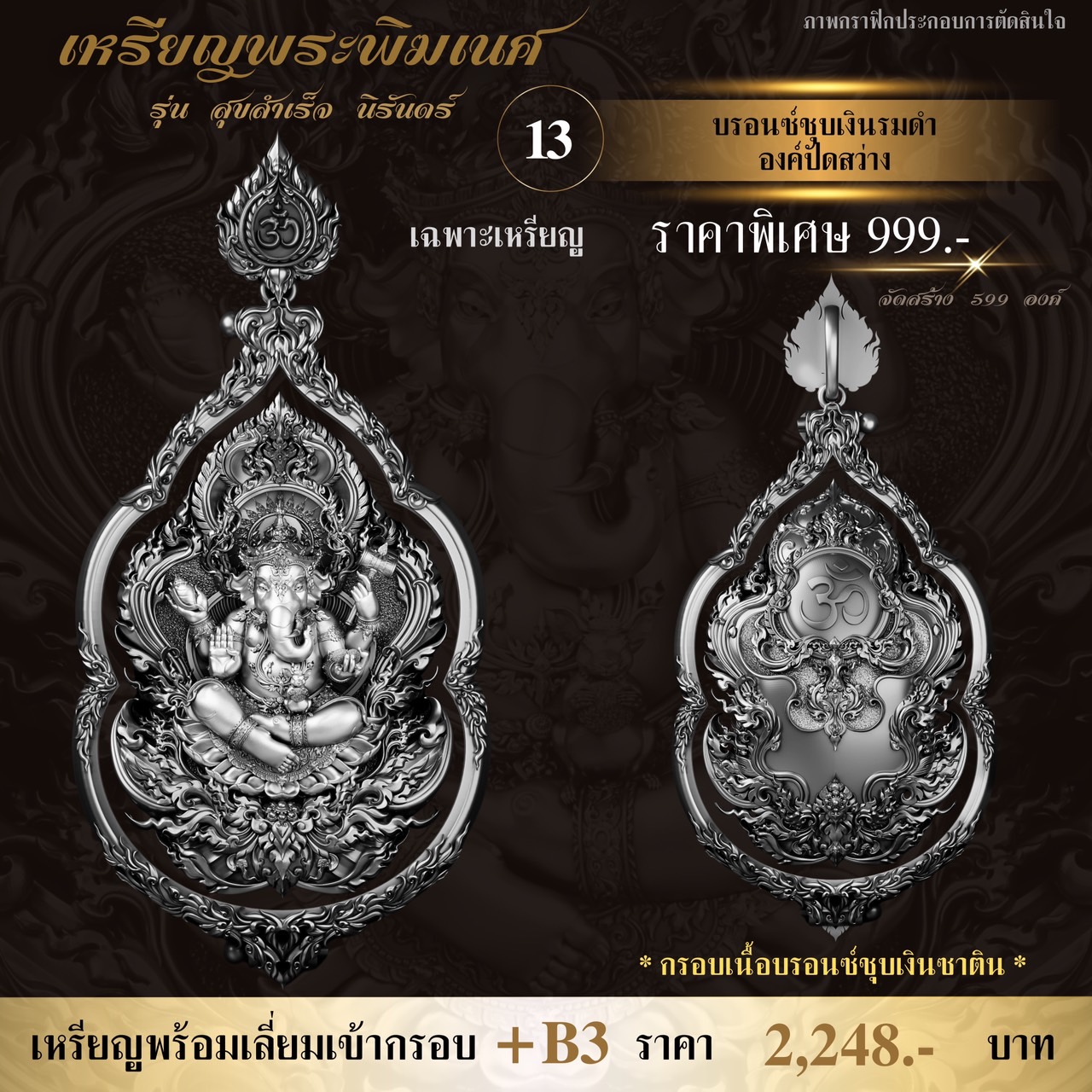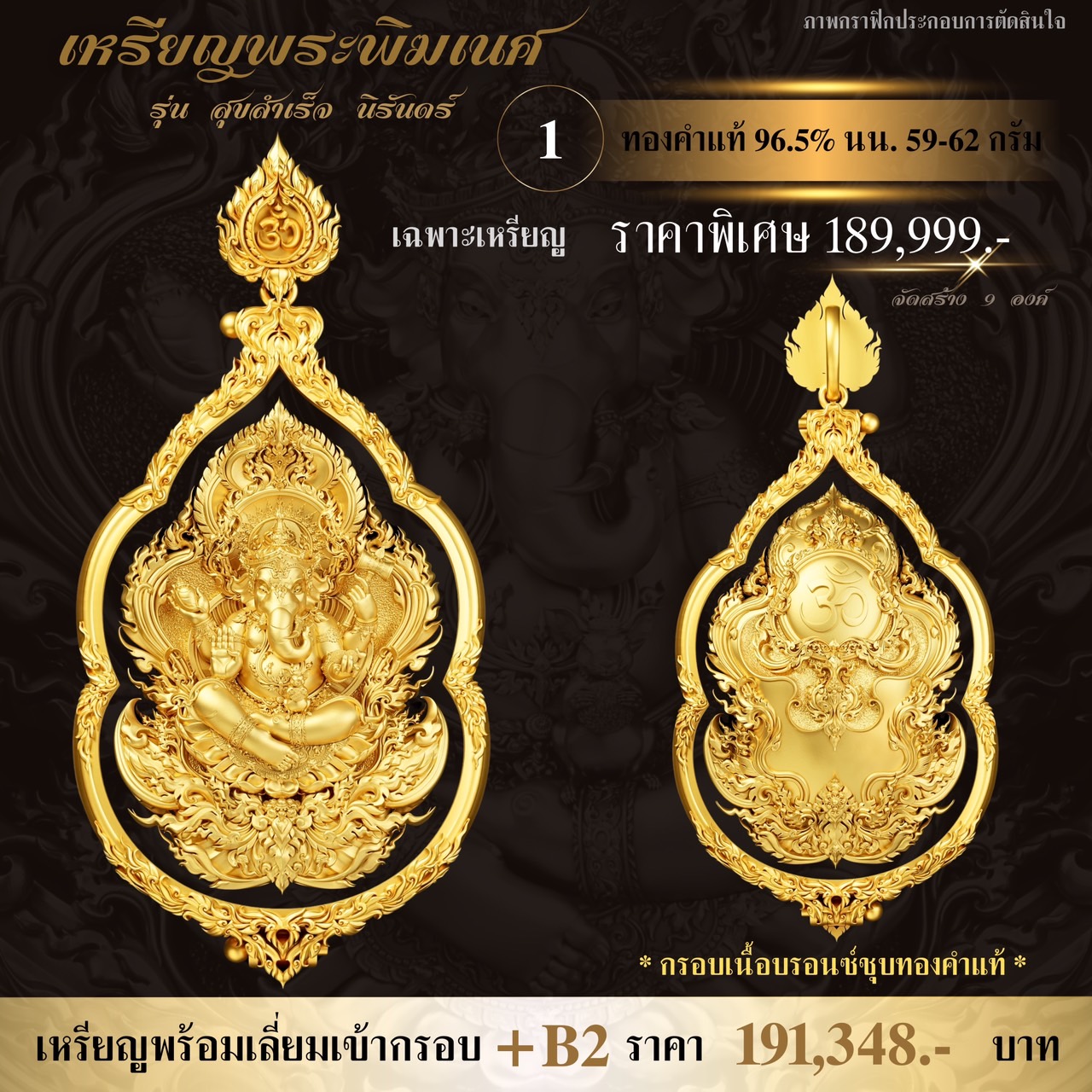 ภาพตัวอย่างเหรียญพระพิฆเนศ รุ่น สุขสำเร็จ นิรันดร์ พร้อมกรอบสุดพรีเมี่ยม ออกแบบพิเศษโดยเฉพาะเลยจ้า กำหนดรับผลงานเดือนธันวาคม-มกราคม ⭐️ออกแบบลายเส้น : อาจารย์Chatchai Phanpha ⭐️ประติมากรรม 3D : Heno mockupman ⚜️โรงหล่อ : พระรามห้า (พรีเมี่ยมคุณภาพสูง) ⚜️จัดสร้างโดย : The Gallery Art Amulet Center ขนาดสูง 4 เซนติเมตร กว้าง 2.7 เซนติเมตร ✅มีพิธีเทวาภิเษกโดยพราหมณ์ ✅มีโค้ดและหมายเลขกำกับทุกองค์ ✅มีกรอบให้เลือกจองพร้อมบริการเลี่ยมเข้ากรอบให้เรียบร้อย กำหนดรับผลงานเดือนธันวาคม-มกราคม 🔹ออกแบบลายเส้น : อาจารย์Chatchai Phanpha 🔹ประติมากรรม 3D : Heno mockupman 🔸โรงหล่อ : พระรามห้า (พรีเมี่ยมคุณภาพสูง) 🔸จัดสร้างโดย : The Gallery Art Amulet Center #ขวัญพระเครื่อง #ขวัญธานันท์พระเครื่อง