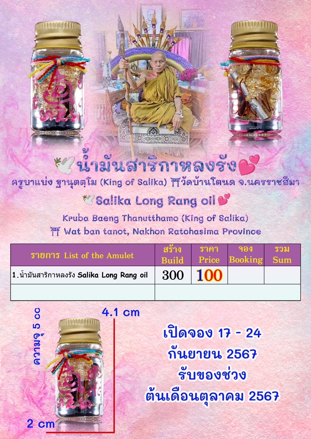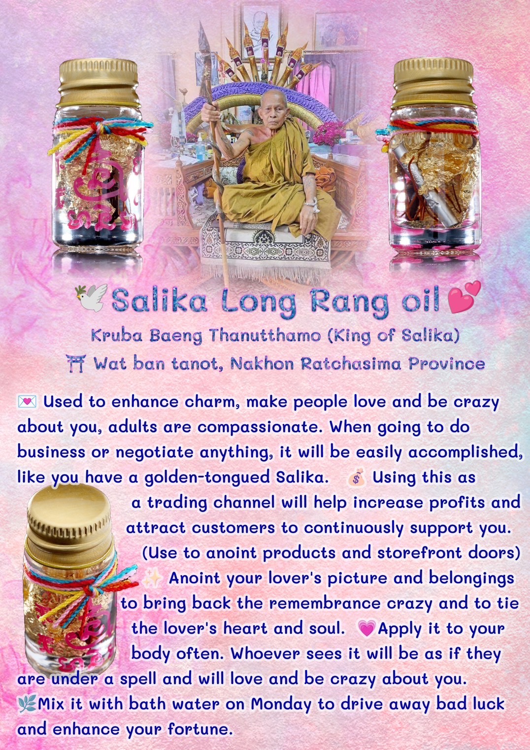 น้ำมันสาริกาหลงรัง ด้านในบรรจุตะกรุดจารมือ(มีเลขและโค้ดกำกับ) มนต์ธิเบตโบราณ , ว่านเครือสาวหลง , แผ่นทองคำเปลว เสกมนต์นะหน้าทอง 🧧เพิ่มความสิริมงคลด้วย ด้ายสายสิญจน์เสกมหามงคล ใช้เสริมเสน่ห์ ทำให้คนรัก คนหลง ผู้ใหญ่เมตตาเอ็นดู ไปติดต่องานหรือเจรจาสิ่งใดก็จะสำเร็จโดยง่าย ประหนึ่งสักสาริกาลิ้นทอง 💰ใช้ทางค้าขาย จะช่วยเสริมเพิ่มกำไร เรียกลูกค้าเข้ามาอุดหนุนไม่ขาดสาย ( ใช้เจิมสินค้า เจิมประตูหน้าร้าน) ✨เจิมรูปภาพเครื่องใช้คนรักให้คิดถึงร้อนรนใจกลับมา มัดจิต มัดใจคนรัก 🌿ใช้น้ำผสมน้ำอาบในวันจันทร์ จะขับไล่สิ่งอัปมงคลออกไป และเสริมราศีให้แก่ตัวเรา 👑ครูบาแบ่ง ฐานุตตฺโม (King of Salika) ⛩️วัดบ้านโตนด จ.นครราชสีมา #ขวัญพระเครื่อง #ขวัญธานันท์พระเครื่อง