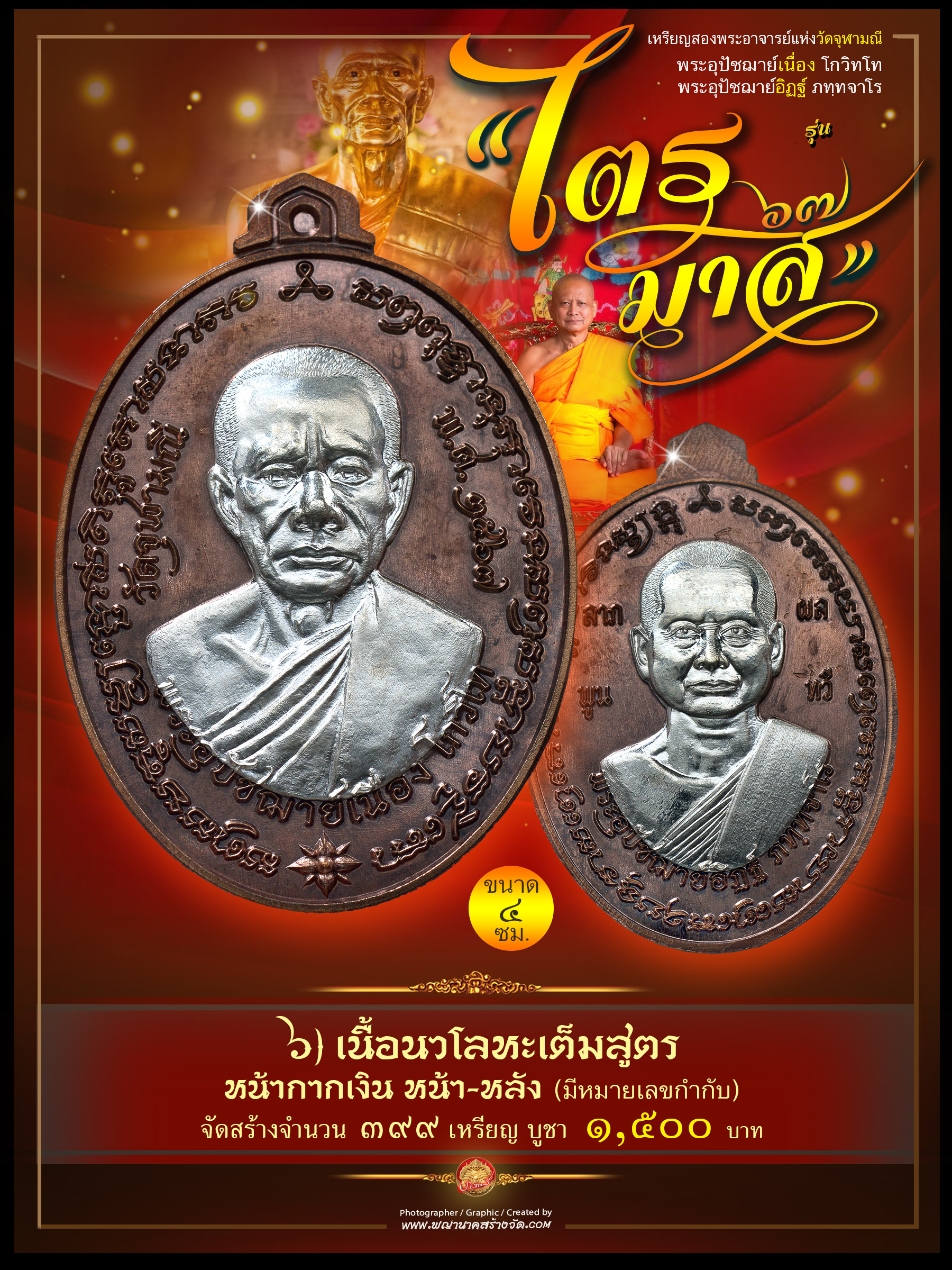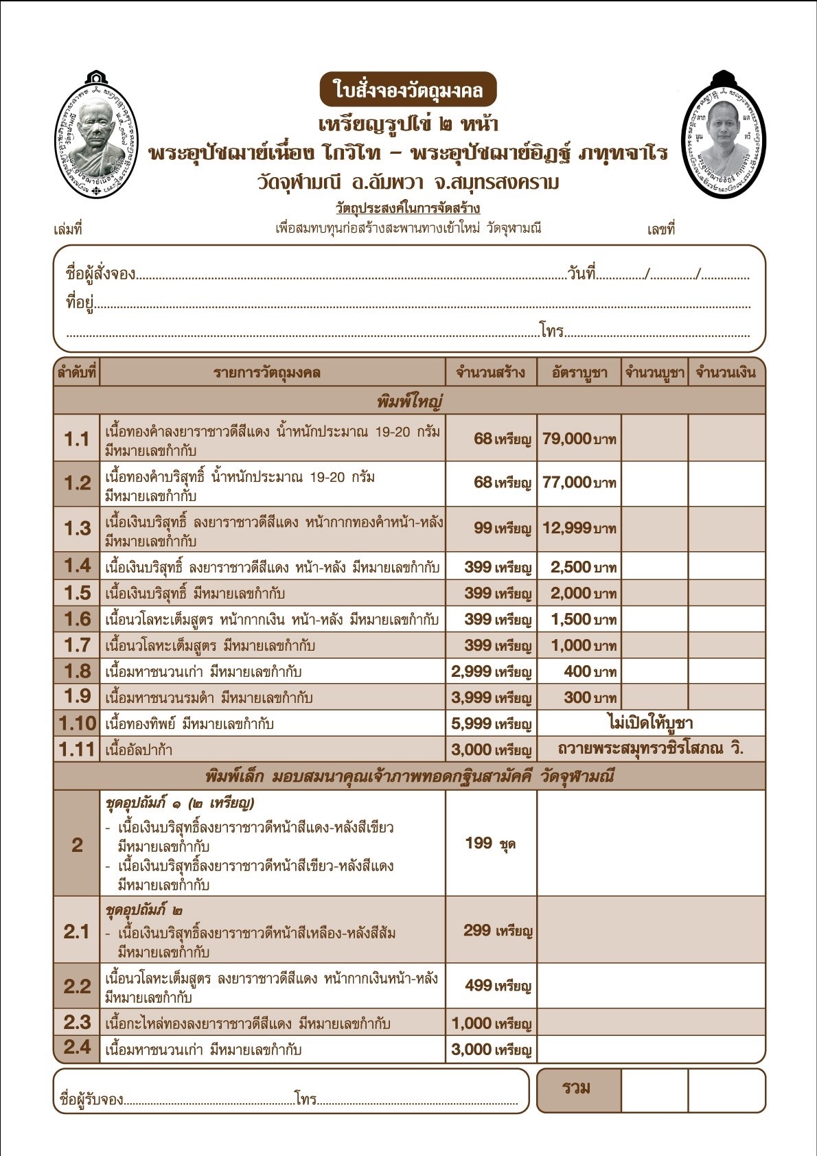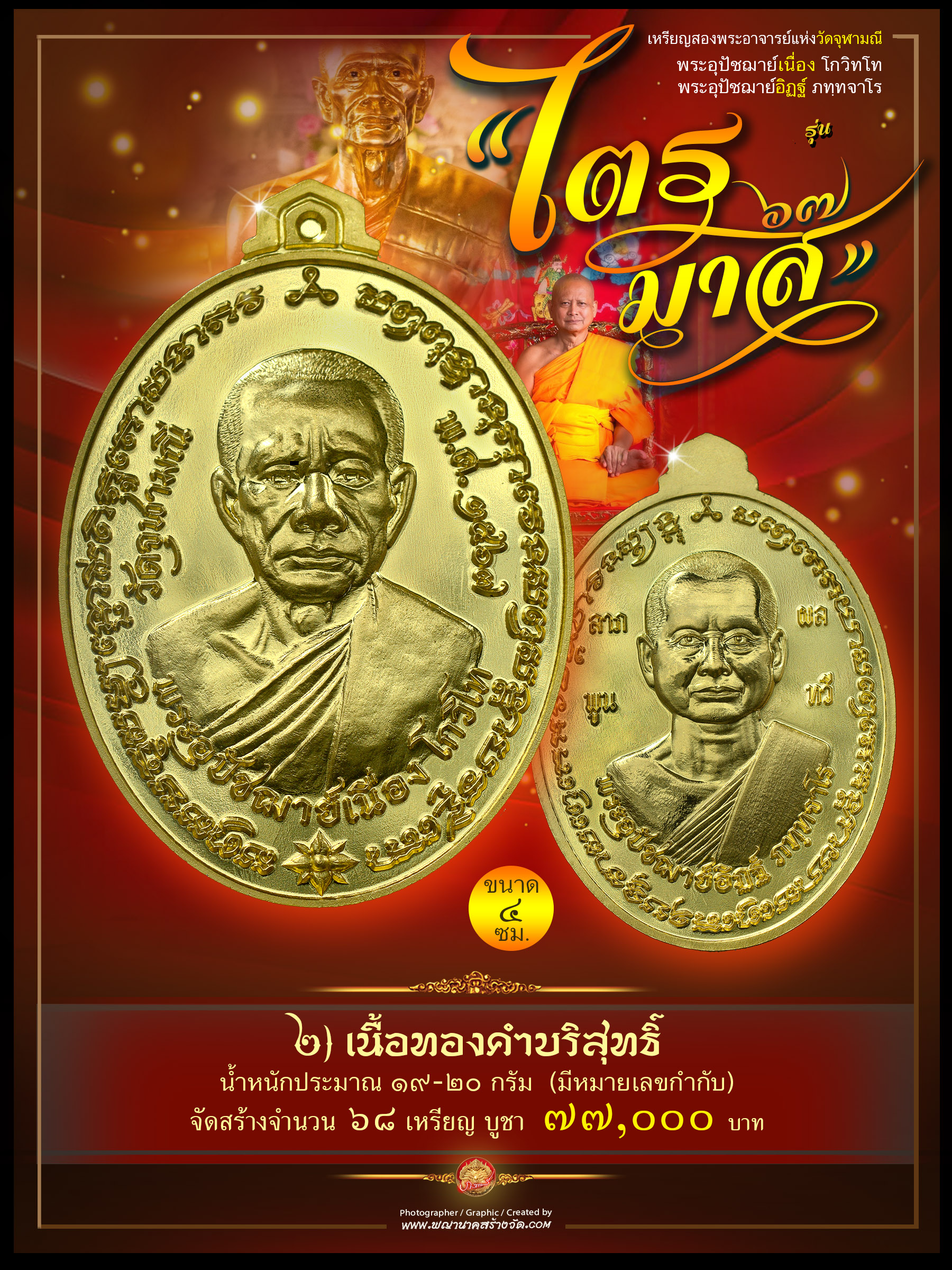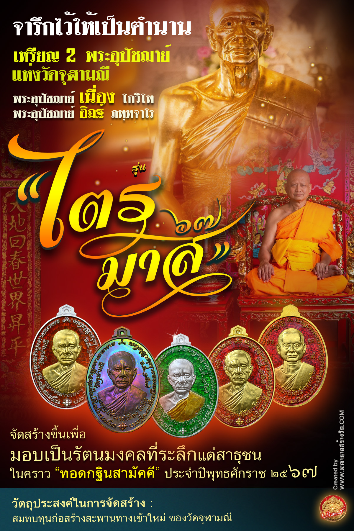 เปิดจองวันนี้ วัดจุฬามณี จารึกไว้ให้เป็นตำนาน เหรียญ ๒ พระอุปัชฌาย์ แห่งวัดจุฬามณี พระอุปัชฌาย์เนื่อง โกวิโท พระอุปัชฌาย์อิฏฐ์ ภทฺทจาโร รุ่น ไตรมาส ๖๗” จัดสร้างขึ้นเพื่อมอบเป็นรัตนมงคลที่ระลึก แด่สาธุชนในคราวทอดกฐินสามัคคี ประจำปีพุทธศักราช ๒๕๖๗ วัตถุประสงค์ สมทบทุนก่อสร้างสะพานทางเข้าใหม่ ของวัดจุฬามณี #ขวัญพระเครื่อง #ขวัญธานันท์พระเครื่อง