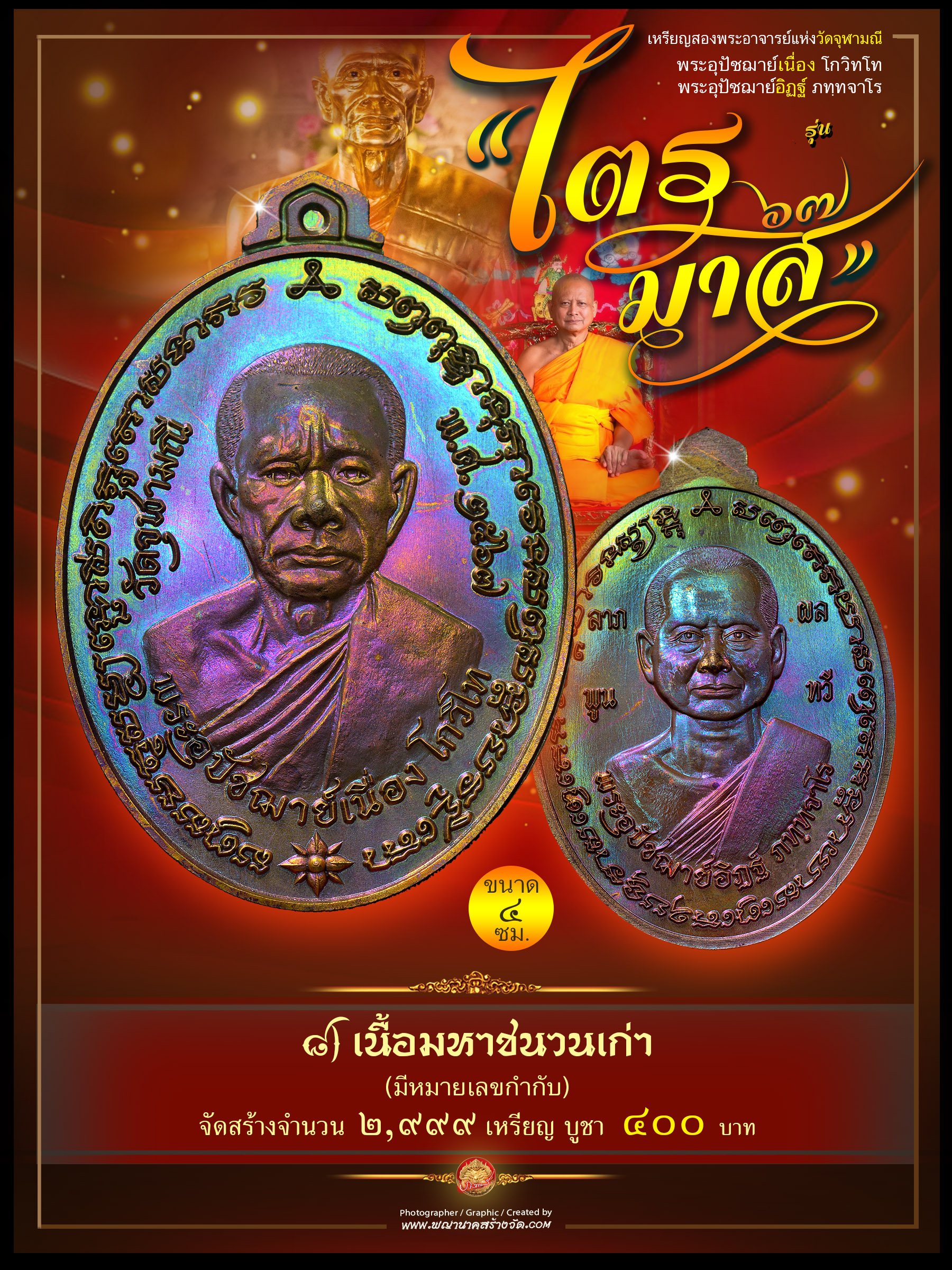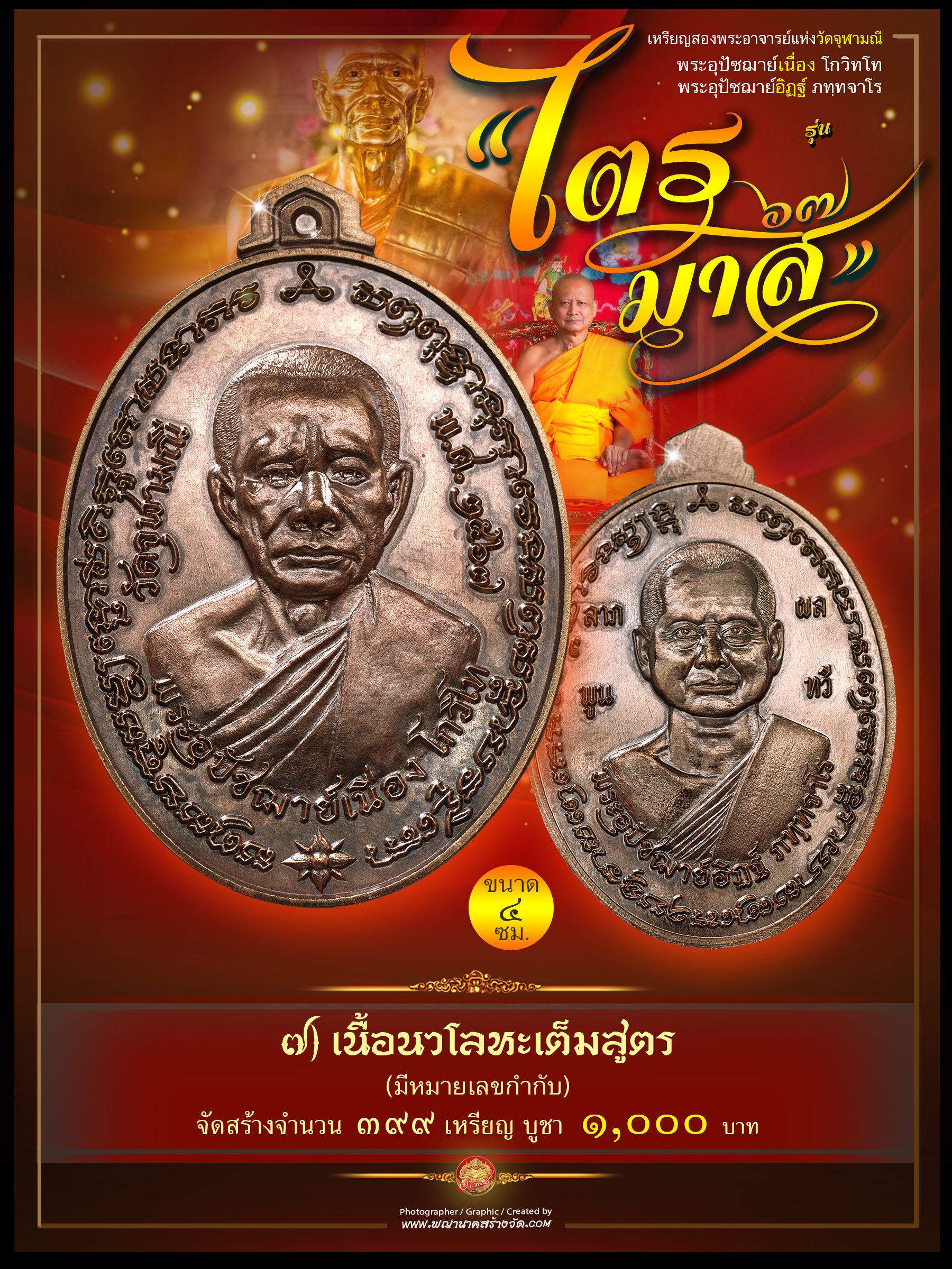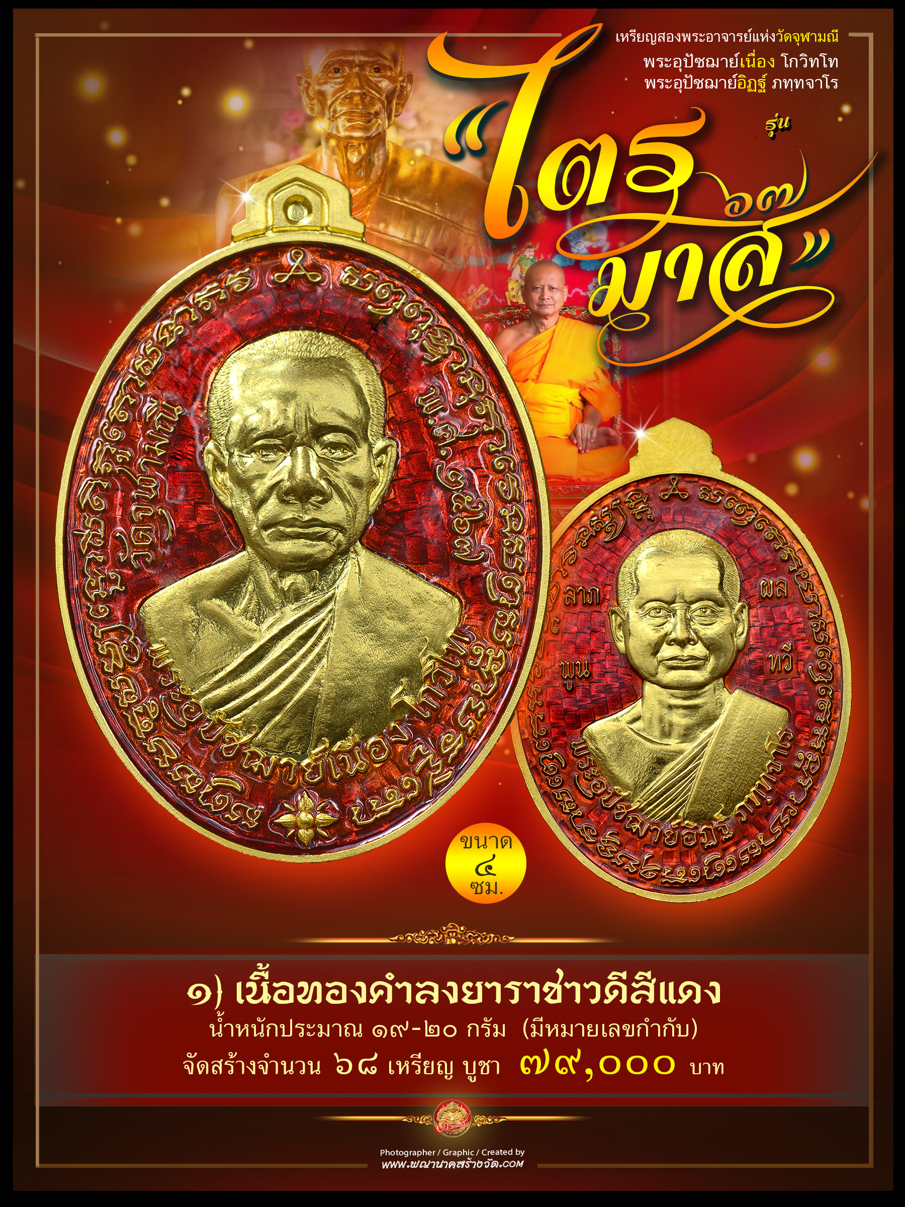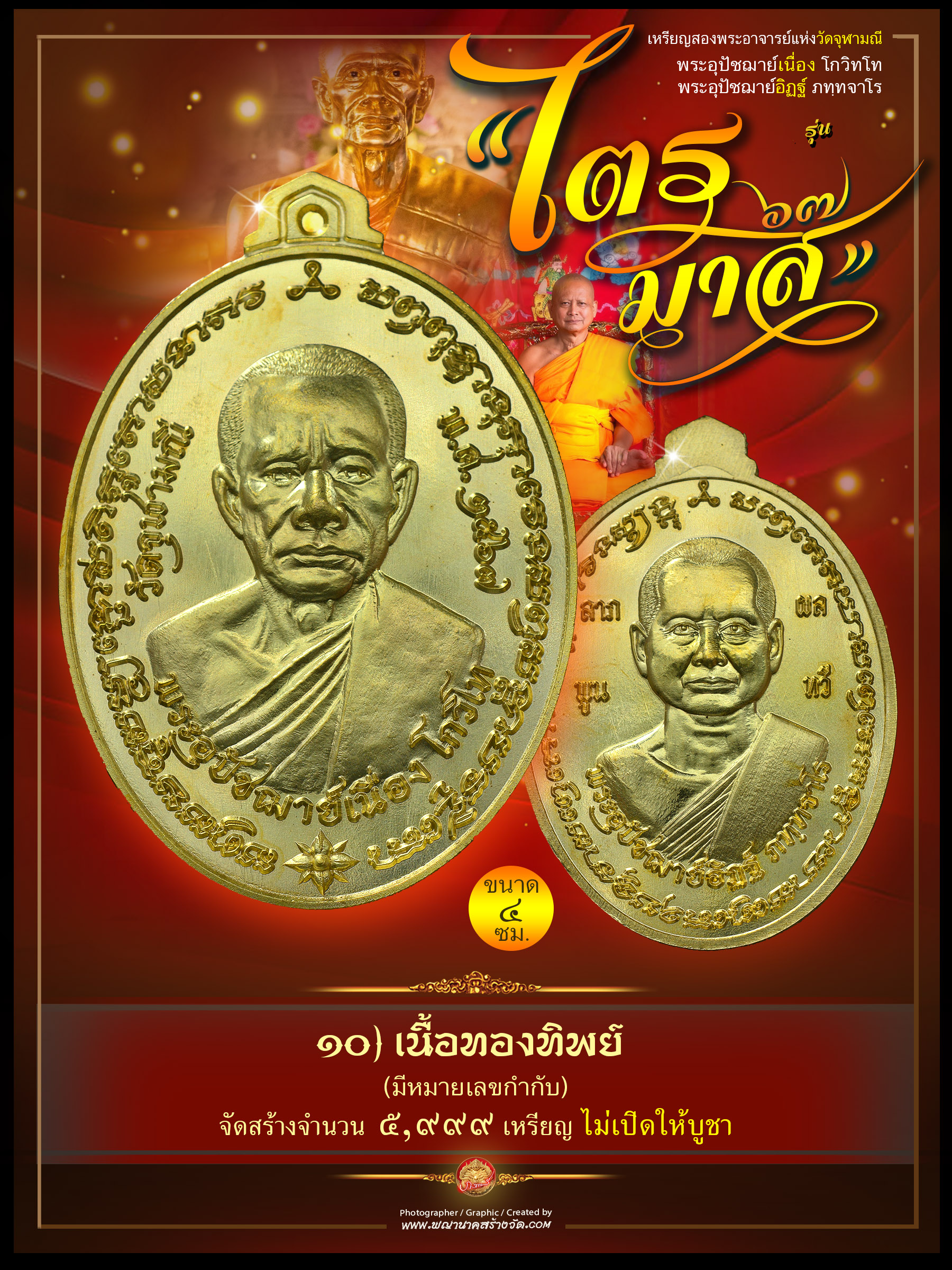 เปิดจองวันนี้ วัดจุฬามณี จารึกไว้ให้เป็นตำนาน เหรียญ ๒ พระอุปัชฌาย์ แห่งวัดจุฬามณี พระอุปัชฌาย์เนื่อง โกวิโท พระอุปัชฌาย์อิฏฐ์ ภทฺทจาโร รุ่น ไตรมาส ๖๗” จัดสร้างขึ้นเพื่อมอบเป็นรัตนมงคลที่ระลึก แด่สาธุชนในคราวทอดกฐินสามัคคี ประจำปีพุทธศักราช ๒๕๖๗ วัตถุประสงค์ สมทบทุนก่อสร้างสะพานทางเข้าใหม่ ของวัดจุฬามณี #ขวัญพระเครื่อง #ขวัญธานันท์พระเครื่อง