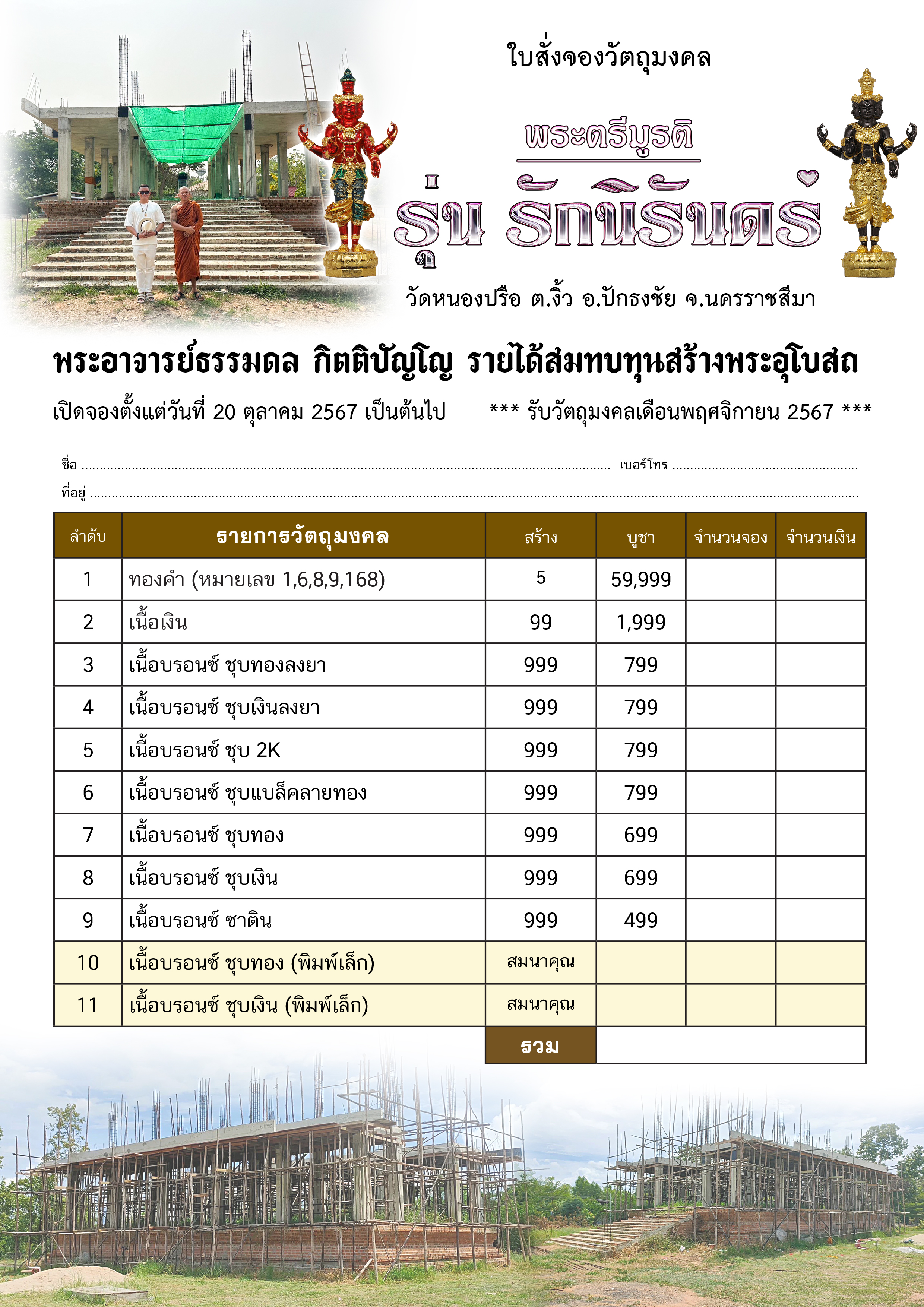พระตรีมูรติ วัดหนองปรือ ( พระอาจารย์ธรรมดล กิตติปัญฺโญ) ท่านคือ การรวมอานุภาพของมหาเทพทั้ง 3 พระองค์ ไว้ในองค์เดียวกัน ( พระพรหม พระวิษณุ พระศิวะ ) ผู้บูชาท่านจะบังเกิดความเป็นสิริมงคล และความอุดมสมบูรณ์พูนสุขขึ้นในชีวิต ทั้งนี้ชาวไทยและต่างชาติเชื่อกันว่า หากบูชา พระตรีมูรติ จะทำให้ประสบความสำเร็จ และความเจริญในชีวิต ทั้งในเรื่องของหน้าที่การงาน การเงิน สุขภาพ โชคลาภ รวมถึง เรื่อง ความรัก ที่เป็นที่รู้จักกันอย่างกว้างขวาง ผู้คนมากมายที่สมปรารถนา จากการขอพรเรื่องความรัก จากท่าน ในวันที่ 24 ตุลาคม 2567 นี้ ทางวัดหนองปรือ อ.ปักธงชัย จ.นครราชสีมา ได้จัดพิธี พุทธาภิเษก และได้นำพระตรีมูรติ เข้าพิธีปลุกเสกด้วย โดยมีพระเกจิฯ คณาจารย์ที่มีชื่อเสียงหลายท่าน มาในพิธี อธิษฐานจิตปลุกเสก จึงเป็นการยืนยันว่าพระตรีมูรติของวัดหนองปรือ จะมีความศักดิ์สิทธิ์คู่ควรกับการบูชาไว้ติดตัว ติดบ้านเรือนเอาไว้ เพื่อความเป็นสิริมงคลแก่ตัวเองและครอบครัว และเพื่อความสมปรารถนาในโชคลาภ เงินทอง ความรัก ความสมหวัง ทุกประการ #ขวัญพระเครื่อง #ขวัญธานันท์พระเครื่อง