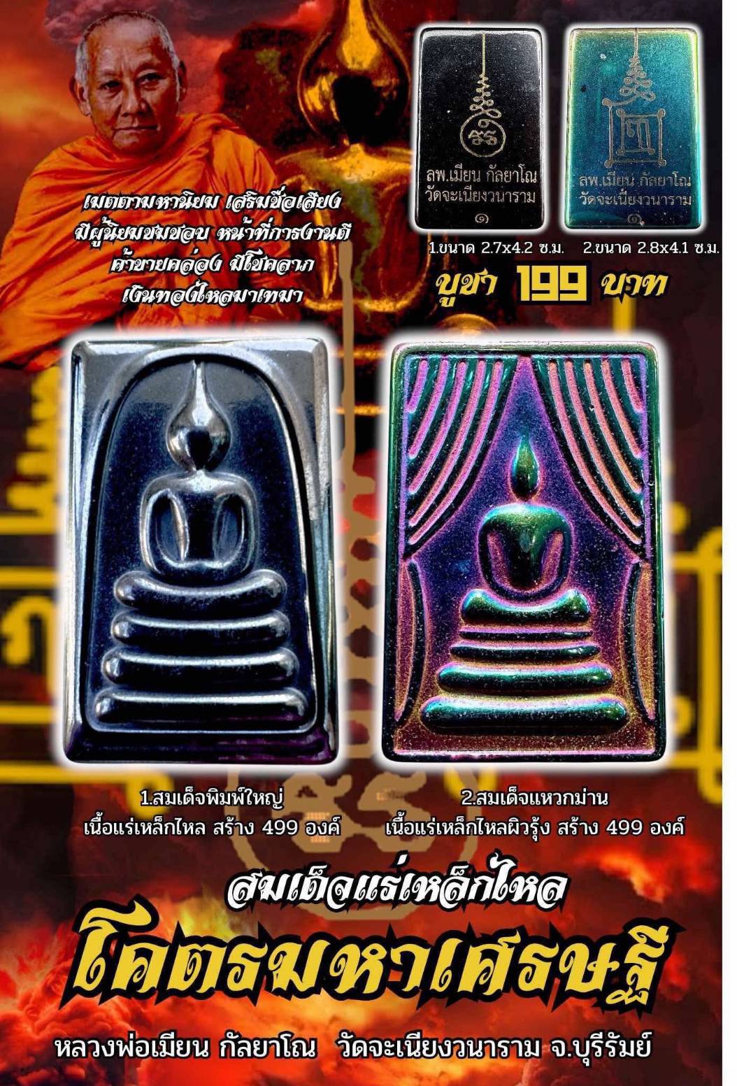 เปิดจอง สมเด็จแร่เหล็กไหล รุ่น โคตรมหาเศรษฐี หลวงพ่อเมียน กัลยาโณ มีรายการดังนี้ รายการที่1 สมเด็จ พิมพ์ใหญ่ แร่เหล็กไหล ราคาจอง 199 บาท ขนาด 2.7 x 4.2 ซม. รายการที่2 สมเด็จแหวกม่าน แร่เหล็กไหลผิวรุ้ง ราคาจอง 199 บาท ขนาด 2.8 x 4.1 ซม. จัดสร้างอย่างละ 499 องค์ เนื้อแร่เหล็กไหล รับพระเดือนกุมภาพันธ์ มีเลขโค้ดกำกับทุกองค์ วัตถุประสงค์:ร่วมพัฒนาวัดจะเนียงวนาราม จ.บุรีรัมย์ #ขวัญพระเครื่อง #ขวัญธานันท์พระเครื่อง