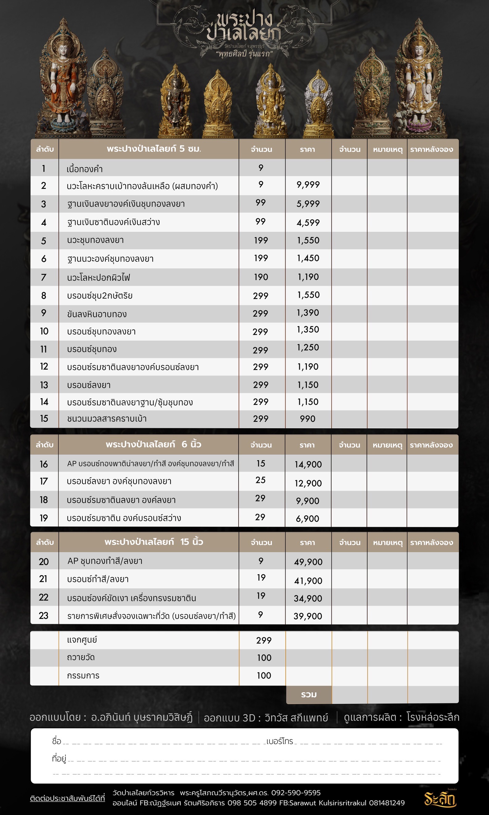 พระปางป่าเลไลยก์ พุทธศิลป์ รุ่นแรก วัดป่าเลไลยก์วรวิหาร จ.สุพรรณบุรี ปางวัดป่าเลไลยก์ หรือที่เรียกว่า ปางป่าเลไลยก์ เป็นพระพุทธรูปปางหนึ่งที่เกี่ยวข้องกับเรื่องราวในพุทธประวัติ และเหมาะสำหรับผู้ที่เกิด วันพุธกลางคืน (ช่วงเวลา 18:00 - 06:00 น. ของเช้าวันถัดไป) ลักษณะของพระพุทธรูปปางป่าเลไลยก์ • พระพุทธรูปอยู่ใน อิริยาบถประทับนั่ง (นั่งห้อยพระบาท) บนแท่นศิลา • มี ช้าง และ ลิง อยู่ด้านข้าง: • ช้าง กำลังถวายน้ำด้วยงวง • ลิง กำลังถวายรวงผึ้ง ความหมายและพุทธประวัติ 1. ที่มาของปางป่าเลไลยก์: • ปางนี้เกี่ยวข้องกับเหตุการณ์ที่พระพุทธเจ้าประทับอยู่ในป่าหิมพานต์ เพื่อหลีกเลี่ยงความขัดแย้งระหว่างพระภิกษุสงฆ์สองฝ่าย • ในช่วงที่ประทับอยู่ในป่า มี ช้างปาลิไลยก์กะ คอยถวายน้ำ และ ลิง ถวายรวงผึ้งเป็นอาหารเพื่อแสดงความเคารพ 2. ความหมาย: • เป็นปางที่แสดงถึง ความสงบสุข และ ความเมตตา ของพระพุทธเจ้า • ช้างและลิงเป็นตัวแทนของความบริสุทธิ์ใจ และความตั้งใจดีในการถวายอาหารแด่พระพุทธเจ้า พุทธาภิเษก ณ วัดป่าเลไลยก์ จ.สุพรรณบุรี ออกแบบ โดย อ.อภินันท์ ปฏิมากร 3D โดย วิทวัส สกีแพทย์ ควบคุมการผลิต โดย โรงหล่อระลึก #ขวัญพระเครื่อง #ขวัญธานันท์พระเครื่อง