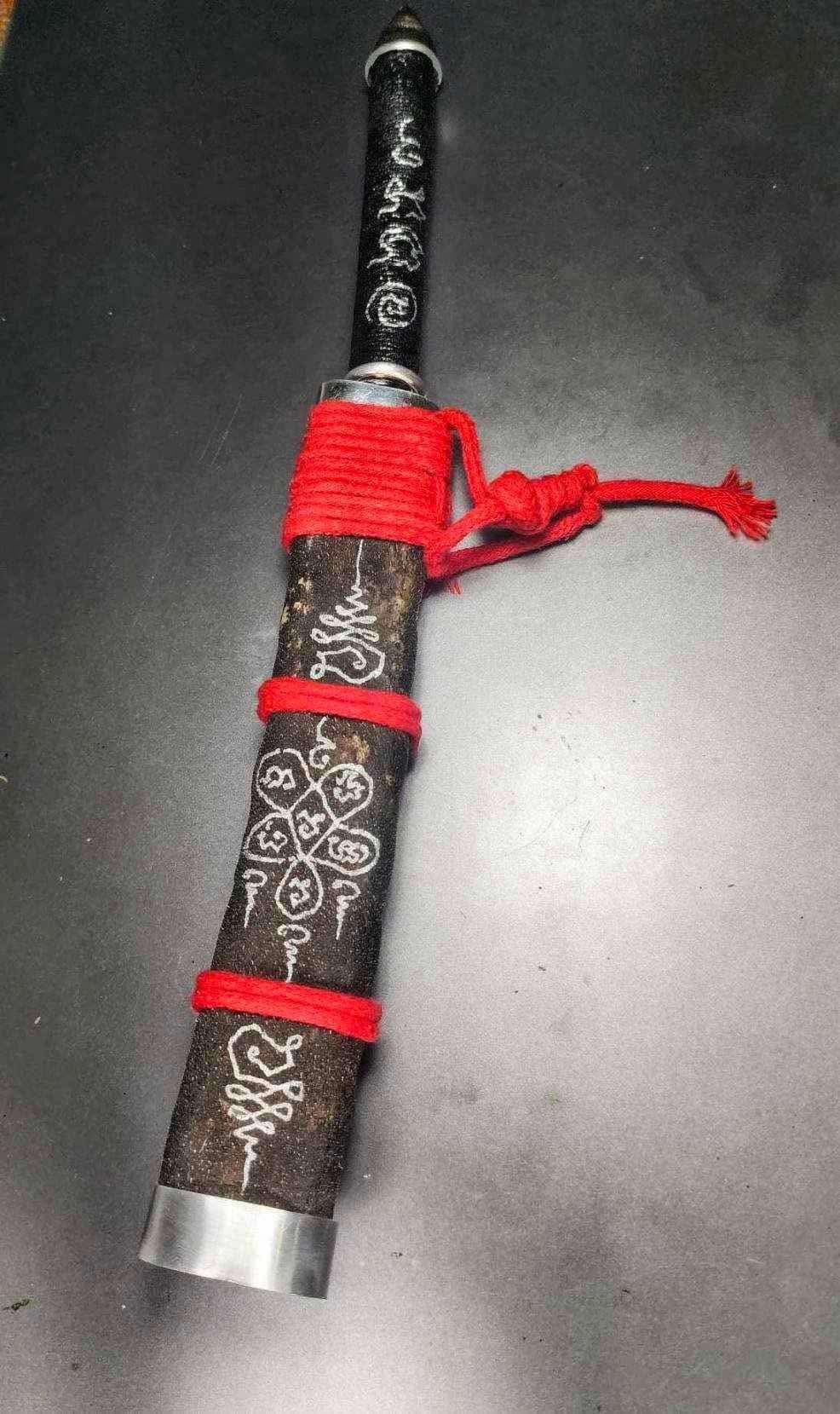 ดาบดำอาคม หนังปะกำช้าง รุ่นแรก หลวงพ่อเมียน กัลยาโณ วัดบ้านจะเนียง ขนาดรวมด้าม 10 นิ้ว ราคาจอง 450 บาท จองครบ 20 เล่มแถมรายการพิเศษ 1 เล่ม 1.ป้องกันภูตผี อำนาจมนต์ดำ เมื่อยามพกติดตัว ไม่ต้องเกรงกลัว อำนาจมืดใดๆทั้งสิ้น 2.เป็นมหาอำนาจเป็นเมตตา แคล้วคลาดจากอุบัติเหตุเภทภัย คงกระพันชาตรี ปกป้องรักษาตัวจากศัตรูหมู่คนพาล 3.ขับภูตผีปีศาจที่เข้าสิงคน ปลุกเสกเดือนกุมภาพันธ์ #ขวัญพระเครื่อง #ขวัญธานันท์พระเครื่อง