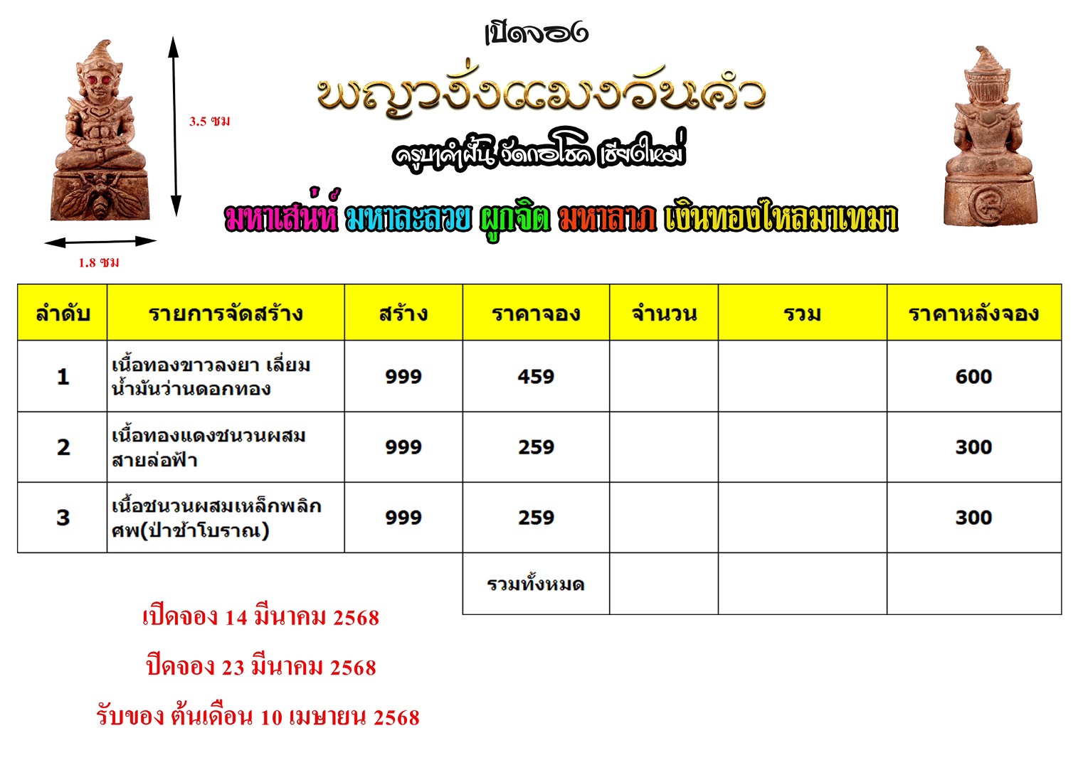 พญางั่งแมงวันคำ ครูบาคำฝั้น วัดกอโชค จ.เชียงใหม่ รายการที่ 3 เนื้อชนวนผสมเหล็กพลิกศพ ด้านล่างอุดด้วยว่านยามหาเสน่ห์ พลอยเสกด้านโภคทรัพย์ สายสิญจน์จูงศพ(จอมเจ้าชู้ ) มวลสารอาถรรย์ได้ทำการพลีอย่างถูกต้องไม่มีโทษมีแต่คุณ ใช้เป็นเพียงเสริมธาตุในการปลุกเสกให่เร็วและแรง งั่งสายล้านนาเป็นงั่งที่มีคุณทางเสน่ห์เมตตามหานิยม มหาลาภ มหาโภคทรัพย์ไม่แพ้งั่งสายเขมรเลยทีเดียว ยิ่งเรื่องเสน่หา เพศตรงข้ามแล้วสายล้านนาไม่แพ้ใครแน่นอนปลุกเสกตามวิชาให้เกิดคุณทางเสน่ห์ มหานิยม ดึงดุดเพศตรงข้ามให่มาสนใจ เป็นที่ต้องตาต้องใจ ติดต่อการงาน บันดาลโชคลาภให้แก่ผู้บูชาศรัทธา ฐานด้านหน้าเป็นแมงวันคำเป็นวิชามหาเสน่ห์ ขั้นสูงรุนแรง ด้านเมตตามหาเสน่ห์ ผู้ใดที่บูชาไว้ จะมีเสน่ห์ต่อเพศตรงข้าม และเพศเดียวกัน จะใช้ทางเสน่หาราคะ หรือด้านเมตตาค้าขายก็ได้ ดึงดูดคนให้มาซื้อของหรือเจรจาเป็นผลสำเร็จ มีเสน่ห์ให้คนรัก คนหลง เพิ่มเสน่ห์แก่ตนเอง มีเสน่ห์กว่าคนปกติ ไปไหนมีแต่คนนิยมชมชอบ ไม่ว่าจะจีบสาว จีบหนุ่ม หรือให้สามีรักสามีหลง คนที่ต้องติดต่อธุรกิจการงานเจรจาค้าขาย งานเข้าสังคม งานพบปะผู้คน นักขาย นักธุรกิจ นักแสดง พิธีกร ศิลปิน นางแบบ และคนกลางคืน หรือ นักท่องราตรีไม่ว่าเพศไหน วัยไหนก็สามารถพกพาได้ ไม่จำกัด เพศวัย ฐานด้านหลังเป็น "นะร่ำไร" มีคุณ เป็นมหานิยม เป็นที่เสน่หา เป็นมหาอาวรณ์อย่างที่สุด มิรู้ลืมเลือน จะจากไปก็คิดถึง พร่ำเพ้อหาทุกค่ำเช้า ตรึงตราตรึงใจ สุดพรรณนา หลับตาเป็นเห็นหน้า นอนเป็นฝันถึง ตามตำราโบราณจารย์กล่าวถึงอิทธิคุณไว้ #ขวัญพระเครื่อง #ขวัญธานันท์พระเครื่อง