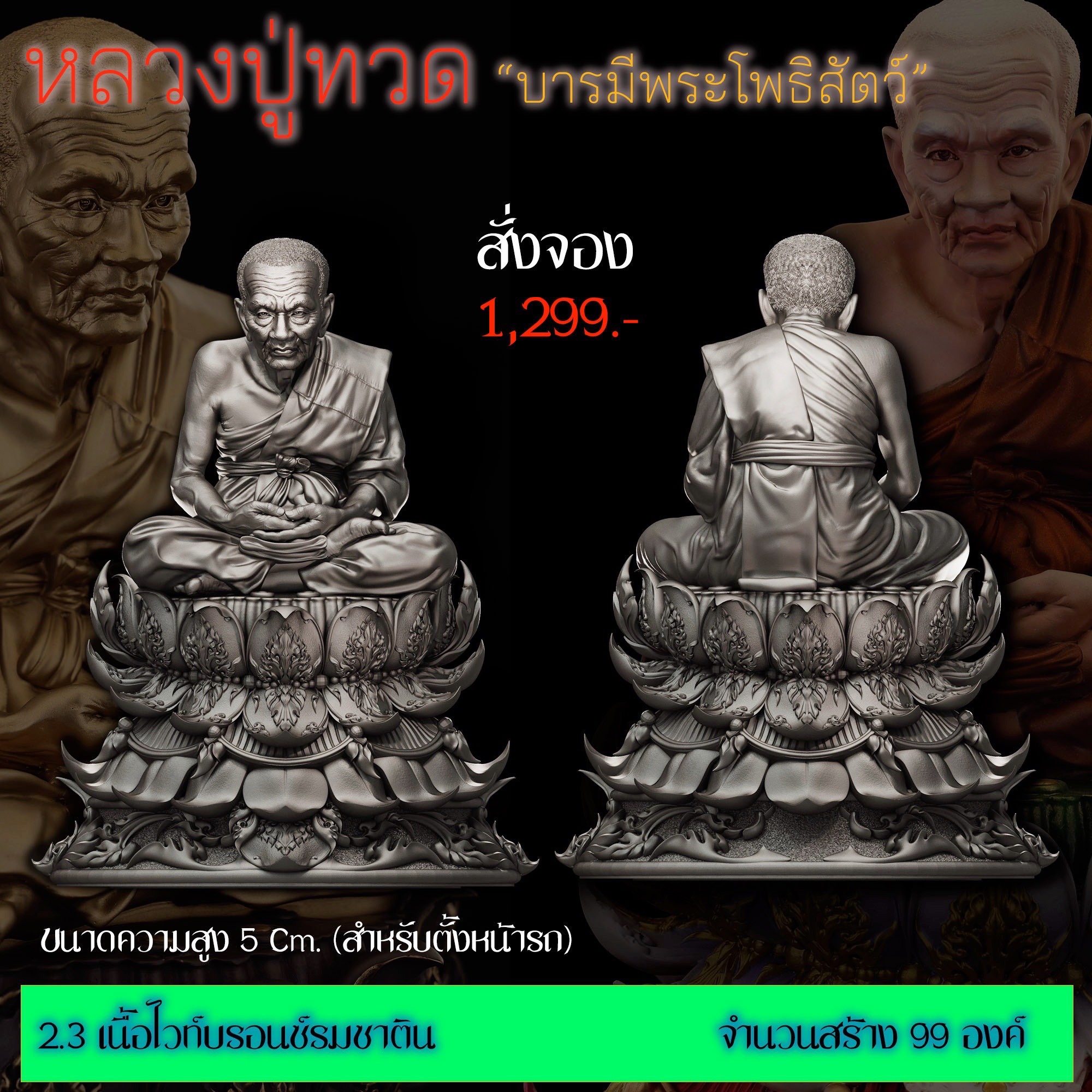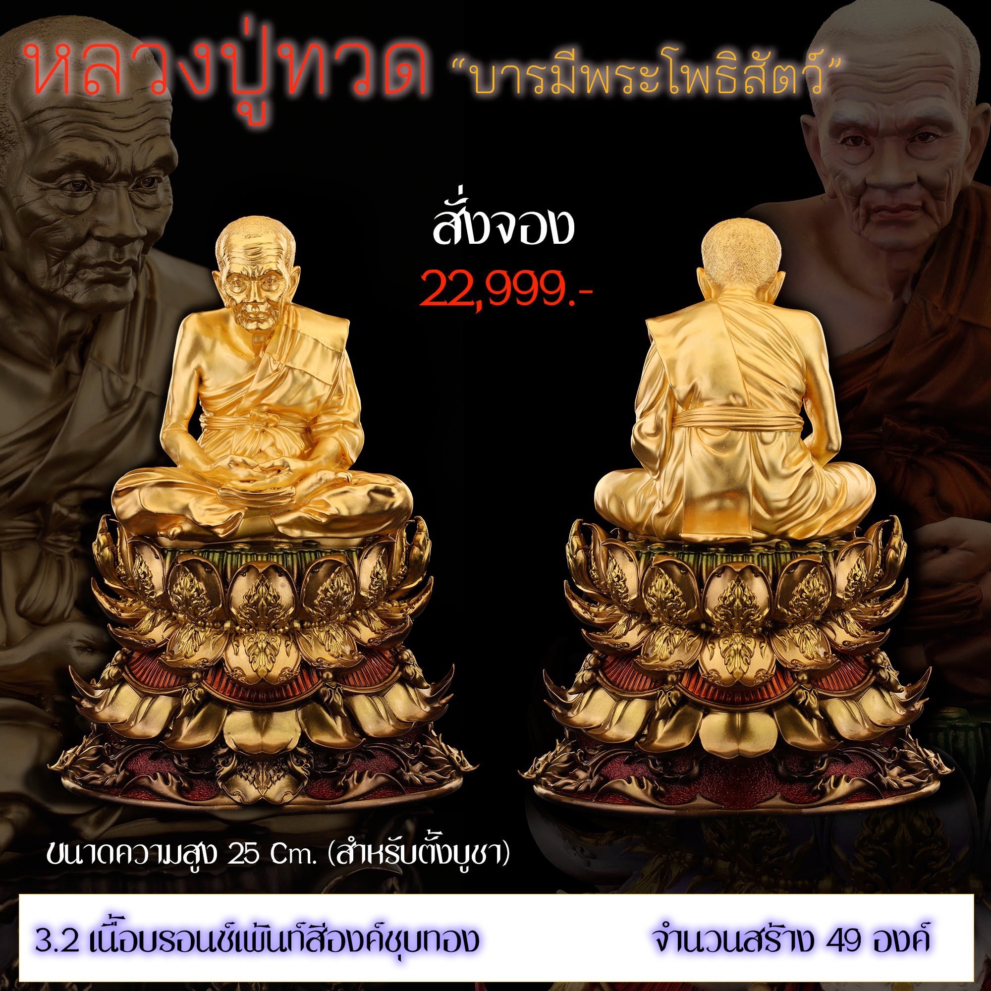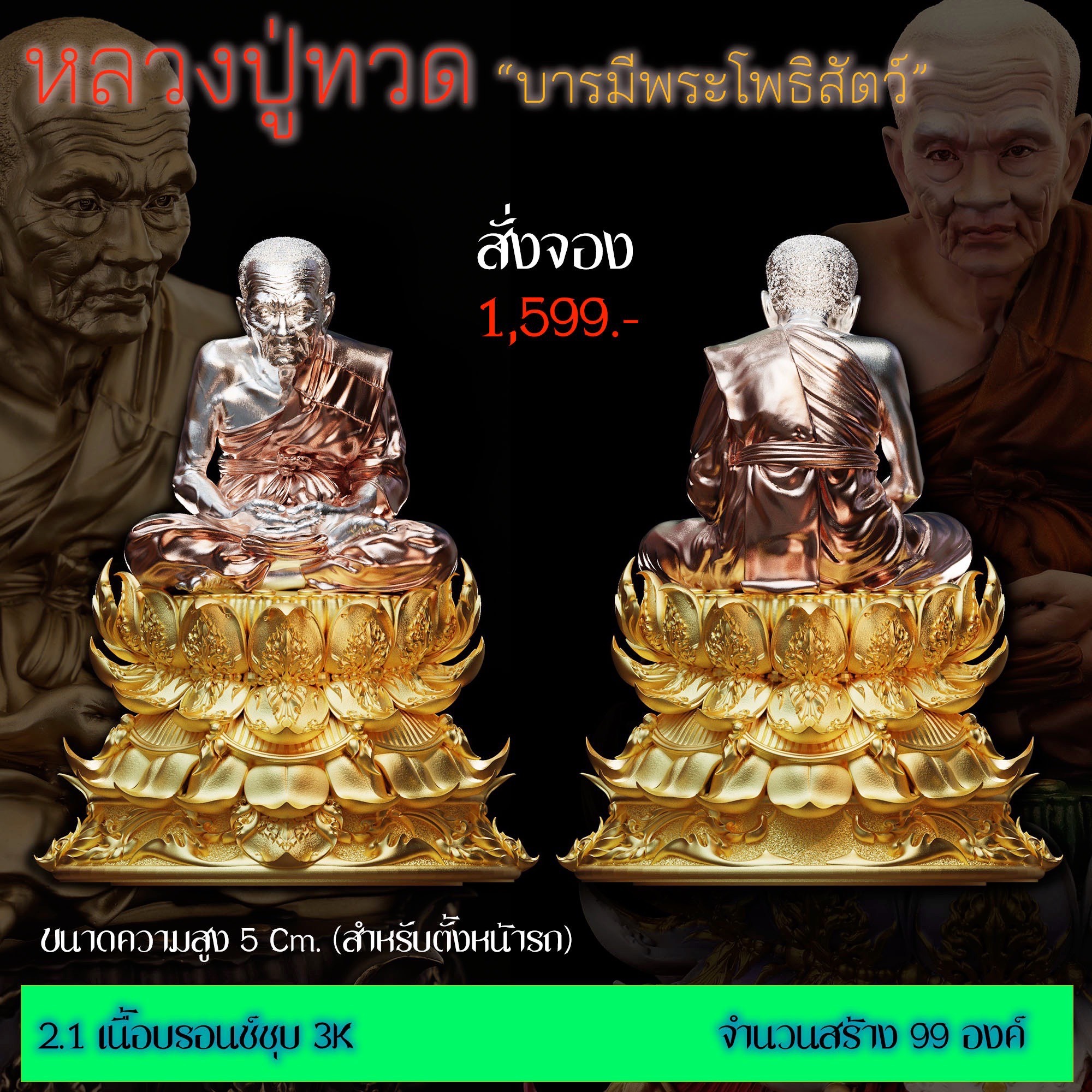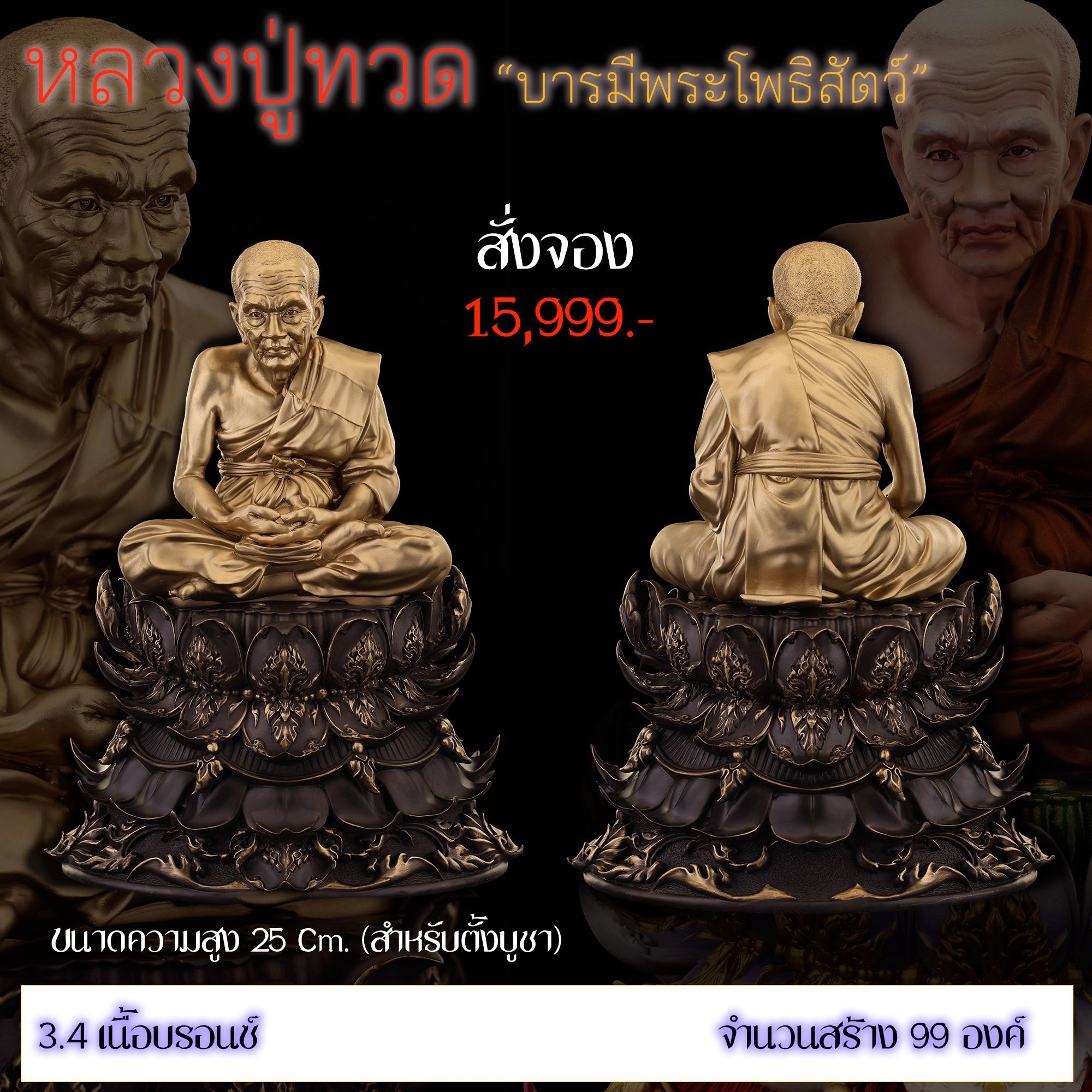 รายละเอียดการสั่งจองผลงาน หลวงปู่ทวด บารมีพระโพธิสัตว์ (รูปและราคาในคอมเมนต์) ขนาดสูง 3.2 Cm. (สำหรับพกพาเป็นจี้สวมใส่) ขนาดสูง 5 Cm. (สำหรับตั้งบูชา หรือตั้งหน้ารถ) ขนาดสูง 25 Cm. (สำหรับตั้งบูชา) ออกแบบลายเส้น : อ.ฉัตรชัย แผ่นผา ประติมากร 3D : ฮีโน่ หล่อด้วยโลหะ : Bronze หล่อโดย : Premium casting jewelry co.,ltd จัดสร้างโดย : พุทธศิลป์สร้างวัด กำหนดรับผลงานพุทธศิลป์ประมาณเดือนปลายเดือนกันยายน 2568 เป็นผลงานพุทธศิลป์ มีพิธีพุทธาภิเษกก่อนส่งมอบผลงาน รายการที่3.3 เนื้อบรอนซ์ซาตินลงยาจีวร ขนาดสูง 25 Cm. (สำหรับตั้งบูชา) ราคาสั่งจอง 16,999.- รายการที่3.4 เนื้อบรอนซ์ ขนาดสูง 25 Cm. (สำหรับตั้งบูชา) ราคาสั่งจอง 15,999.-