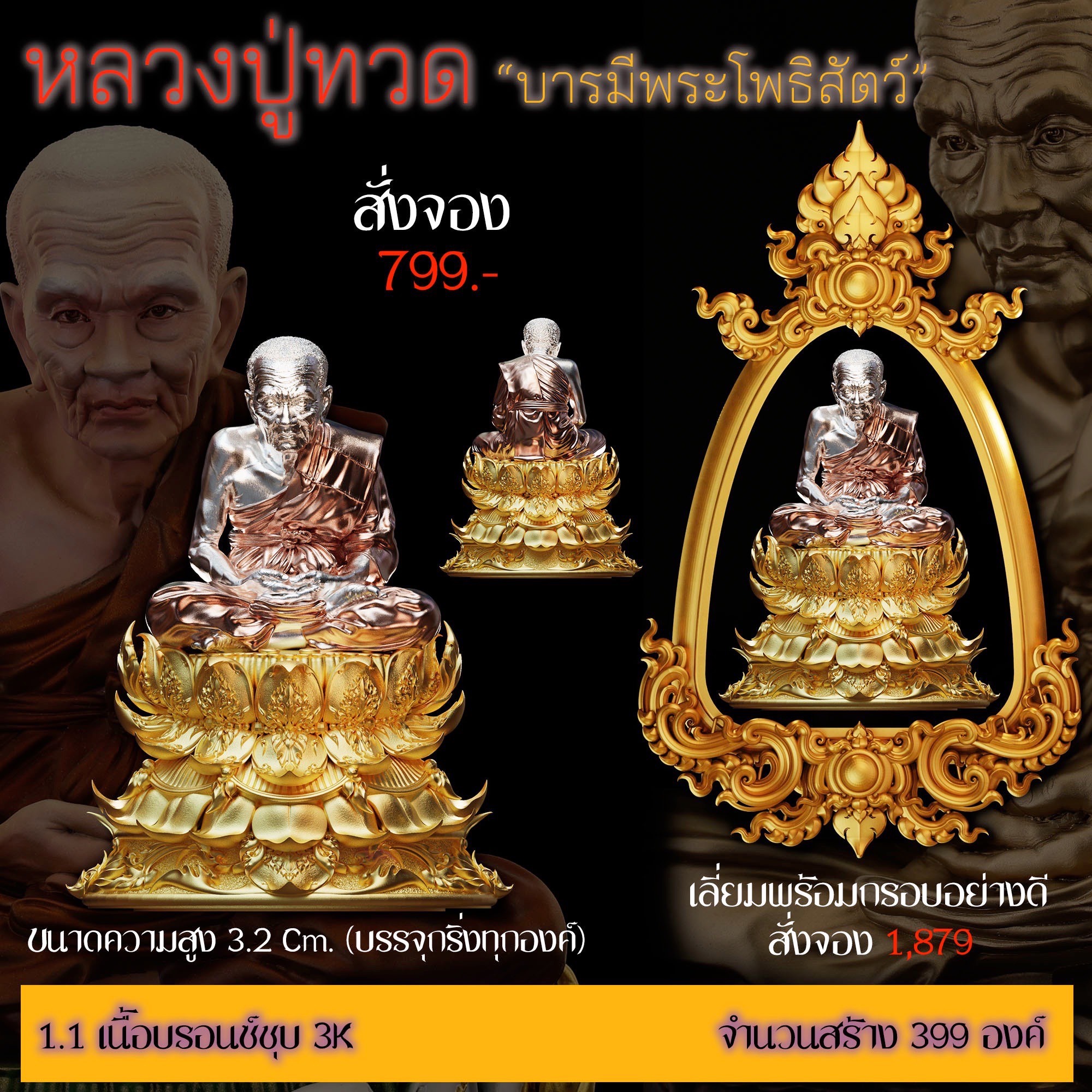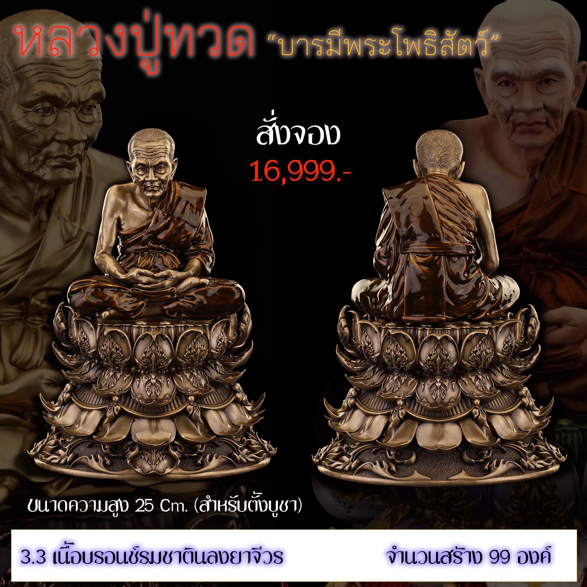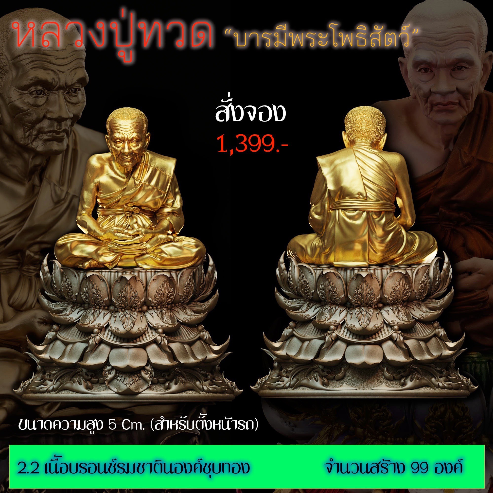 รายละเอียดการสั่งจองผลงาน หลวงปู่ทวด บารมีพระโพธิสัตว์ (รูปและราคาในคอมเมนต์) ขนาดสูง 3.2 Cm. (สำหรับพกพาเป็นจี้สวมใส่) ขนาดสูง 5 Cm. (สำหรับตั้งบูชา หรือตั้งหน้ารถ) ขนาดสูง 25 Cm. (สำหรับตั้งบูชา) ออกแบบลายเส้น : อ.ฉัตรชัย แผ่นผา ประติมากร 3D : ฮีโน่ หล่อด้วยโลหะ : Bronze หล่อโดย : Premium casting jewelry co.,ltd จัดสร้างโดย : พุทธศิลป์สร้างวัด กำหนดรับผลงานพุทธศิลป์ประมาณเดือนปลายเดือนกันยายน 2568 เป็นผลงานพุทธศิลป์ มีพิธีพุทธาภิเษกก่อนส่งมอบผลงาน รายการที่3.3 เนื้อบรอนซ์ซาตินลงยาจีวร ขนาดสูง 25 Cm. (สำหรับตั้งบูชา) ราคาสั่งจอง 16,999.- รายการที่3.4 เนื้อบรอนซ์ ขนาดสูง 25 Cm. (สำหรับตั้งบูชา) ราคาสั่งจอง 15,999.-
