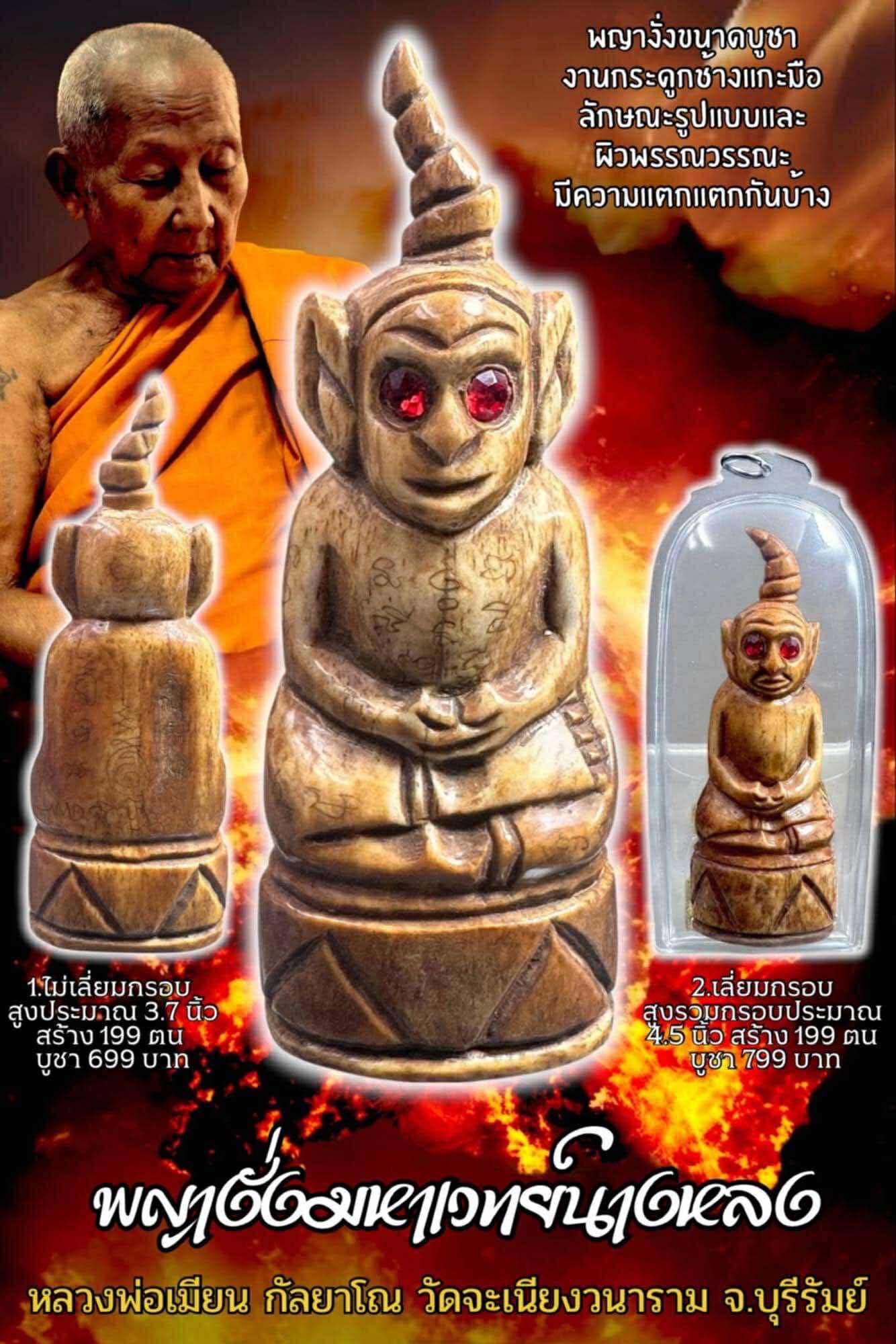 หลวงพ่อเมียน วัดบ้านจะเนียงวนาราม พญางั่งมหาเวทย์นางหลง มีรายการดังนี้ รายการที่1 ไม่เลี่ยมกรอบ สูงประมาณ 3.7 นิ้ว สร้าง199ตน ราคาจอง 699 บาท รายการที่2 เลี่ยมกรอบ สูงประมาณ 4.5 นิ้ว สร้าง 199 ตน ราคาจอง 799 บาท งานแกะมือกระดูกช้าง รับพระกค. มีเลขโค้ดกำกับทุกองค์ วัตถุประสงค์:ร่วมพัฒนาวัดจะเนียงวนาราม จ.บุรีรัมย์ #ขวัญพระเครื่อง #ขวัญธานันท์พระเครื่อง