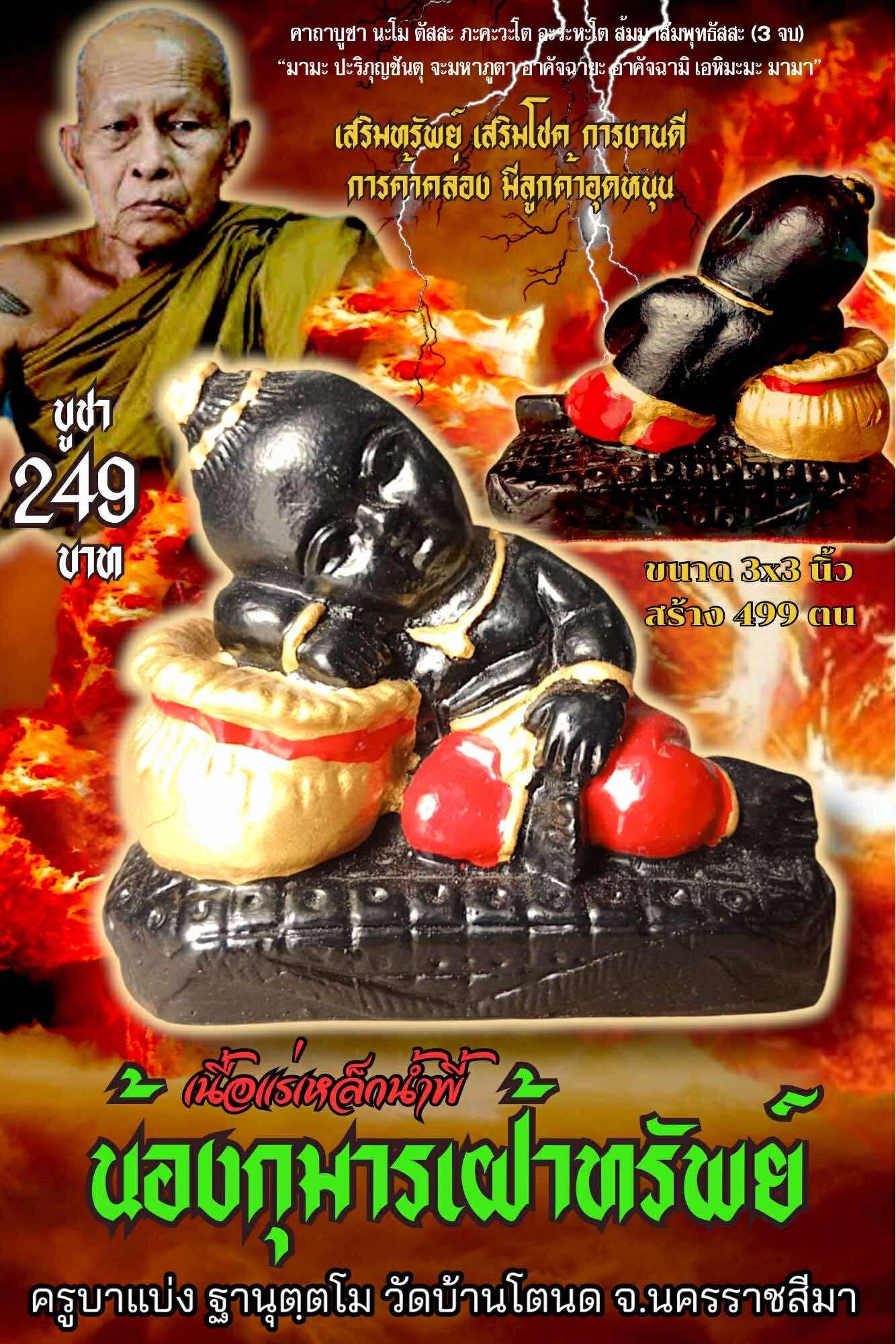 ครูบาแบ่ง วัดบ้านโตนด น้องกุมารเฝ้าทรัพย์ เนื้อแร่เหล็กน้ำพี้ ราคาจอง 249 บาทเท่านั้น จัดสร้าง 499 องค์ ขนาดพระบูชา หน้าตัก3นิ้วx3นิ้ว เนื้อแร่เหล็กน้ำพี้ วัตถุประสงค์:ร่วมพัฒนาวัดโตนด นครราชสีมา