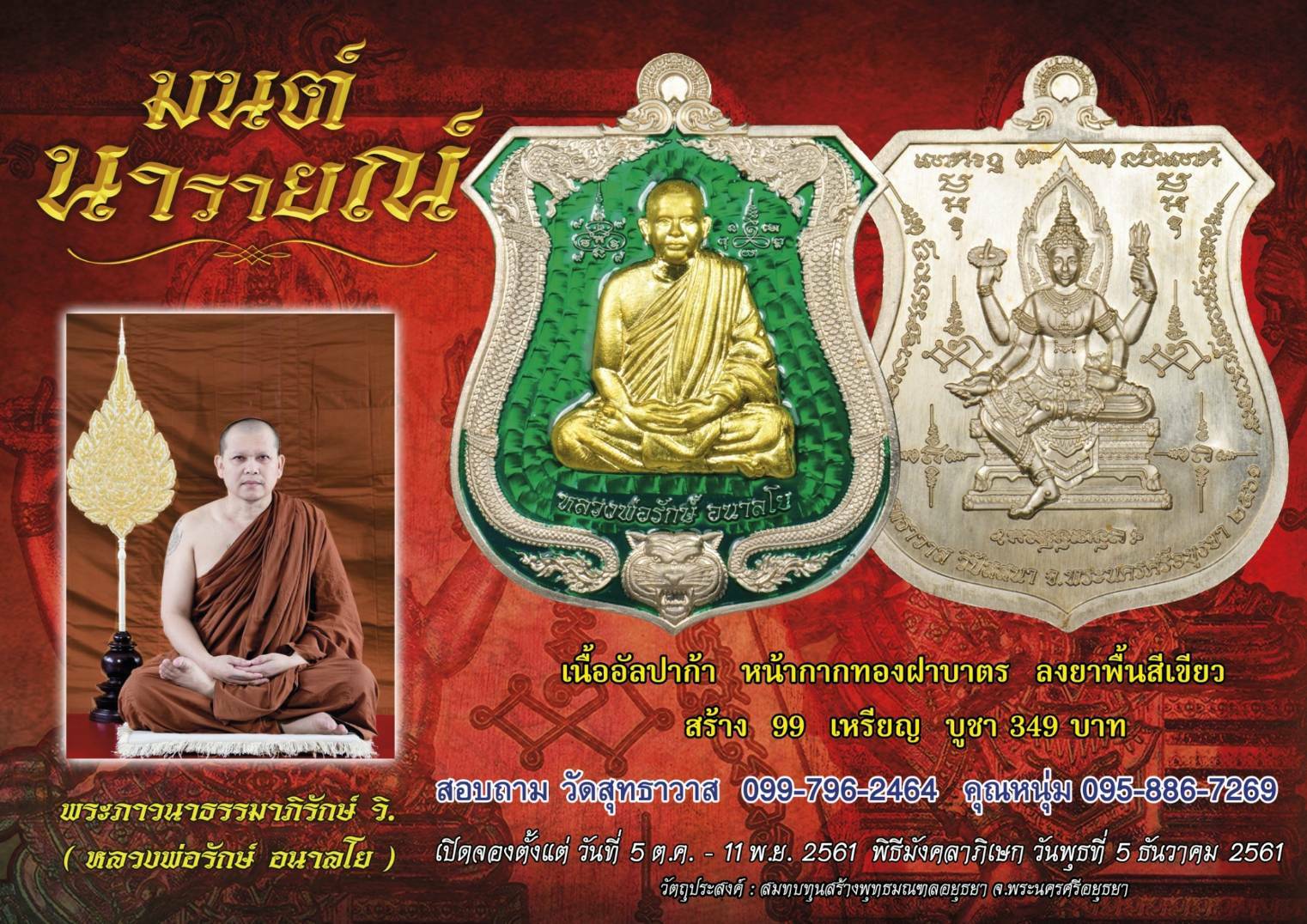 เหรียญมนต์นารายณ์ รุ่นแรก หลวงพ่อเจ้าคุณรักษ์ อนาลโย