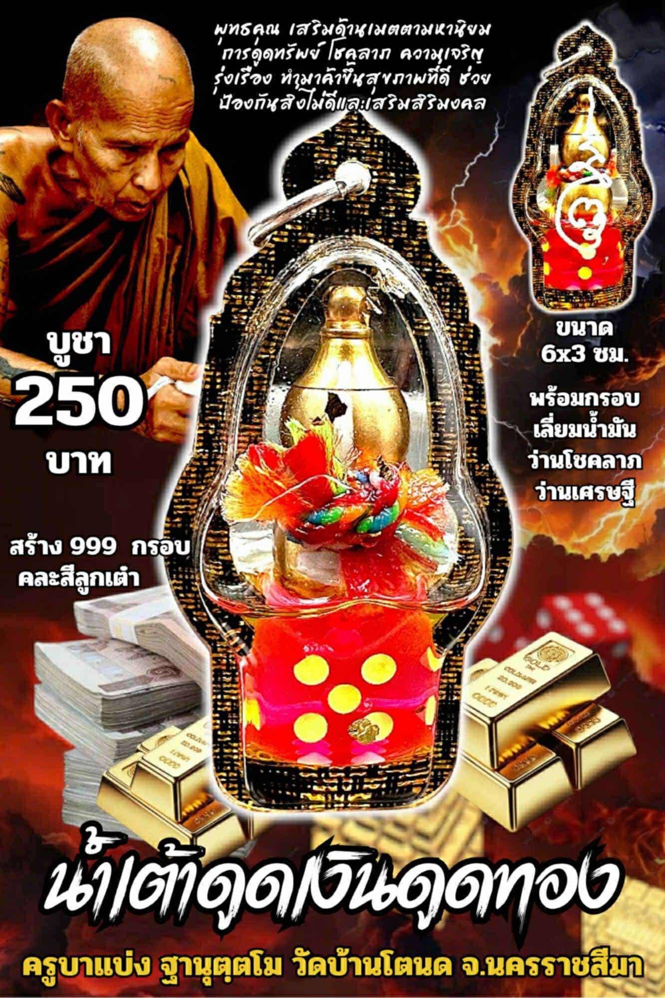 ครูบาแบ่ง วัดบ้านโตนด นครราชสีมา น้ำเต้าดูดเงิน ดูดทอง พร้อมกรอบน้ำมัน ว่านโชคลาภ ว่านเศรษฐี ราคาจอง 250 บาท ขนาด6x3ซม.(ใหญ่) สร้าง 999 องค์ รับพระเดือน กค. กรอบคละสีลูกเต๋า มีเลขโค้ดกำกับทุกองค์ วัตถุประสงค์:ร่วมพัฒนาวัดโตนด นครราชสีมา