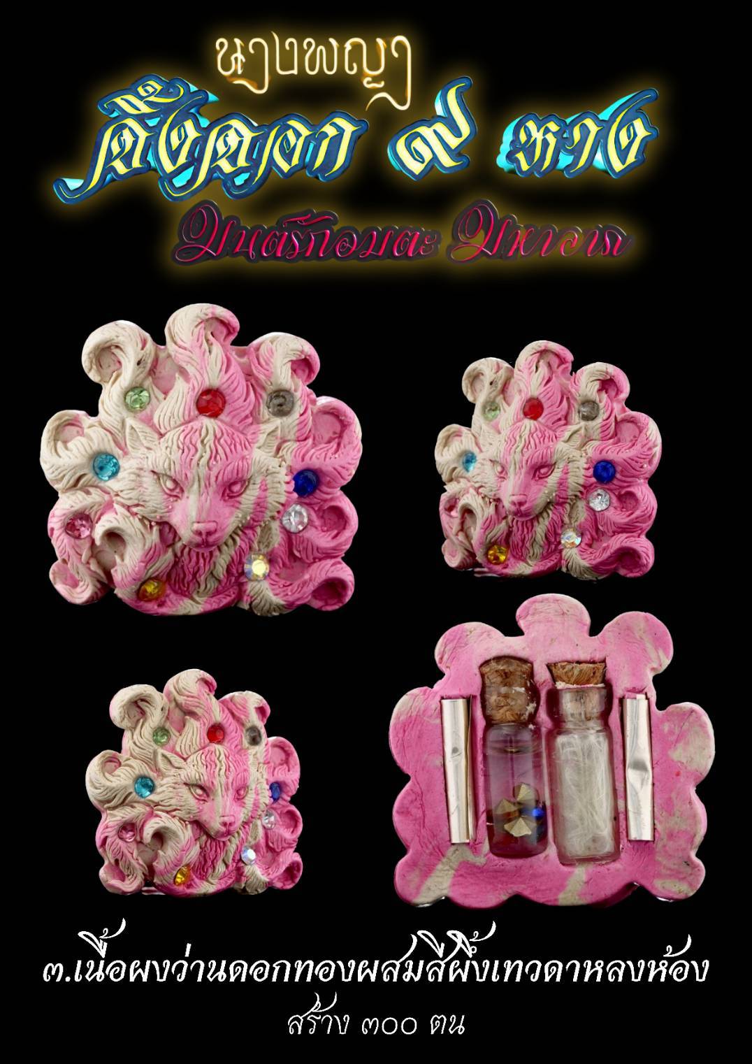 นางพญาจิ้งจอกเก้าหาง ฃนางพญาแห่งมหาเสน่ห์ ฃนางพญาแห่งความรักความสมหวัง รายการ 3.เนื้อผงว่านดอกทองผสมสีผึ้งเทวดาหลงห้อง สร้าง 300 ตน เครื่องรางยอดเสน่ห์แห่งตำนานที่มีชีวิต