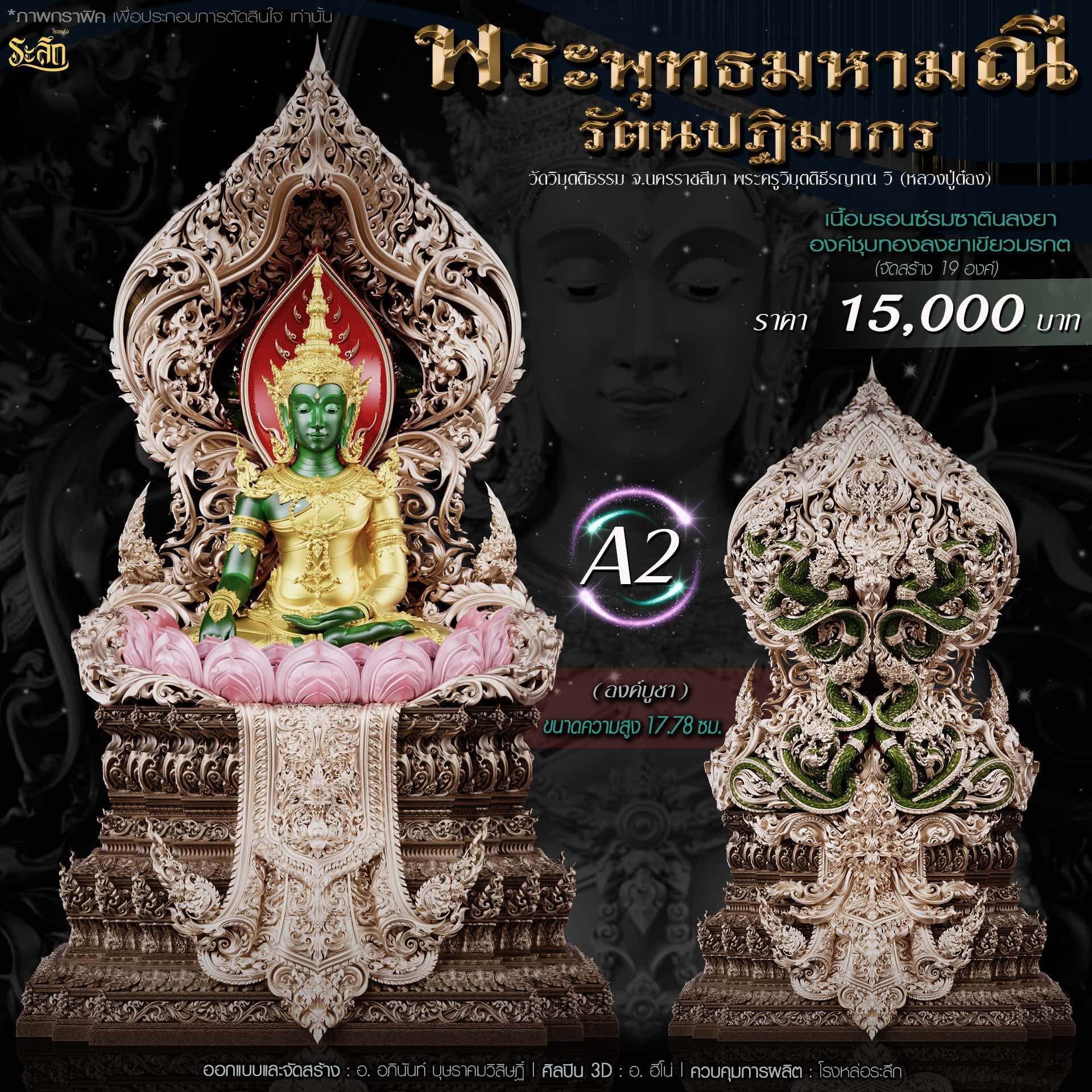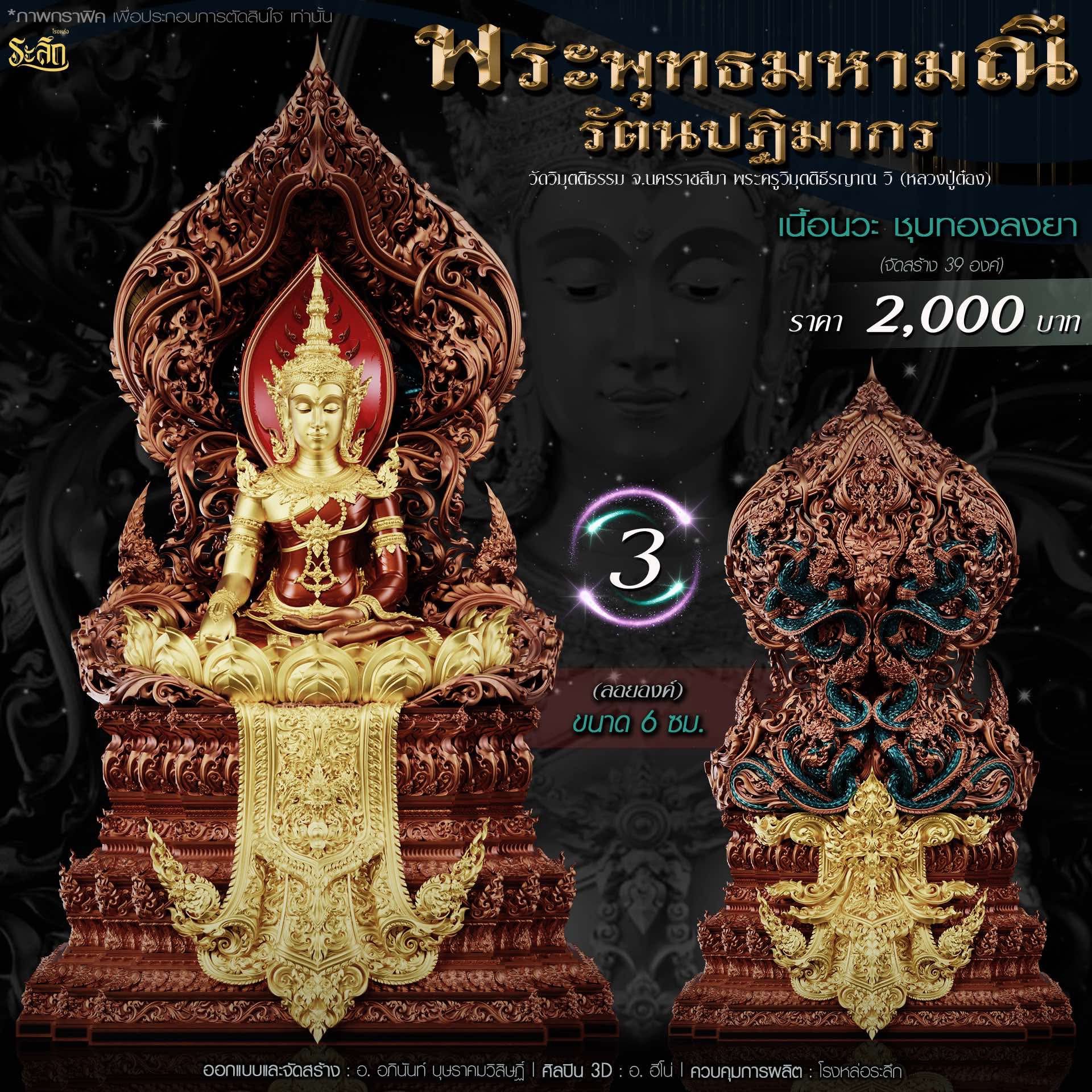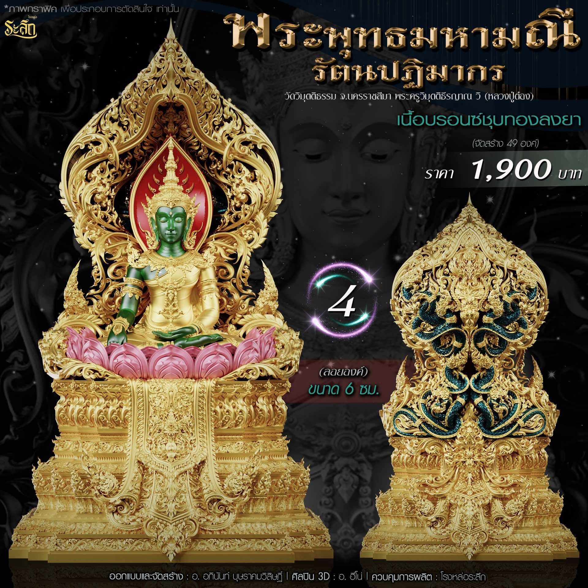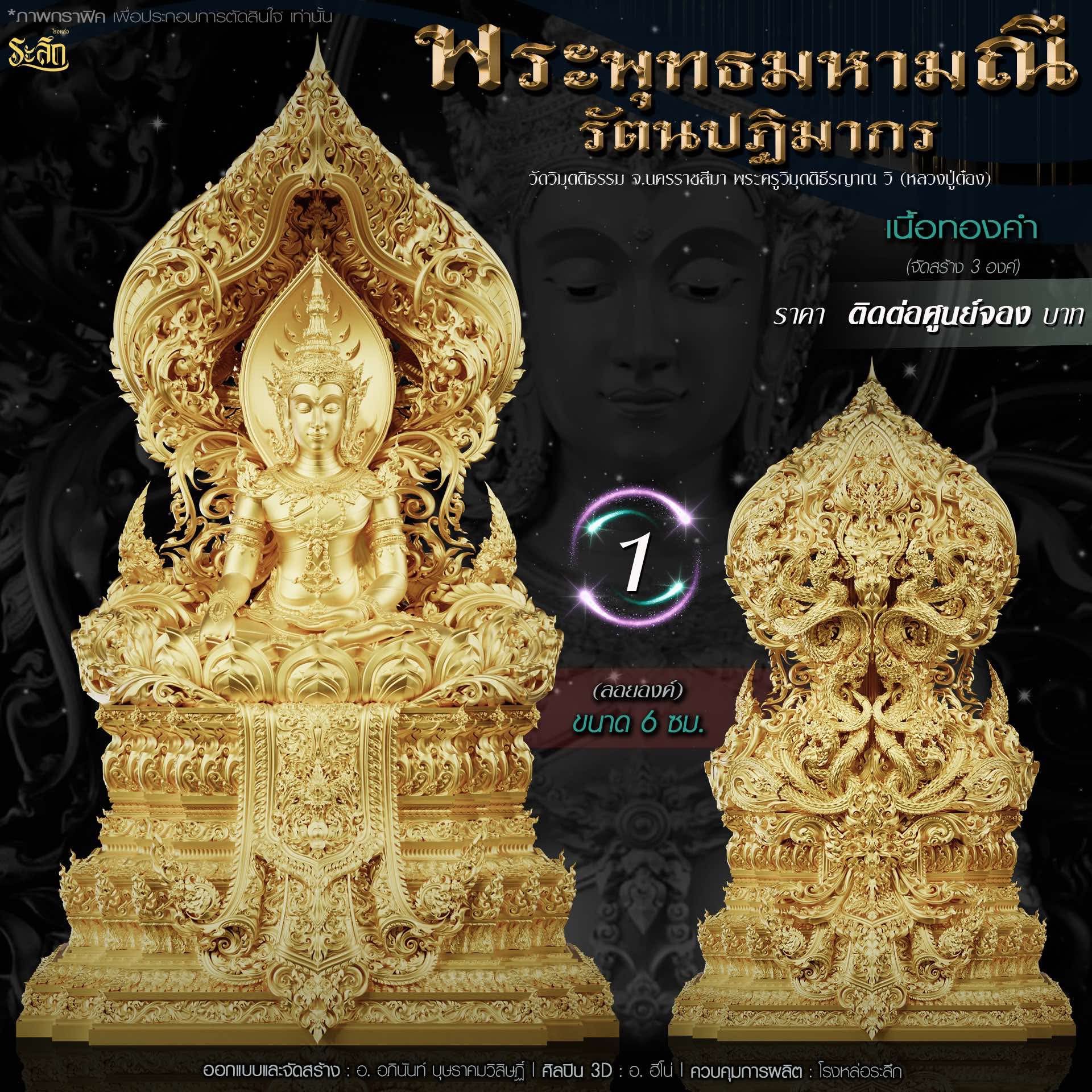 พระพุทธมหามณีรัตนปฏิมากร ขนาดความสูง 6 ซม / 17.78 ซม / 40 ซม ออกแบบและจัดสร้าง อาจารย์อภินันท์ บุษราคมวิสิษฏ์ Apinun Budsrakomvisit ศิลปิน 3D : ฮีโน ดูแลการผลิต โรงหล่อระลึก ประชาสัมพันธ์ ทีมพุทธศิลป์แดนใต้