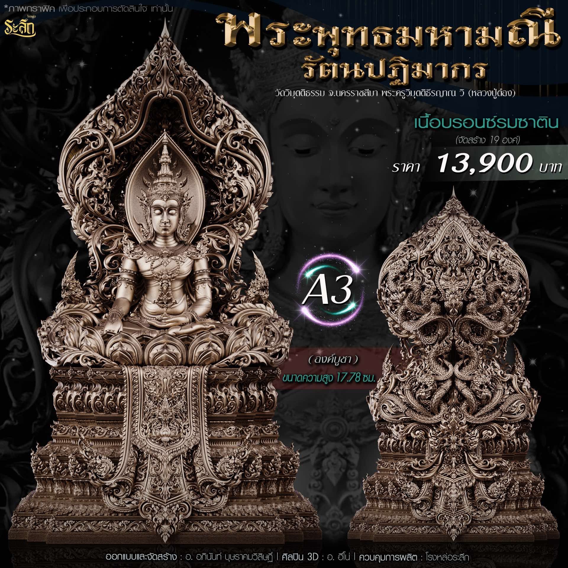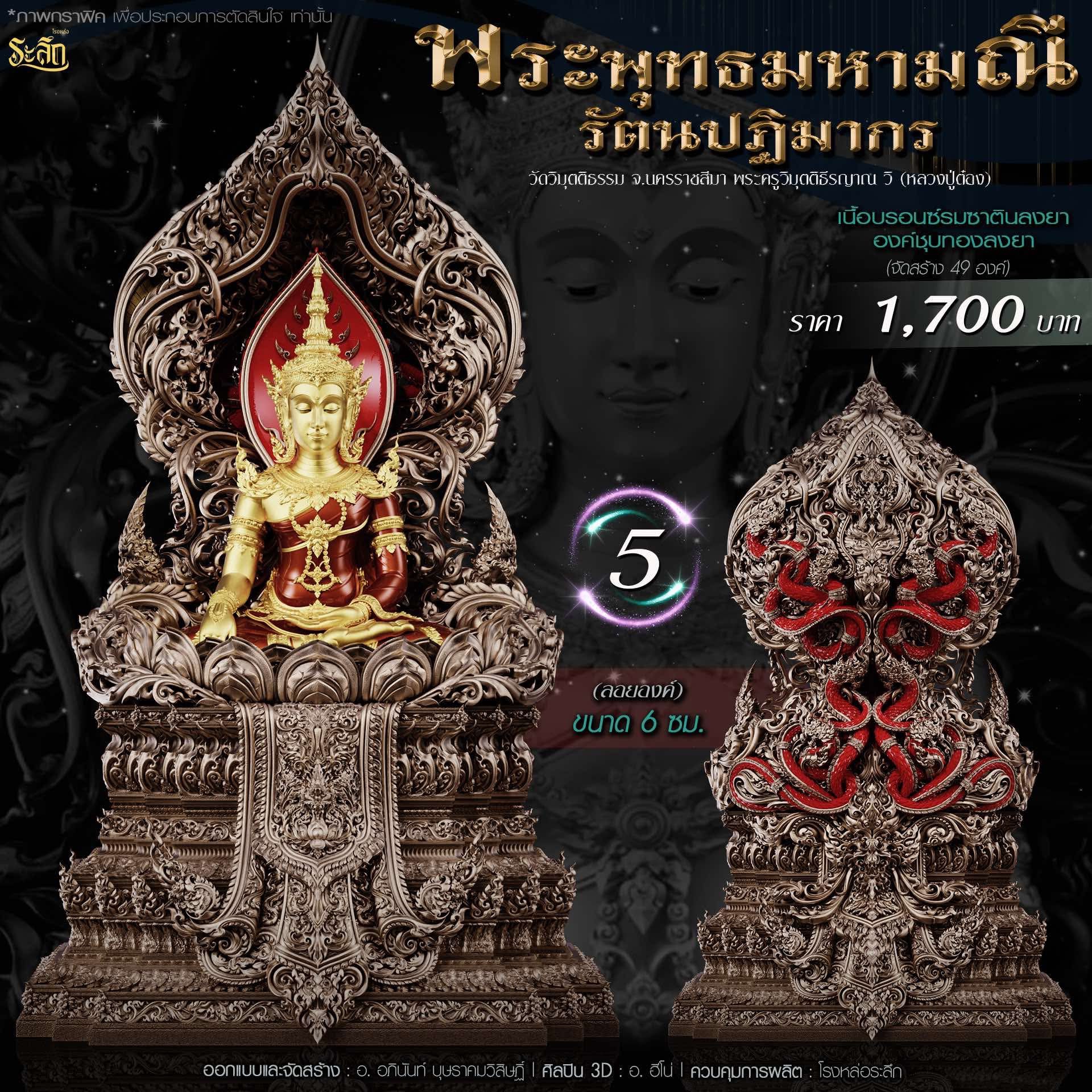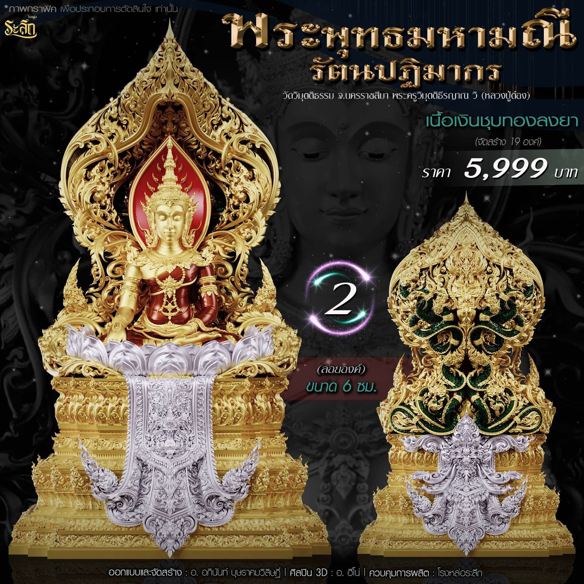 พระพุทธมหามณีรัตนปฏิมากร ขนาดความสูง 6 ซม / 17.78 ซม / 40 ซม ออกแบบและจัดสร้าง อาจารย์อภินันท์ บุษราคมวิสิษฏ์ Apinun Budsrakomvisit ศิลปิน 3D : ฮีโน ดูแลการผลิต โรงหล่อระลึก ประชาสัมพันธ์ ทีมพุทธศิลป์แดนใต้