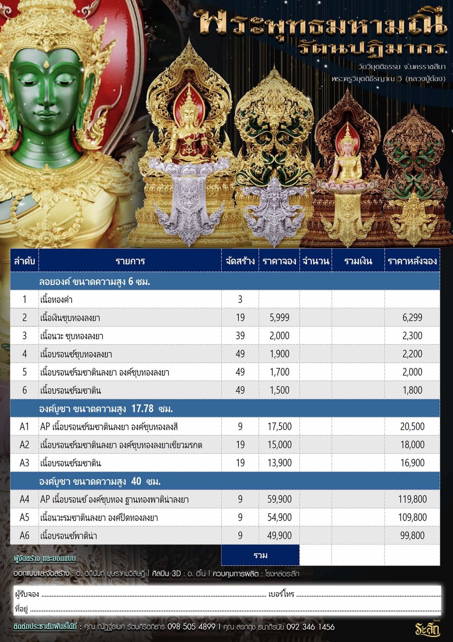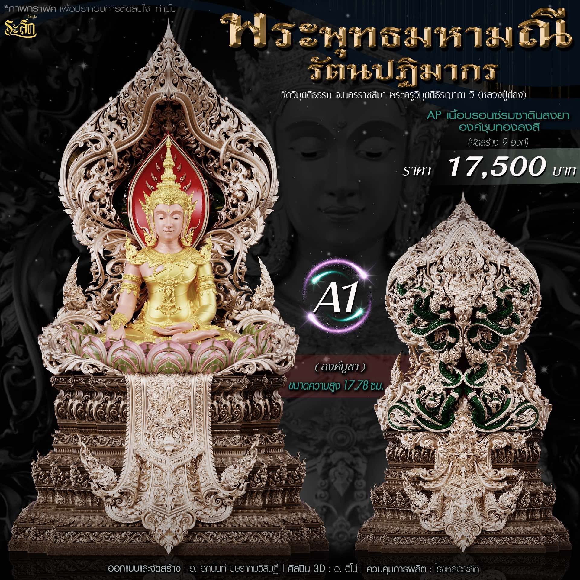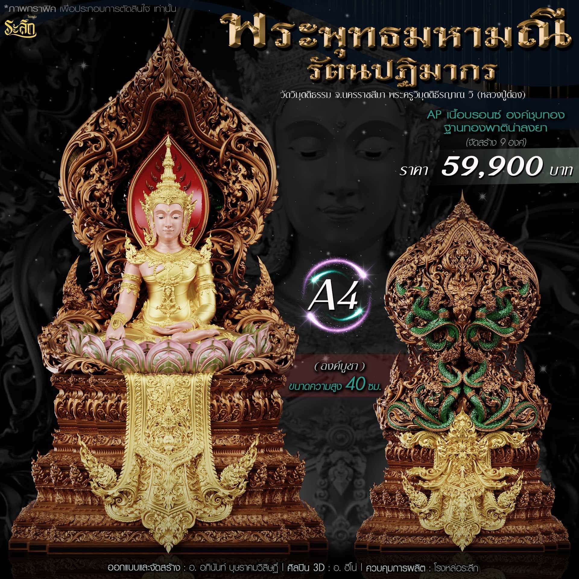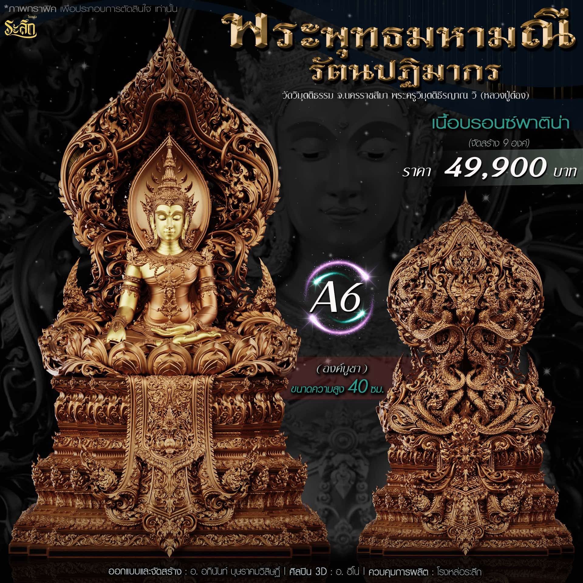 พระพุทธมหามณีรัตนปฏิมากร ขนาดความสูง 6 ซม / 17.78 ซม / 40 ซม ออกแบบและจัดสร้าง อาจารย์อภินันท์ บุษราคมวิสิษฏ์ Apinun Budsrakomvisit ศิลปิน 3D : ฮีโน ดูแลการผลิต โรงหล่อระลึก ประชาสัมพันธ์ ทีมพุทธศิลป์แดนใต้