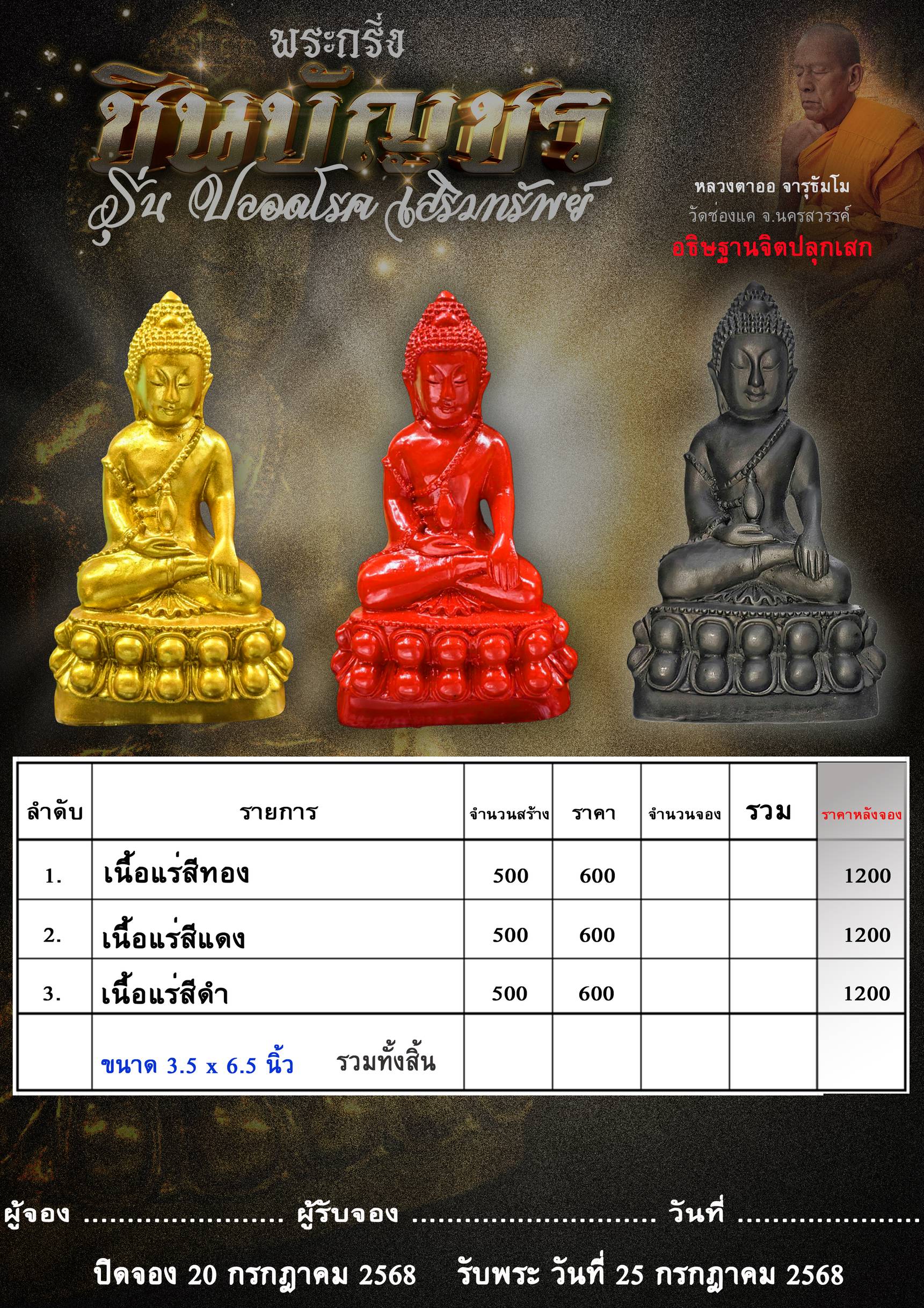 พระกริ่งชินบัญชร รุ่น ปลอดโรค เสริมทรัพย์ หลวงตาออ จารุธัมโม วัดช่องแค ราคาจอง 600 บาท มีเลขกำกับทุกองค์