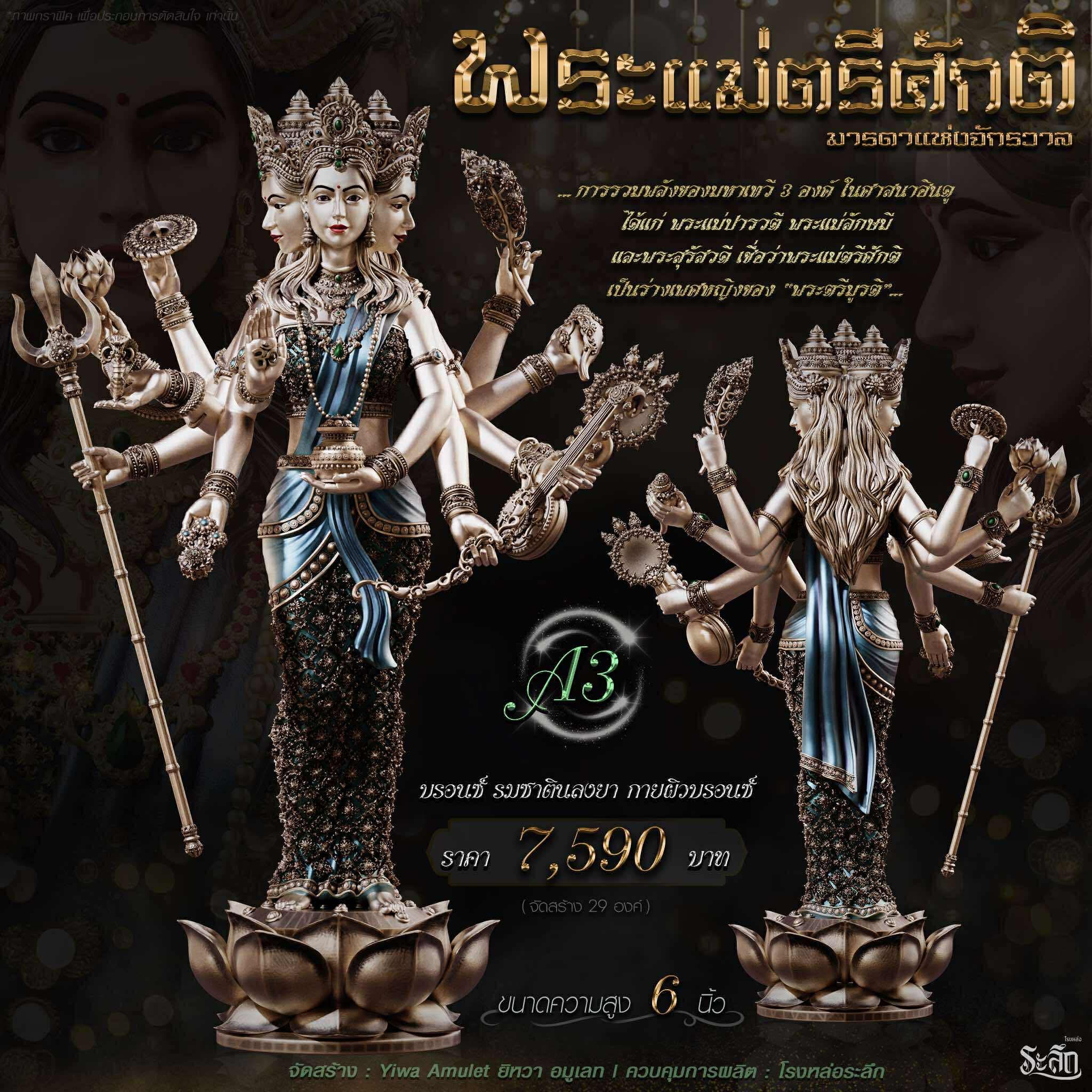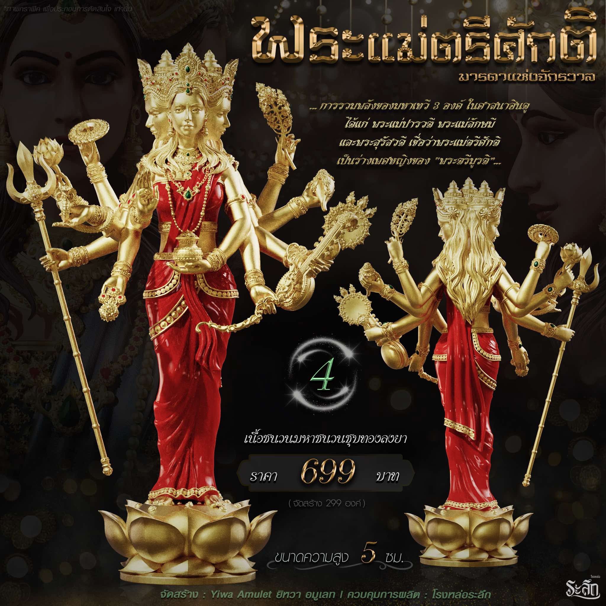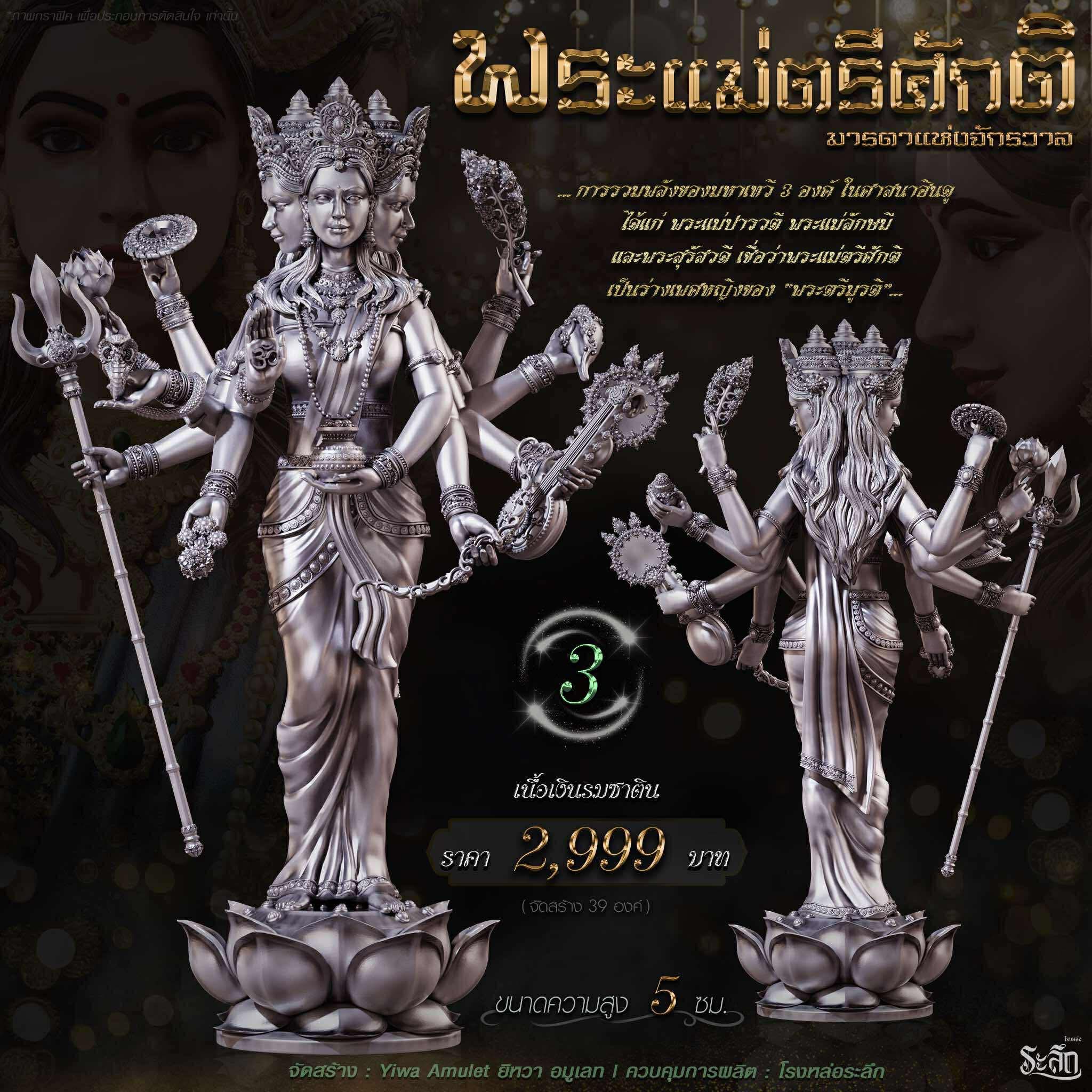 เปิดจอง พระแม่ตรีศักติ หรือ ตรีเทวี (Tridevi) 07/07/68 (วันนี้) เวลา 11:11 น. การรวมกันของเทพสตรีสูงสุด สามพระองค์ในศาสนาฮินดู พระแม่ลักษมี (Lakshmi) พระแม่ปารวตี (Parvati) พระแม่สรัสวตี (Saraswati) บูชาเพื่อขอพรทั้งด้าน ปัญญา โชคลาภ และพลังชีวิต ขนาดบูชามีดังนี้