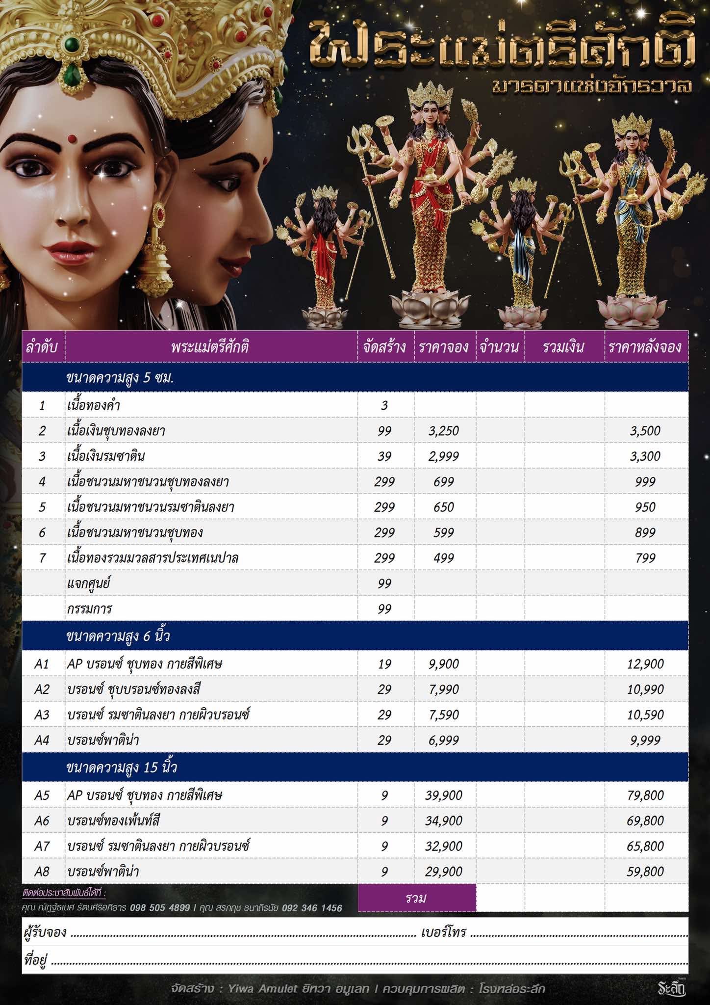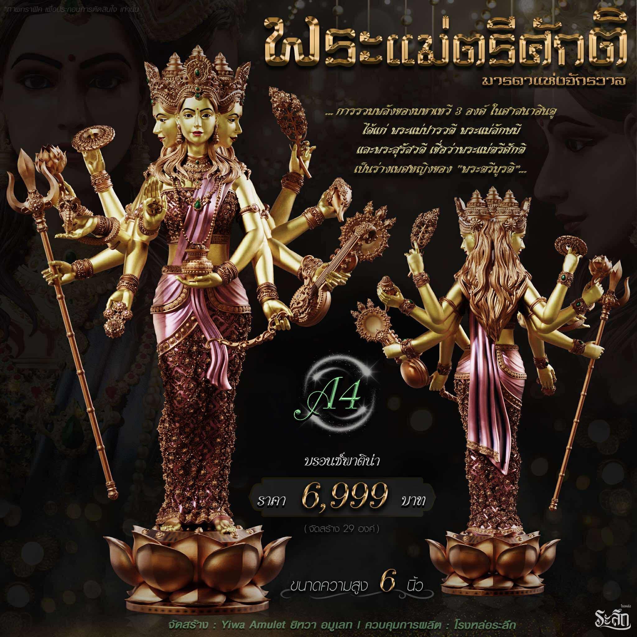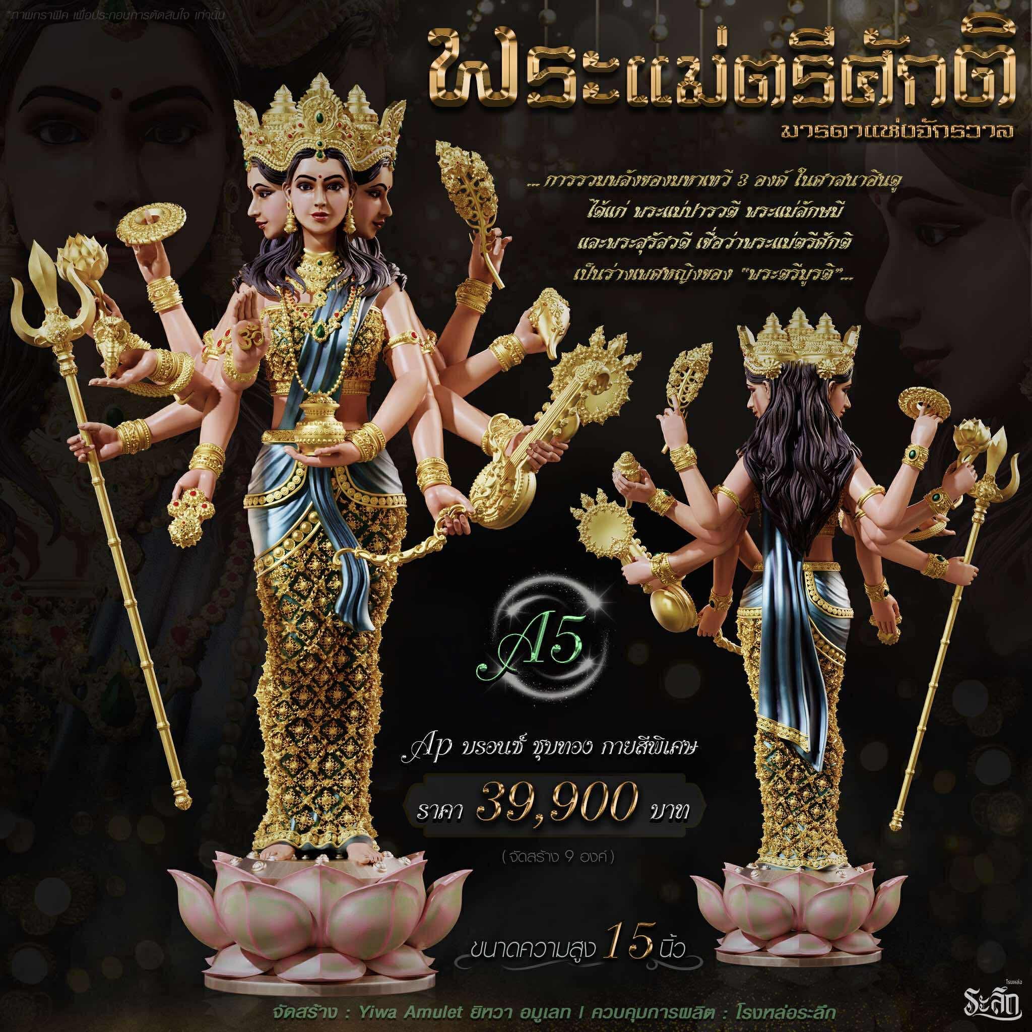 เปิดจอง พระแม่ตรีศักติ หรือ ตรีเทวี (Tridevi) 07/07/68 (วันนี้) เวลา 11:11 น. การรวมกันของเทพสตรีสูงสุด สามพระองค์ในศาสนาฮินดู พระแม่ลักษมี (Lakshmi) พระแม่ปารวตี (Parvati) พระแม่สรัสวตี (Saraswati) บูชาเพื่อขอพรทั้งด้าน ปัญญา โชคลาภ และพลังชีวิต ขนาดบูชามีดังนี้
