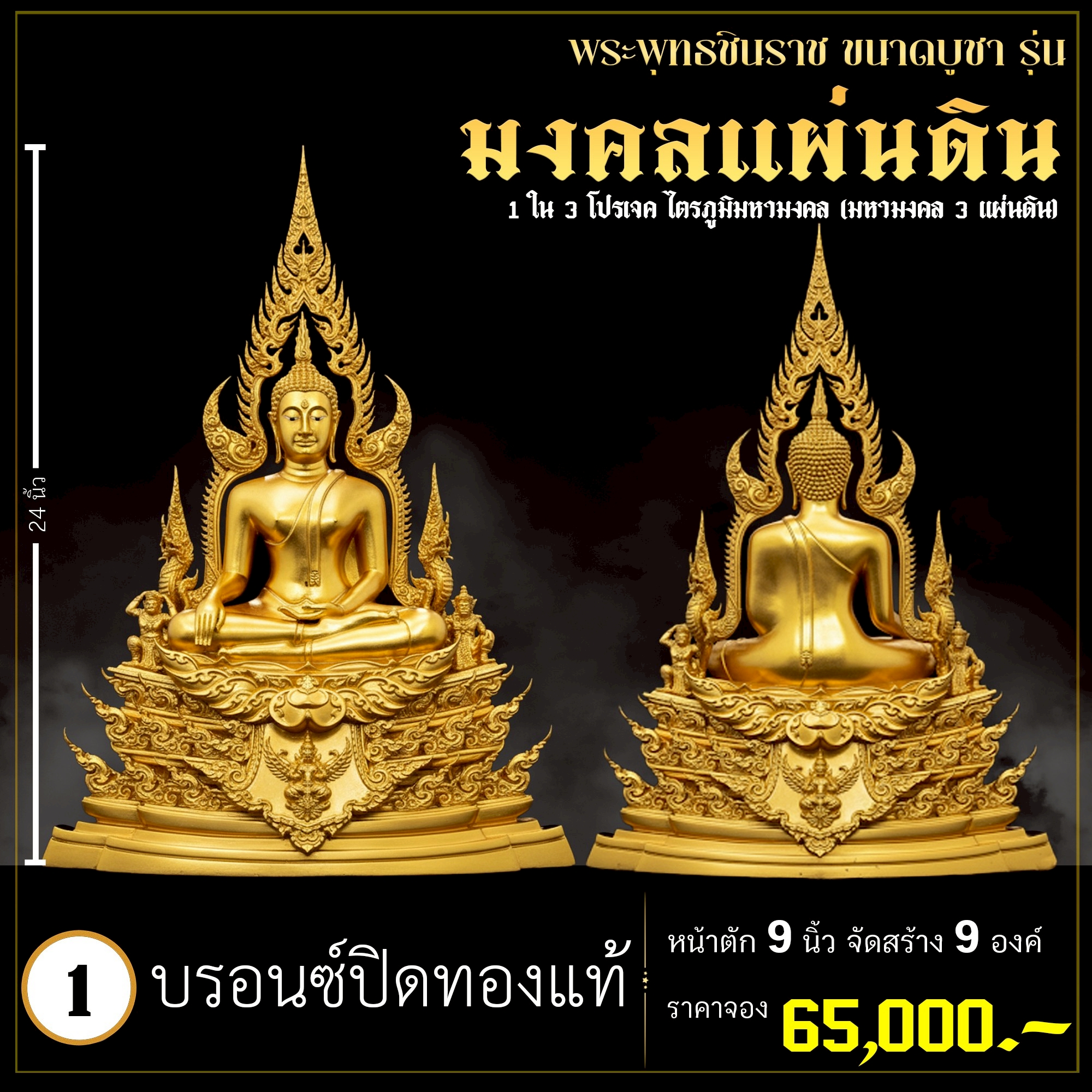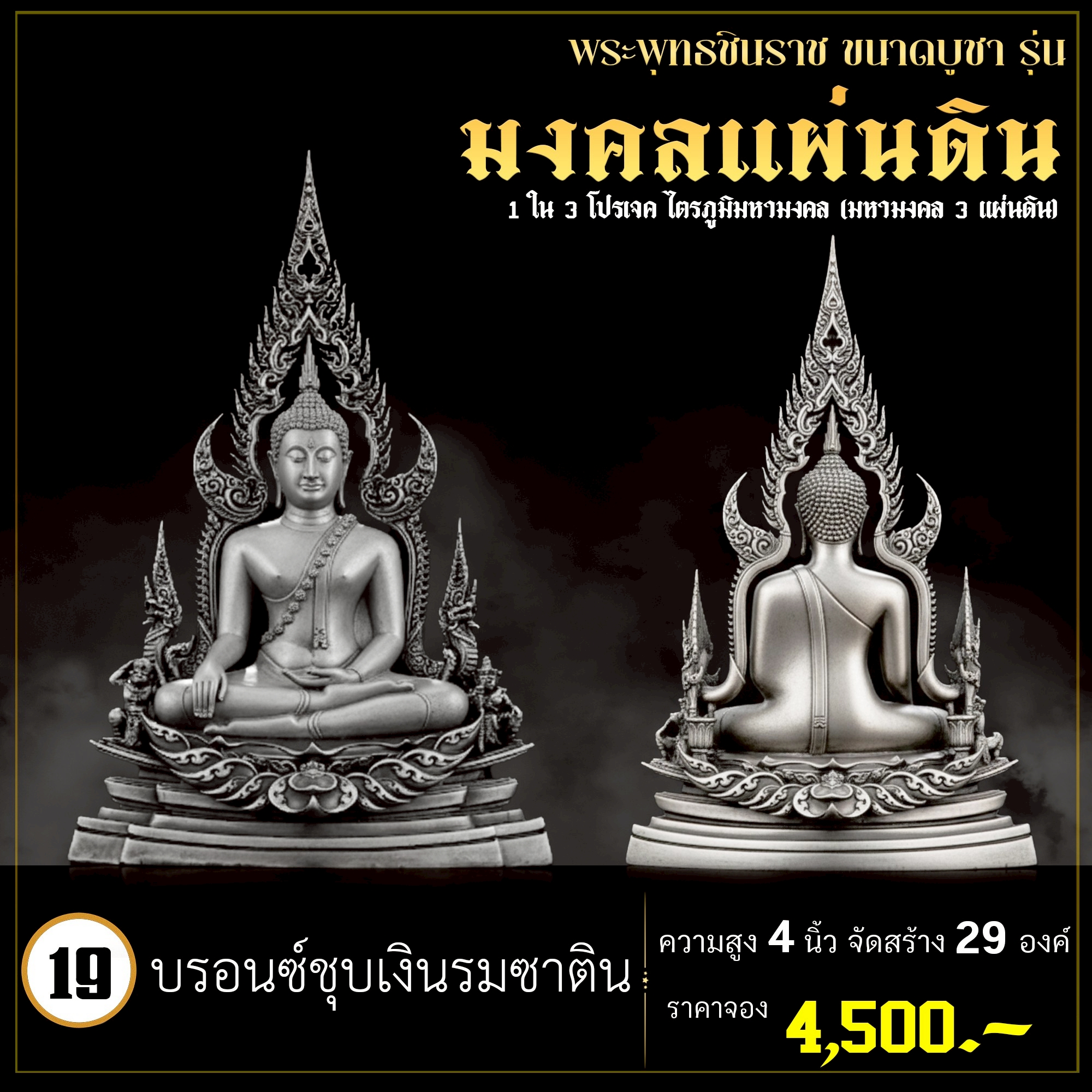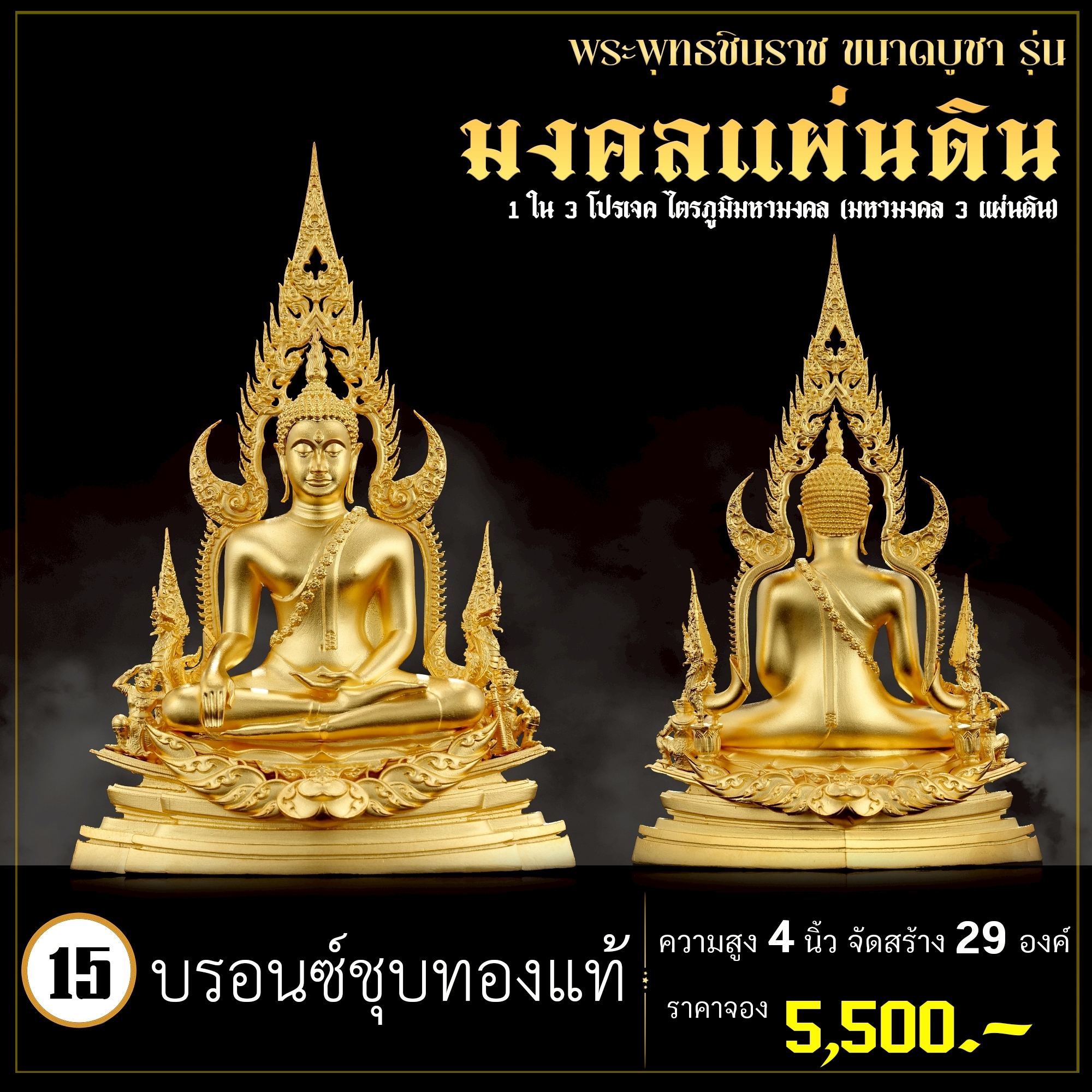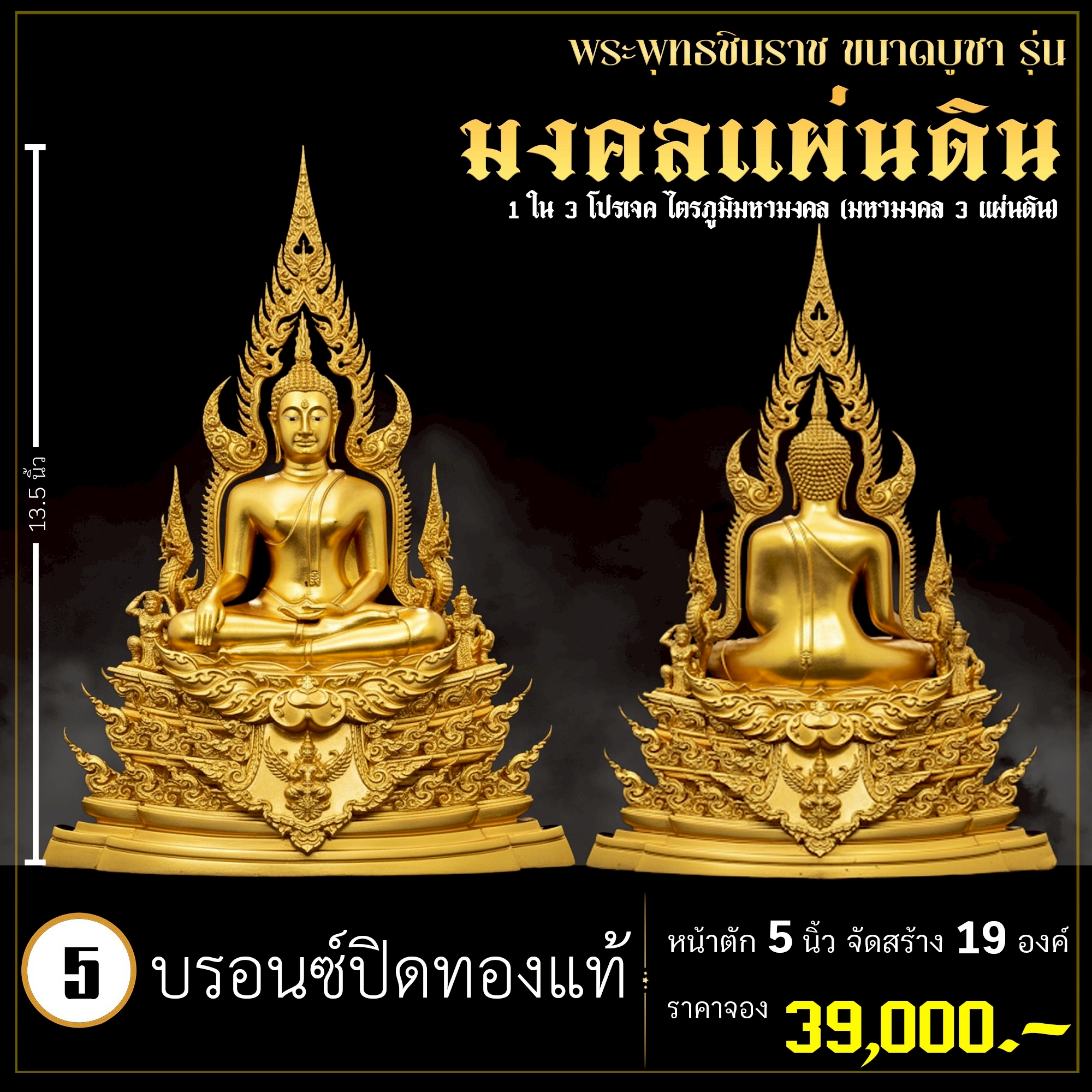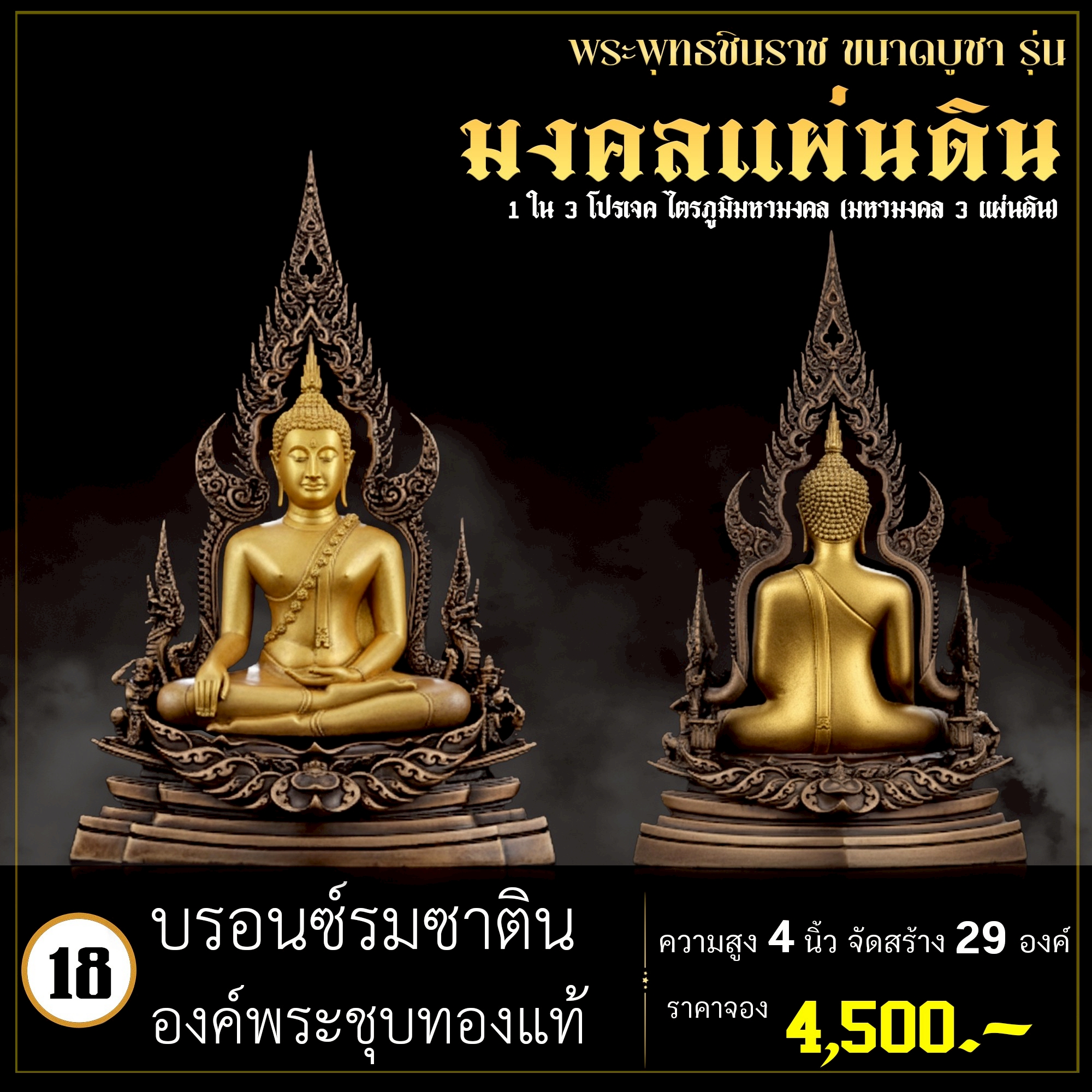 พระพุทธชินราช คือพระคู่บ้านคู่เมืองของไทย ประจำเมืองพิษณุโลก จึงเกิดการรังสรรค์ผลงาน ชุด มงคลแผ่นดิน ซึ่งเป็นการสร้างพระพุทธชินราช “ในแบบพุทธศิลป์” กล่าวกันว่าการบูชาองค์พระพุทธชินราช จะนำมาซึ่งความเจริญรุ่งเรืองรอบด้าน ดังชื่อที่ว่า ชินราช แปละว่า พระราชาผู้พิชิต การออกแบบ ศิลปินออกแบบให้เป็นศิลปะประจำยุคสมัย โดยองค์พระออกแบบให้คงอัตลักษณะความงดงามตามขนบเดิมที่สุด และองค์ประกอบมีการปรับลวดลายให้เป็นแบบพุทธศิลป์ปัจจุบันอย่างลงตัว วัตถุประสงค์ในการจัดสร้าง ร่วมบุญกฐินครั้งใหญ่ปี ๒๕๖๘ เพื่อสบทบทุนร่วมสร้างศาลาธรรมสังเวช ณ วัดเด่นโบสถ์โพธิ์งาม พิธีพุทธาภิเษก โดยพระเกจิคณาจารย์ เปิดจองวันที่ 14 ก.ย.2568 – 20 ก.ย.2568 รับผลงานหลังพิธีเสกใหญ่ ช่วงเดือน ธันวาคม 2568 ออกแบบลายเส้นโดย เจนณรงค์ ทิพยเทวะรังสรรค์ ออกแบบปั้น 3D โดย นรายุติ์ ดอกไม้หอม โรงหล่อผลิตโดย โรงหล่อพระรามห้า (ดีงามพระรามห้า)