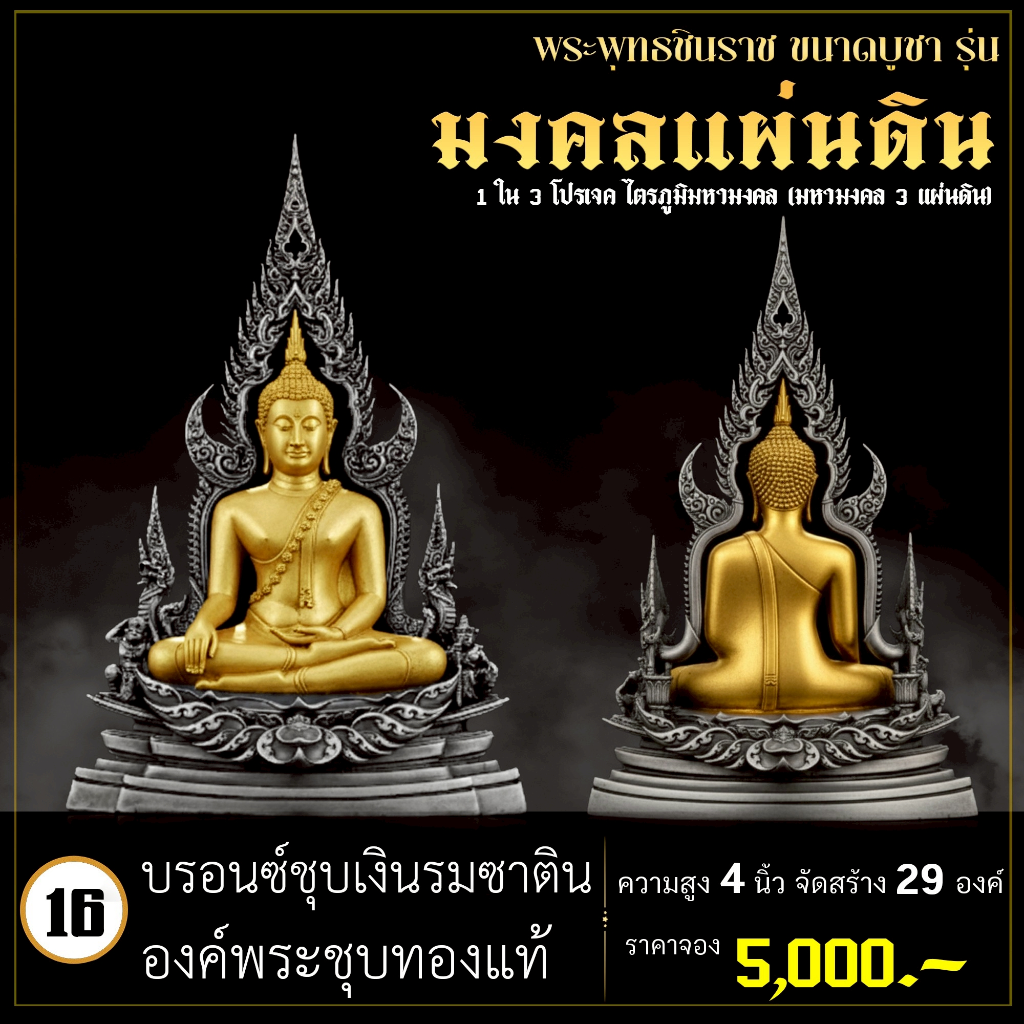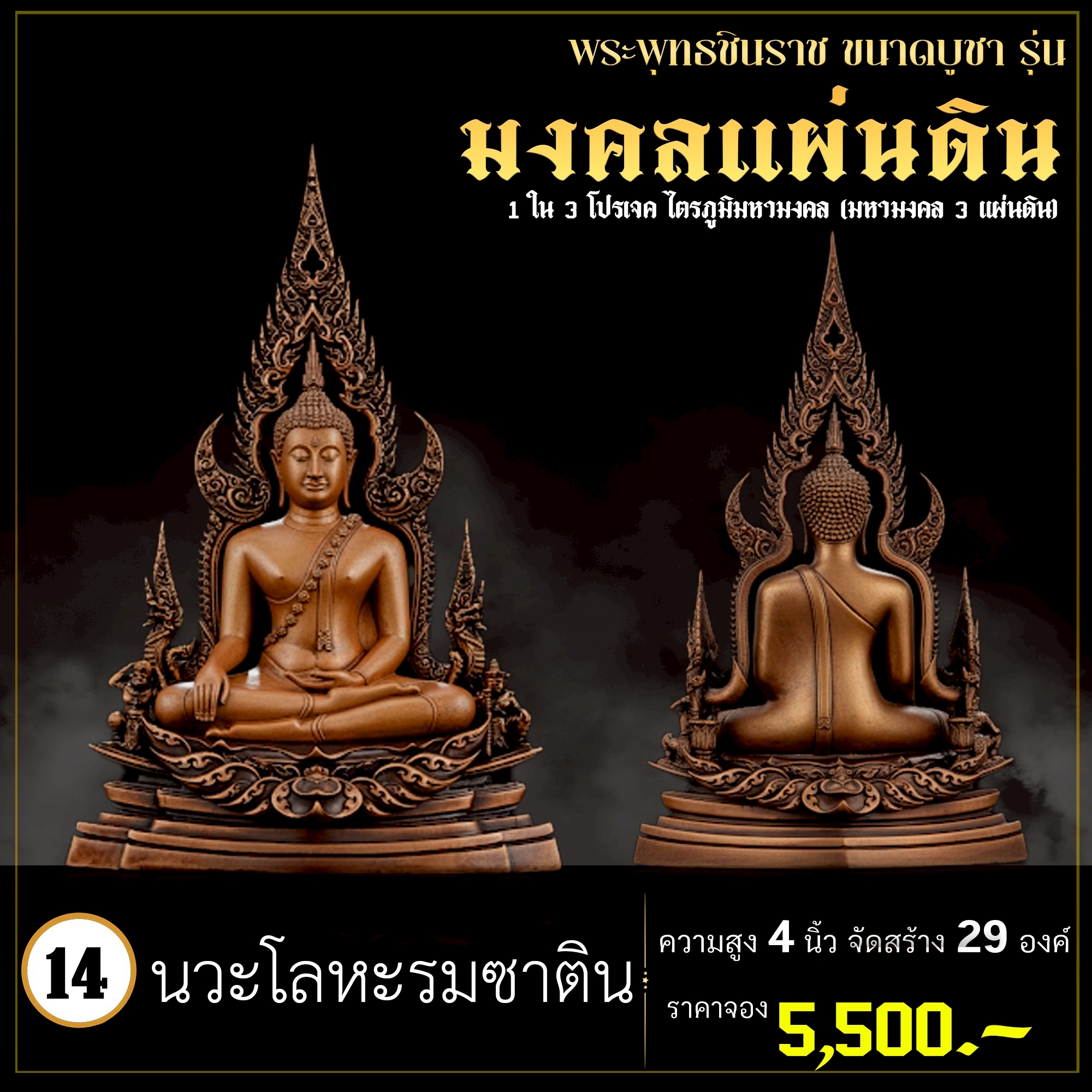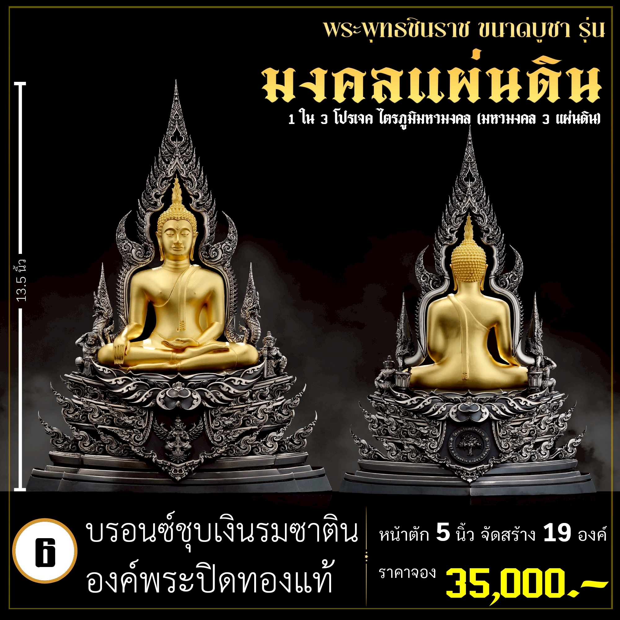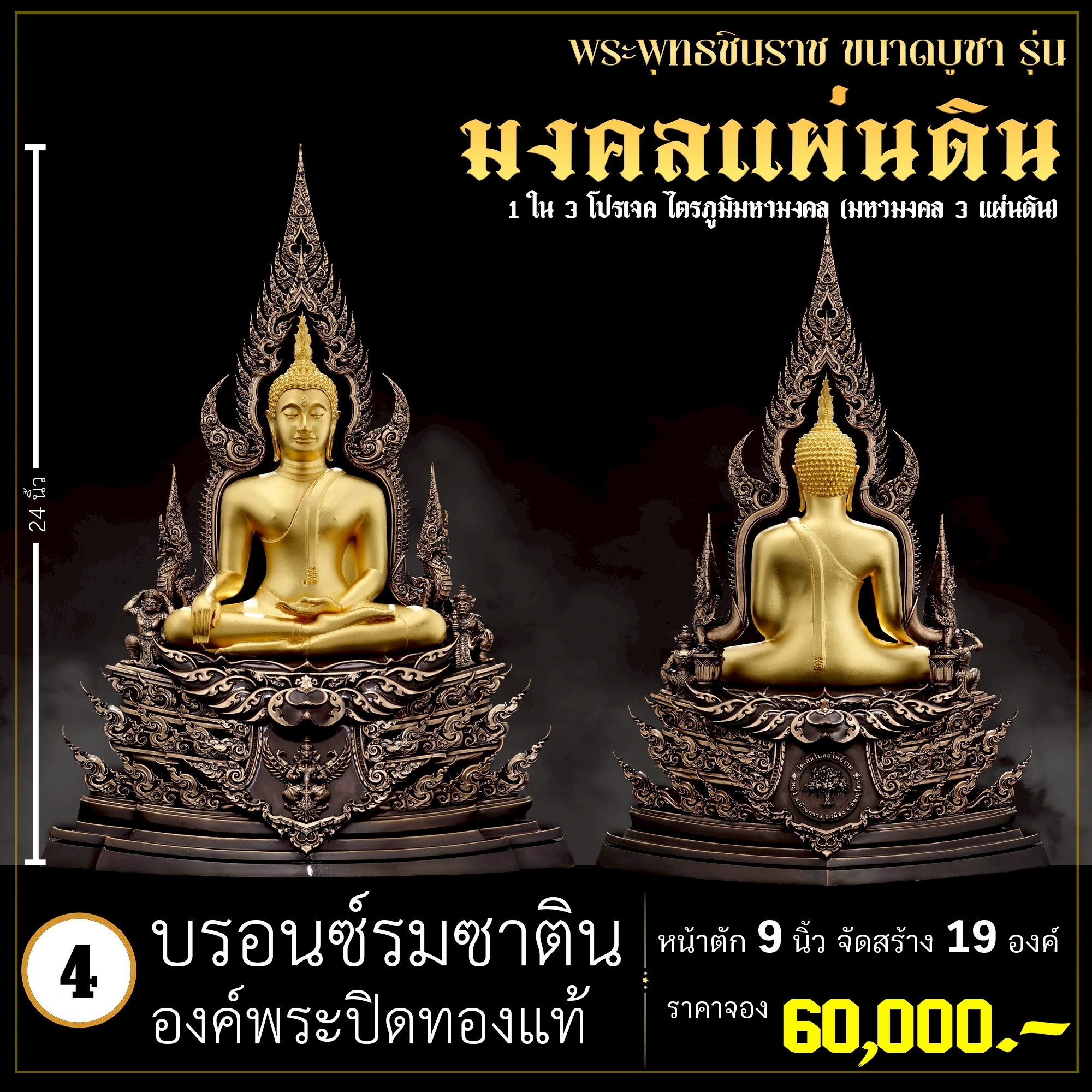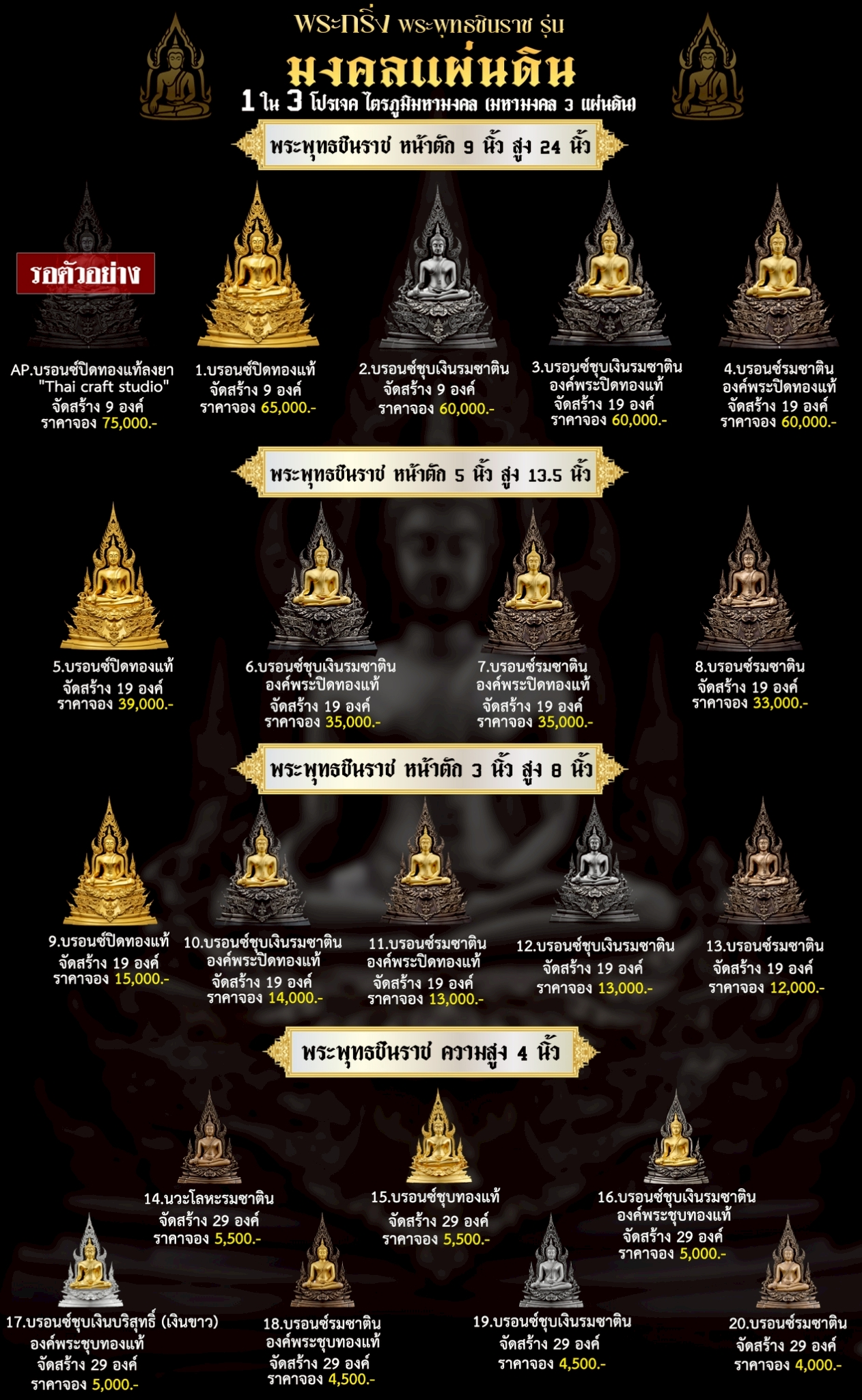 พระพุทธชินราช คือพระคู่บ้านคู่เมืองของไทย ประจำเมืองพิษณุโลก จึงเกิดการรังสรรค์ผลงาน ชุด มงคลแผ่นดิน ซึ่งเป็นการสร้างพระพุทธชินราช “ในแบบพุทธศิลป์” กล่าวกันว่าการบูชาองค์พระพุทธชินราช จะนำมาซึ่งความเจริญรุ่งเรืองรอบด้าน ดังชื่อที่ว่า ชินราช แปละว่า พระราชาผู้พิชิต การออกแบบ ศิลปินออกแบบให้เป็นศิลปะประจำยุคสมัย โดยองค์พระออกแบบให้คงอัตลักษณะความงดงามตามขนบเดิมที่สุด และองค์ประกอบมีการปรับลวดลายให้เป็นแบบพุทธศิลป์ปัจจุบันอย่างลงตัว วัตถุประสงค์ในการจัดสร้าง ร่วมบุญกฐินครั้งใหญ่ปี ๒๕๖๘ เพื่อสบทบทุนร่วมสร้างศาลาธรรมสังเวช ณ วัดเด่นโบสถ์โพธิ์งาม พิธีพุทธาภิเษก โดยพระเกจิคณาจารย์ เปิดจองวันที่ 14 ก.ย.2568 – 20 ก.ย.2568 รับผลงานหลังพิธีเสกใหญ่ ช่วงเดือน ธันวาคม 2568 ออกแบบลายเส้นโดย เจนณรงค์ ทิพยเทวะรังสรรค์ ออกแบบปั้น 3D โดย นรายุติ์ ดอกไม้หอม โรงหล่อผลิตโดย โรงหล่อพระรามห้า (ดีงามพระรามห้า)