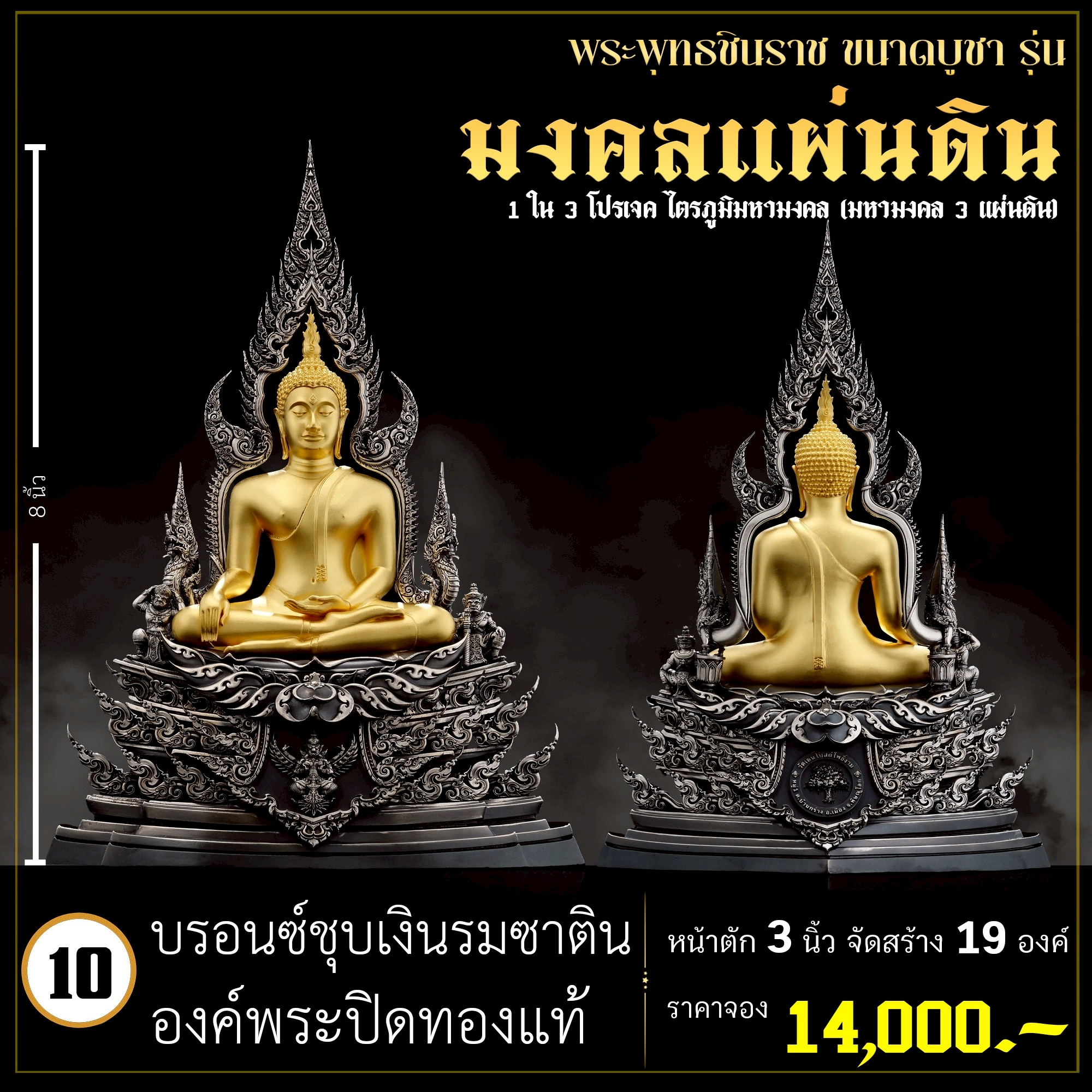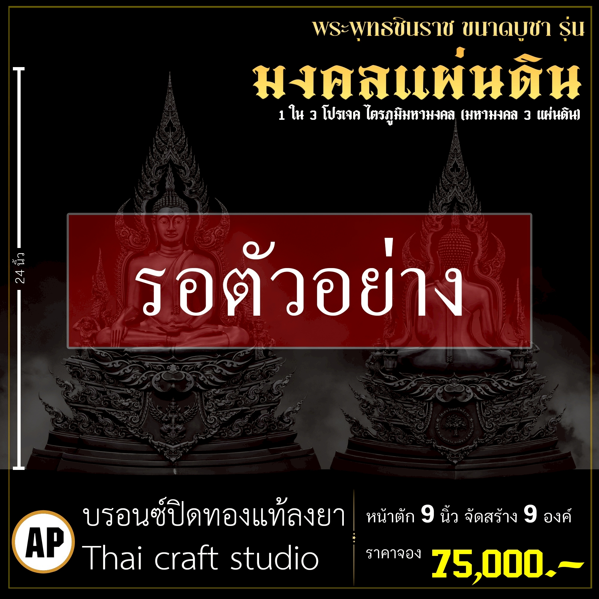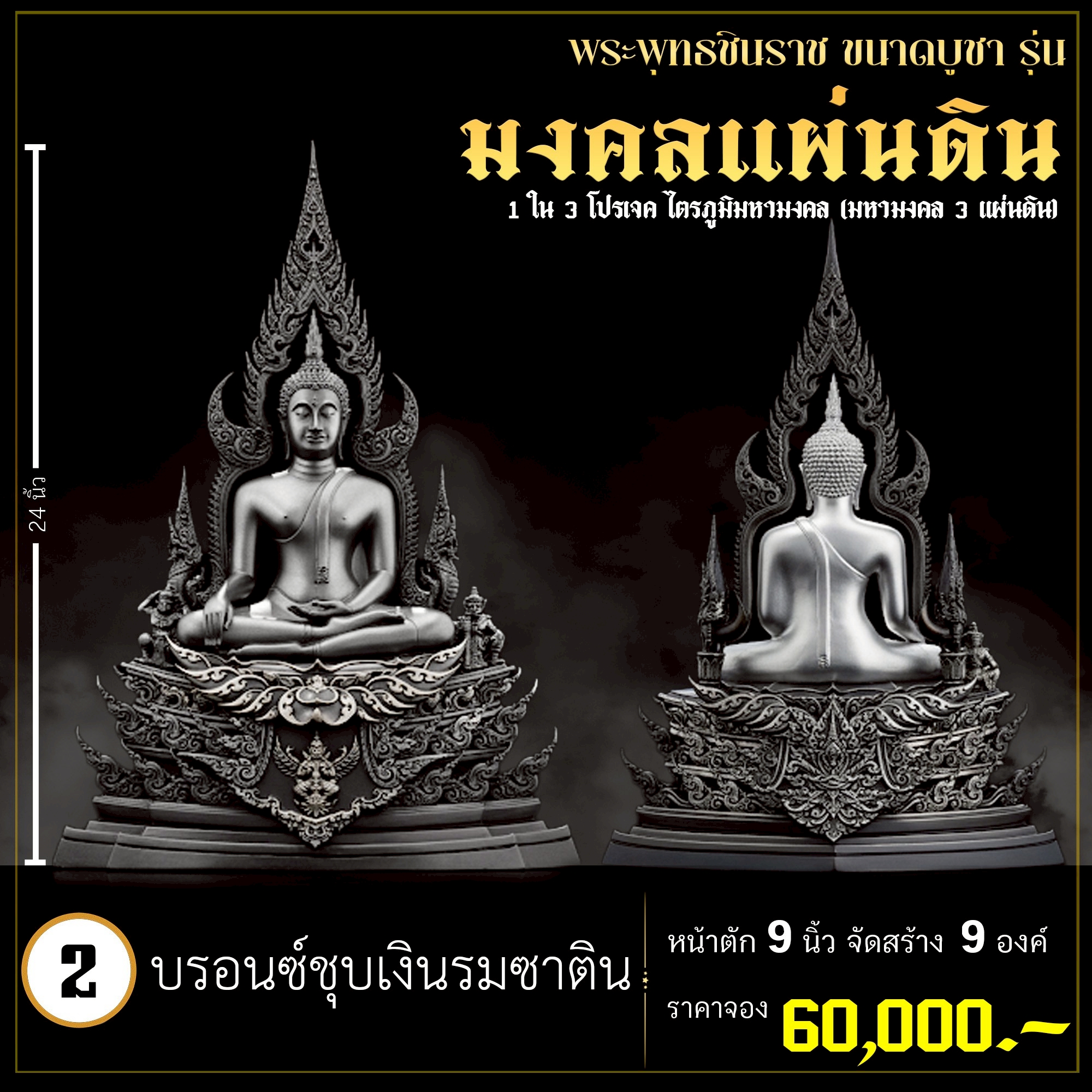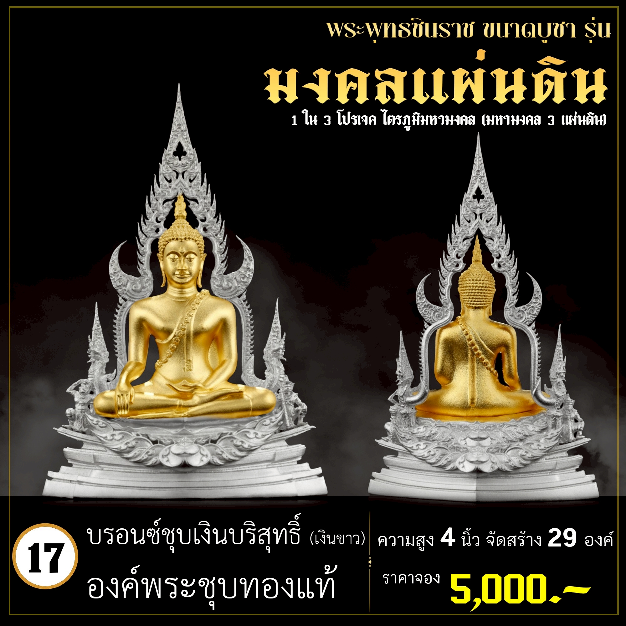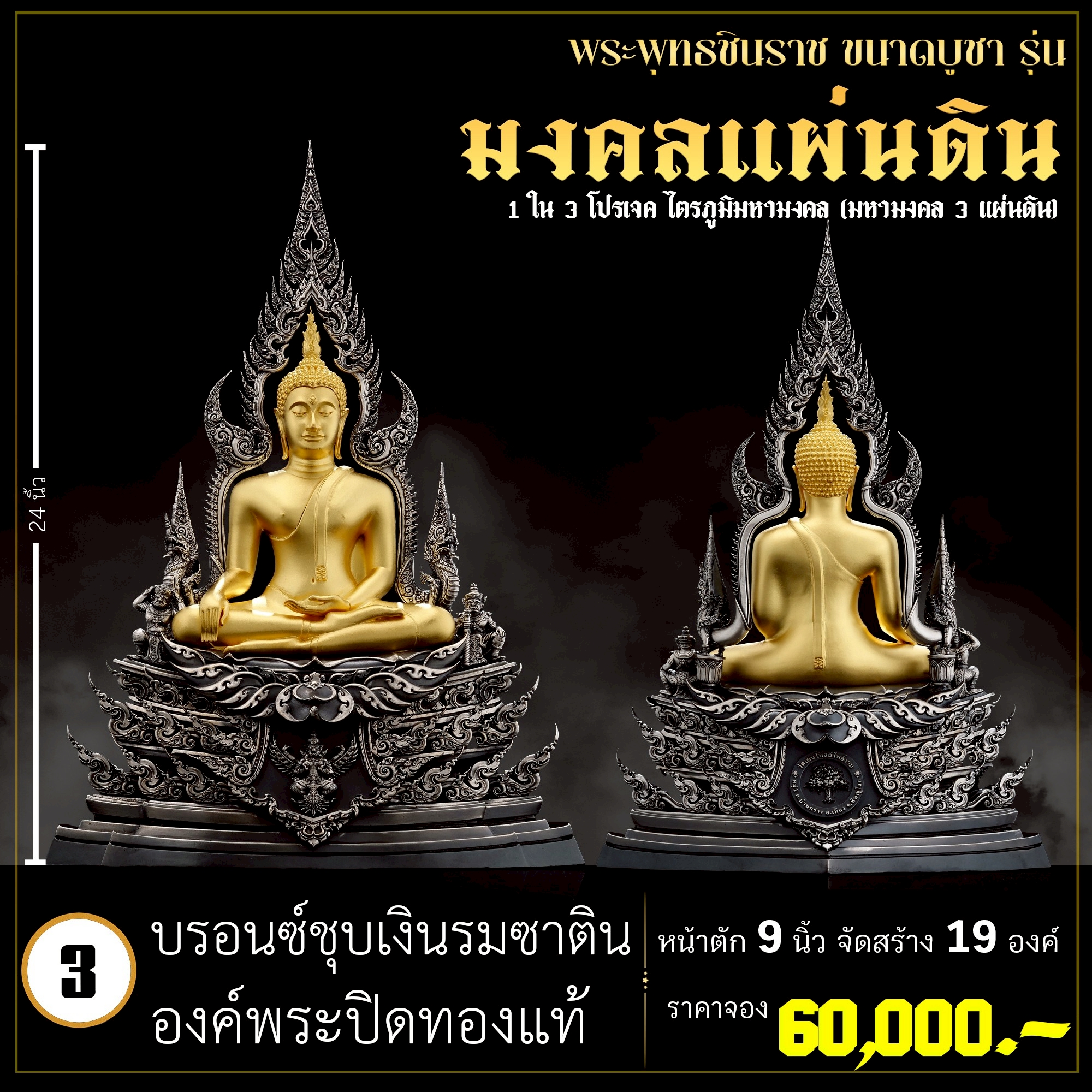 พระพุทธชินราช คือพระคู่บ้านคู่เมืองของไทย ประจำเมืองพิษณุโลก จึงเกิดการรังสรรค์ผลงาน ชุด มงคลแผ่นดิน ซึ่งเป็นการสร้างพระพุทธชินราช “ในแบบพุทธศิลป์” กล่าวกันว่าการบูชาองค์พระพุทธชินราช จะนำมาซึ่งความเจริญรุ่งเรืองรอบด้าน ดังชื่อที่ว่า ชินราช แปละว่า พระราชาผู้พิชิต การออกแบบ ศิลปินออกแบบให้เป็นศิลปะประจำยุคสมัย โดยองค์พระออกแบบให้คงอัตลักษณะความงดงามตามขนบเดิมที่สุด และองค์ประกอบมีการปรับลวดลายให้เป็นแบบพุทธศิลป์ปัจจุบันอย่างลงตัว วัตถุประสงค์ในการจัดสร้าง ร่วมบุญกฐินครั้งใหญ่ปี ๒๕๖๘ เพื่อสบทบทุนร่วมสร้างศาลาธรรมสังเวช ณ วัดเด่นโบสถ์โพธิ์งาม พิธีพุทธาภิเษก โดยพระเกจิคณาจารย์ เปิดจองวันที่ 14 ก.ย.2568 – 20 ก.ย.2568 รับผลงานหลังพิธีเสกใหญ่ ช่วงเดือน ธันวาคม 2568 ออกแบบลายเส้นโดย เจนณรงค์ ทิพยเทวะรังสรรค์ ออกแบบปั้น 3D โดย นรายุติ์ ดอกไม้หอม โรงหล่อผลิตโดย โรงหล่อพระรามห้า (ดีงามพระรามห้า)