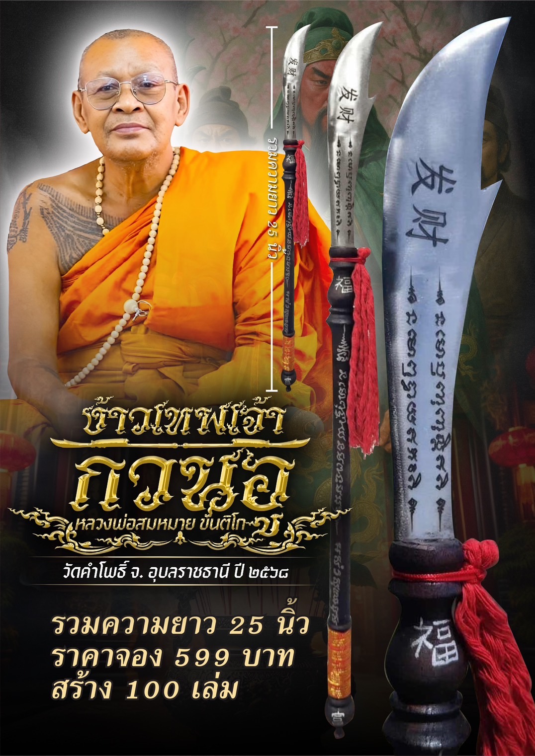 หลวงพ่อสมหมาย วัดคำโพธิ์ อุบลราชธานี ง้าวเทพเจ้า กวนอู ตัวด้ามสร้างจากไม้สักมงคล รวมความยาว 25นิ้ว จัดสร้าง 99 เล่ม เท่านั้นฃ ฃราคาจอง 599 บาท พุทธคุณ เป็นมหาอำนาจ เสริมดวง วาสนา บารมี การงานก้าวหน้า เลื่อนยศ เลื่อนตำเเหน่ง ปกป้องคุ้มภัยแก่ผู้ที่บูชา กลับร้ายให้กลายเป็นดี กันคุณผีคุณคน ลมเพลมพัด ฯลฯ