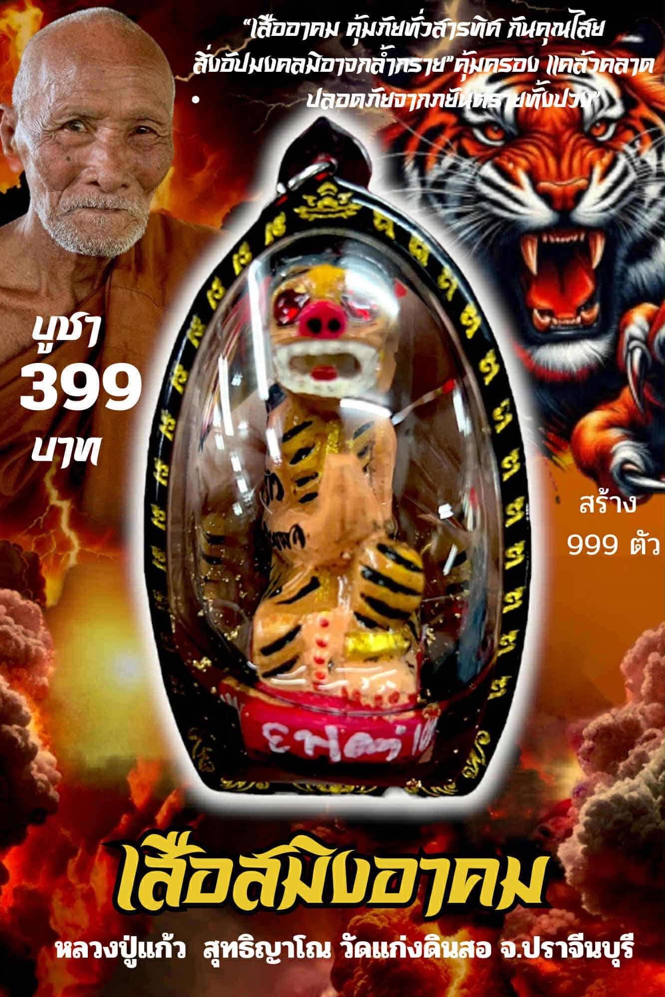 หลวงปู่แก้ว สุทธิญาโณ วัดแก่งดินสอ จ.ปราจีนบุรี เสือสมิงอาคม พร้อมเลี่ยม ราคาจอง 399 บาท สร้าง 999 ตัว มีเลขโค้ดกำกับทุกตัว เนื้อเรซิ่น รับพระเดือนธค. วัตถุประสงค์:พัฒนาวัดแก่งดินสอ จ.ปราจีนบุรี